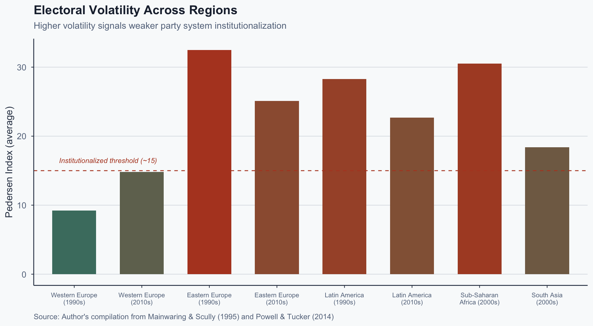 Powell, E. N., & Tucker, J. A. (2014). Revisiting electoral volatility in post-communist countries: New data, new results and new approaches. British Journal of Political Science, 44(1), 123–147.