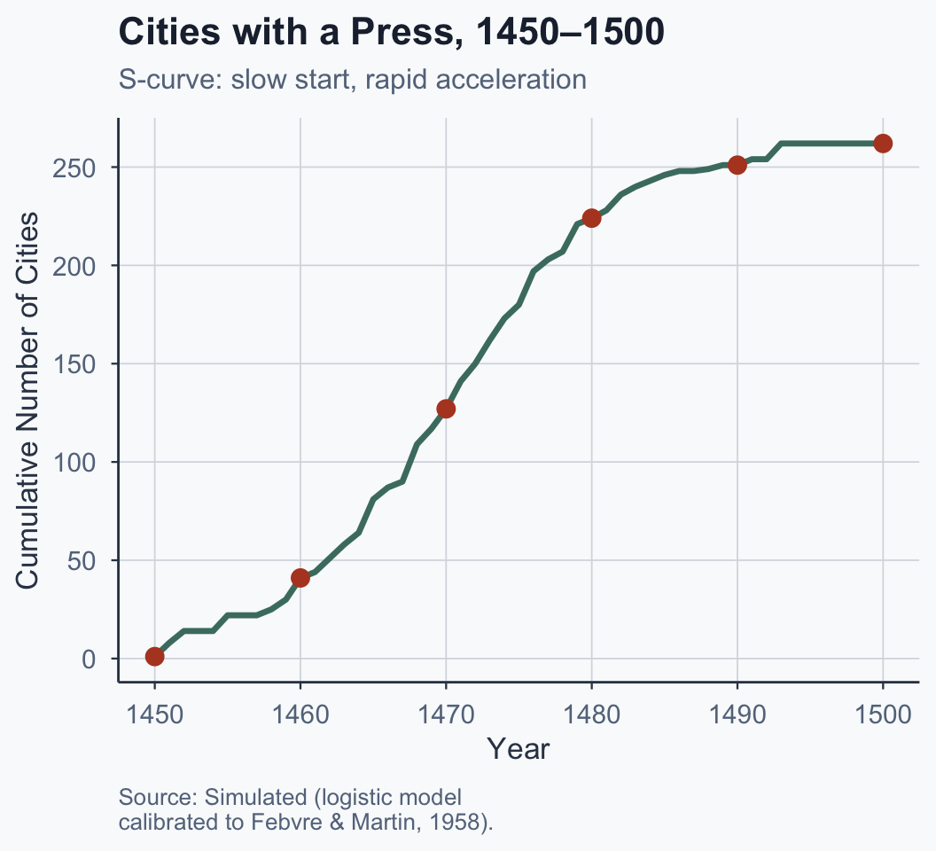 Dittmar, J. E. (2011). Information technology and economic change: The impact of the printing press. Quarterly Journal of Economics, 126(3), 1133–1172.