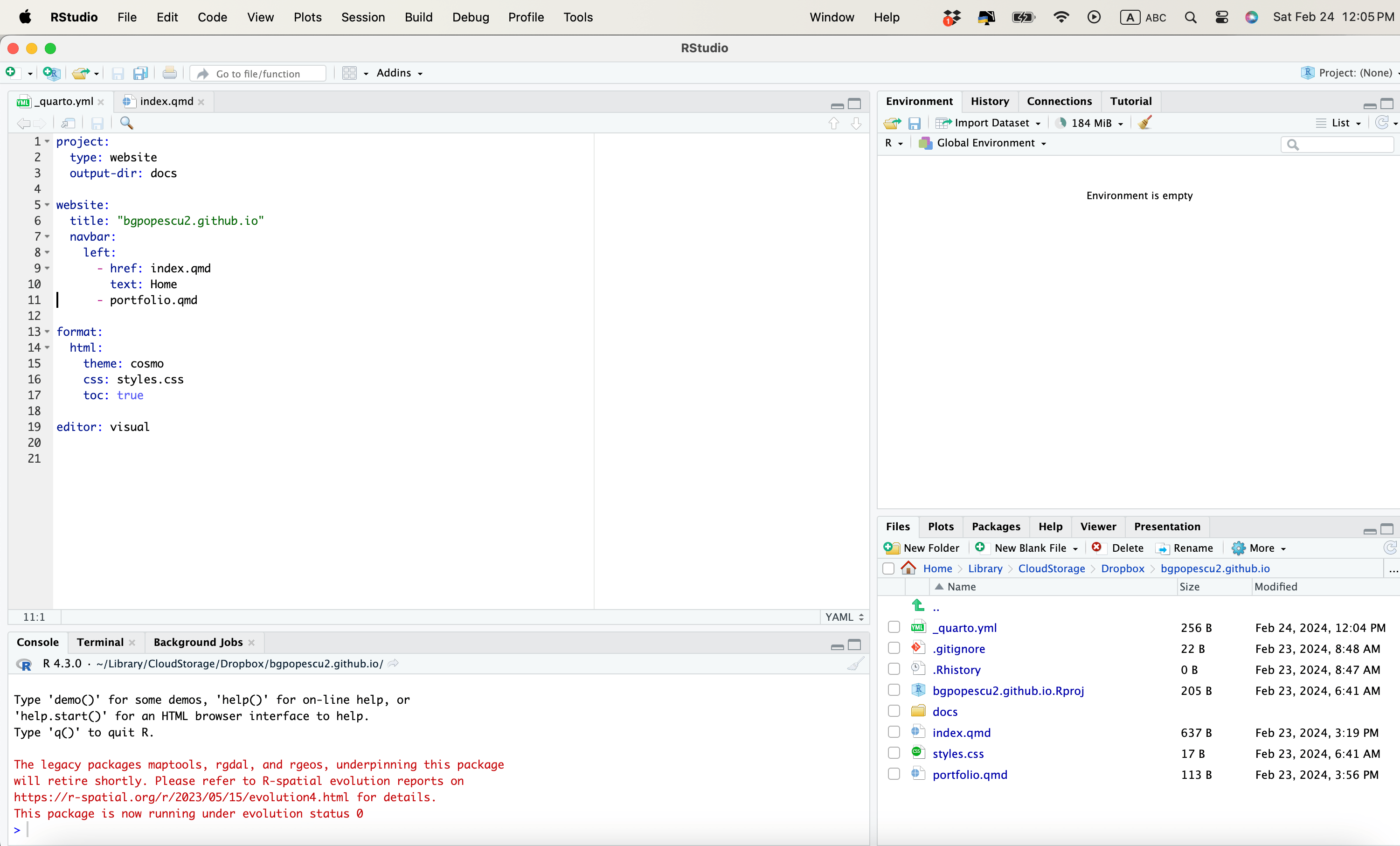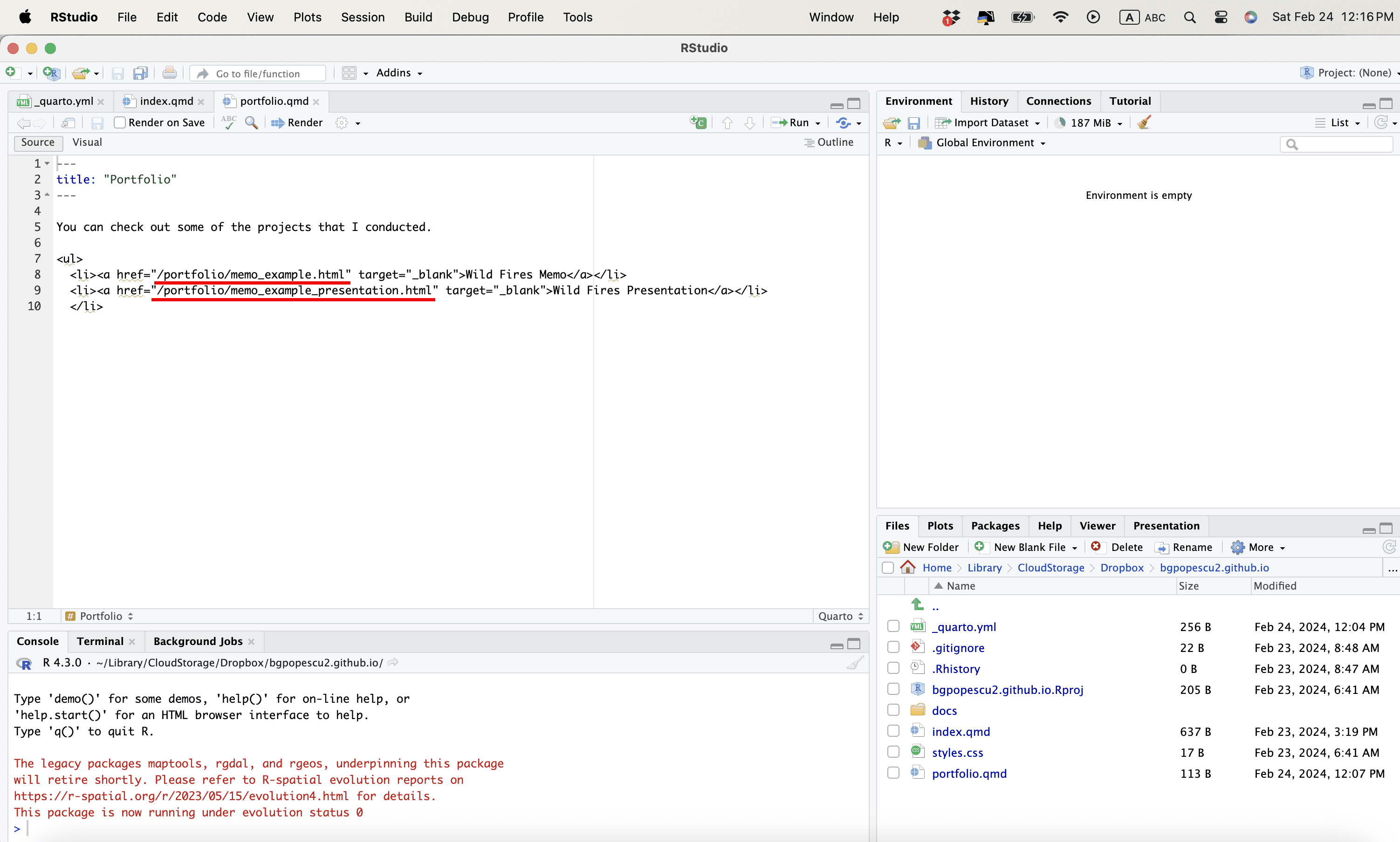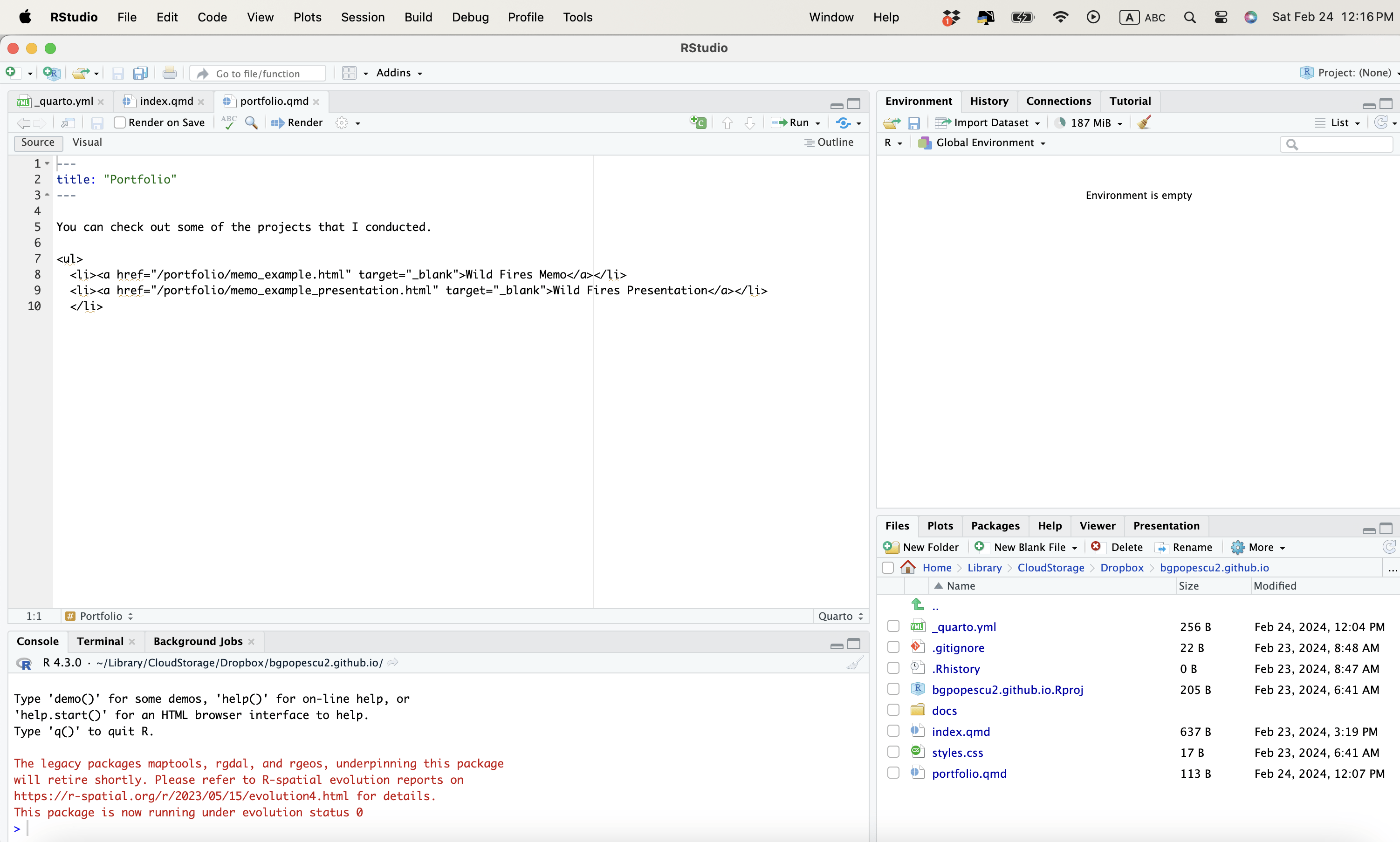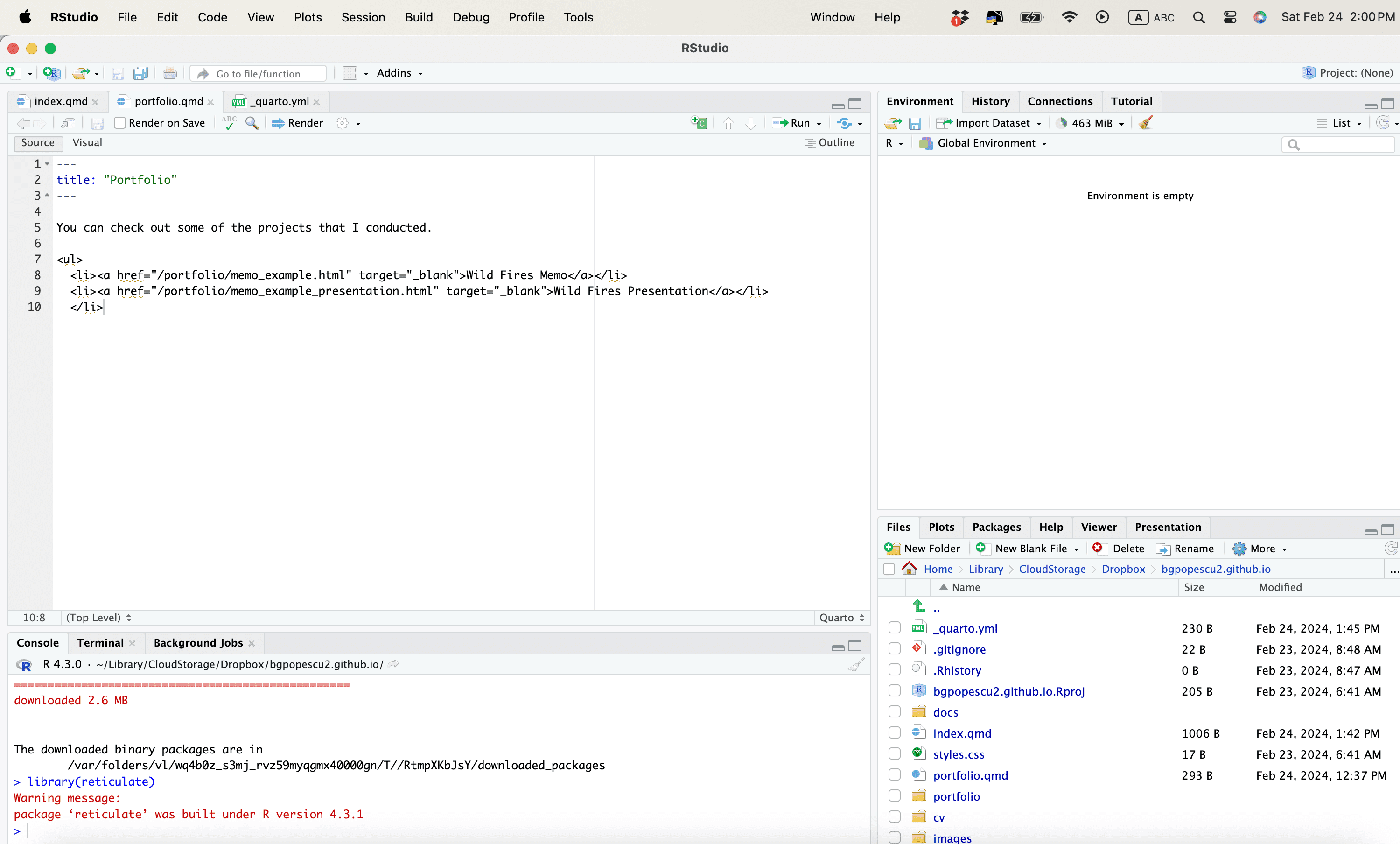 Note that Quarto created the website somewhere in Documents