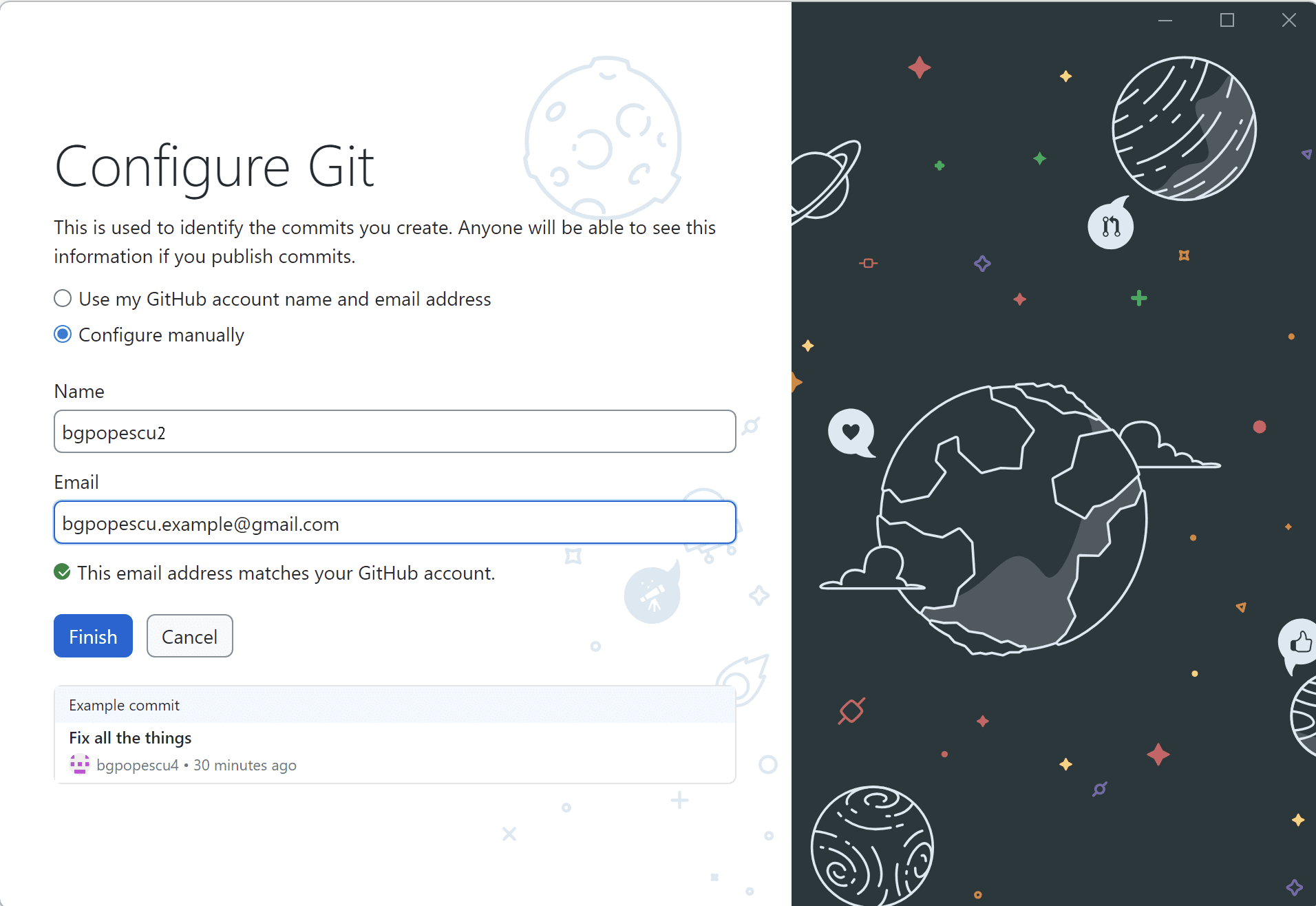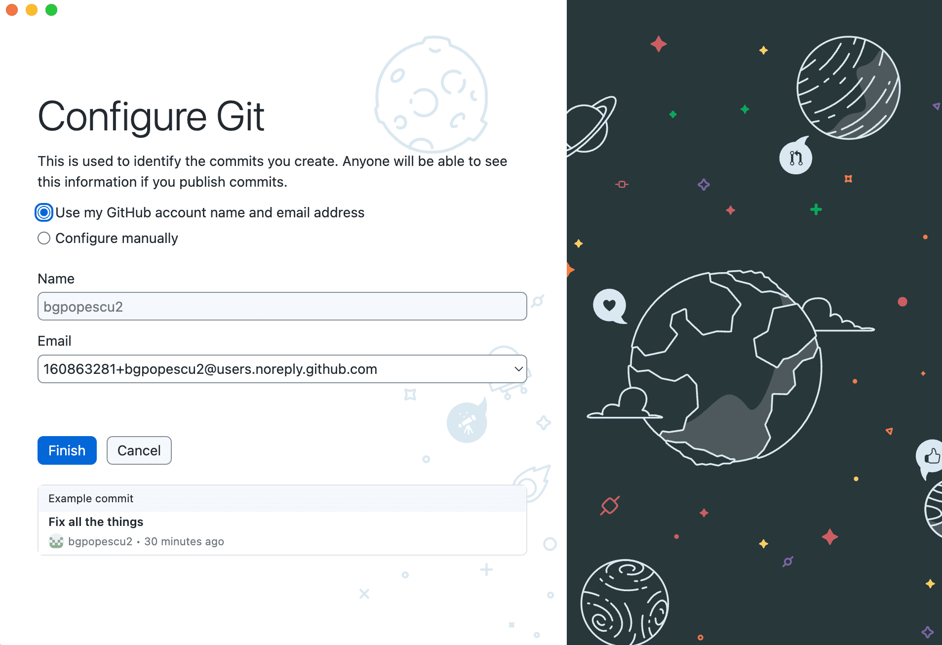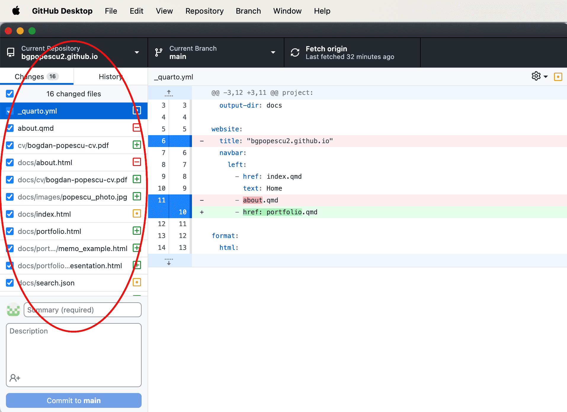 This is what “GitHub Desktop” looks like after making the changes.