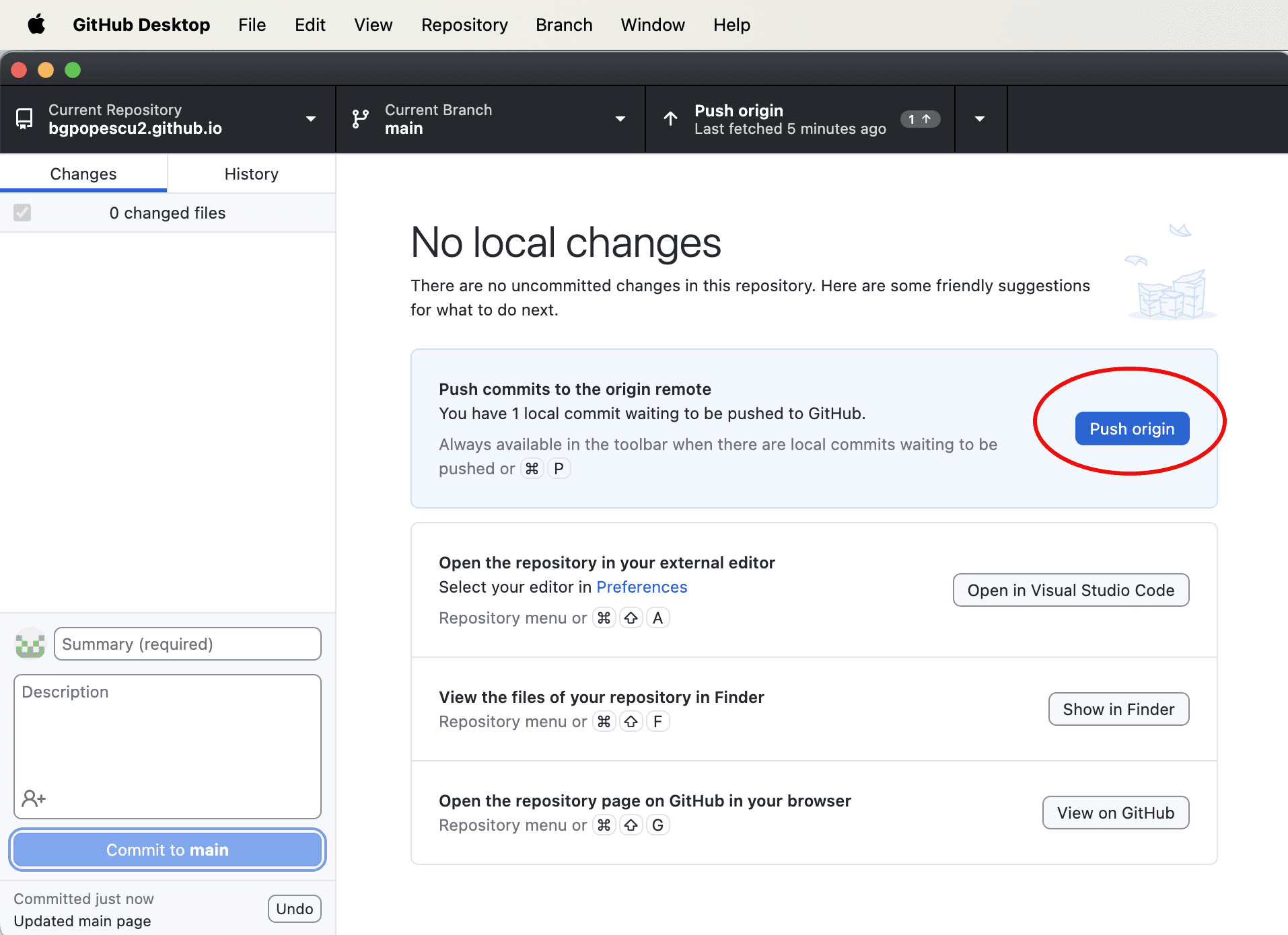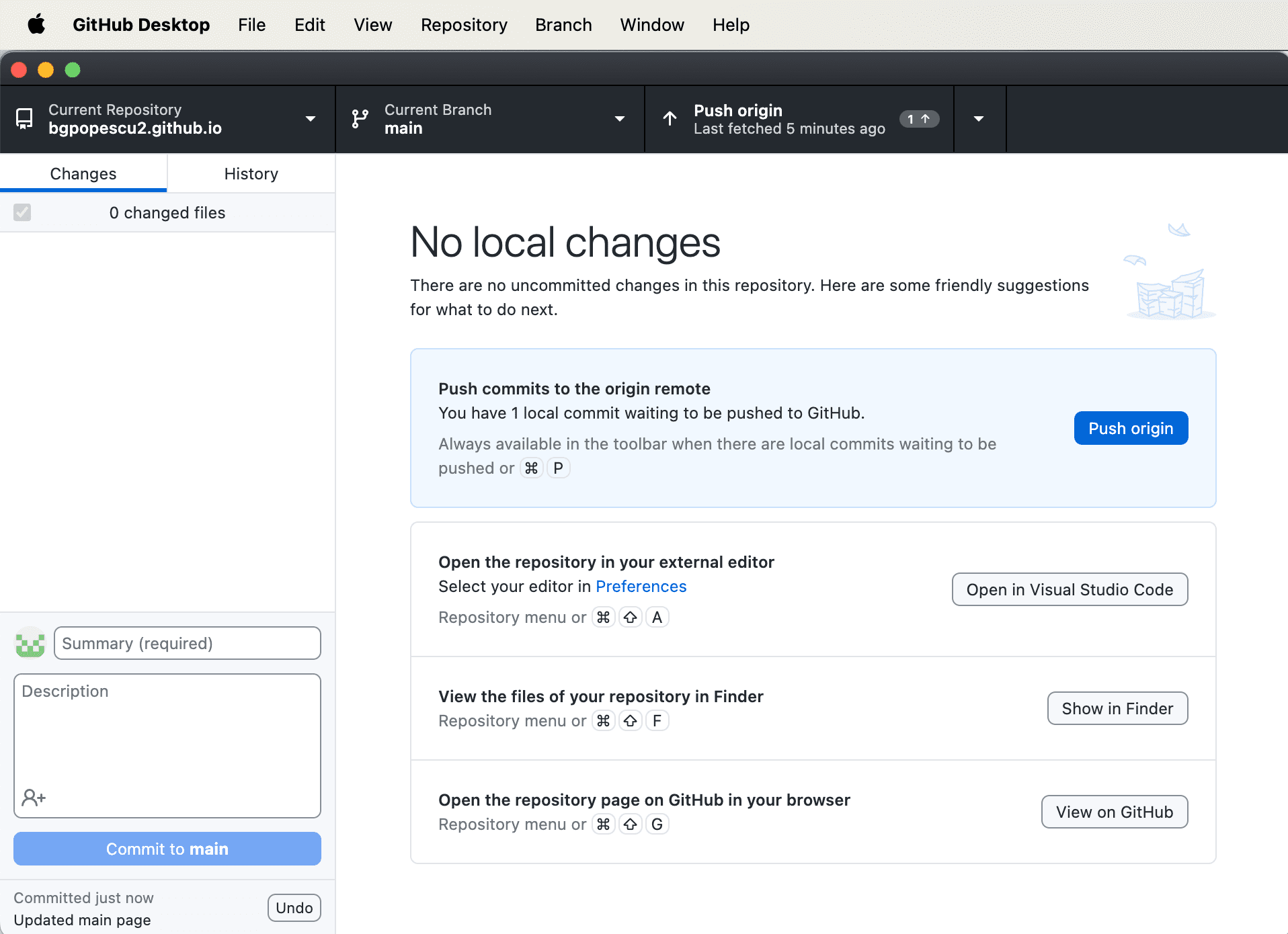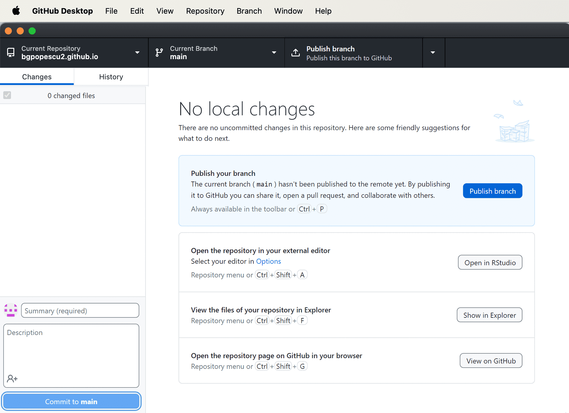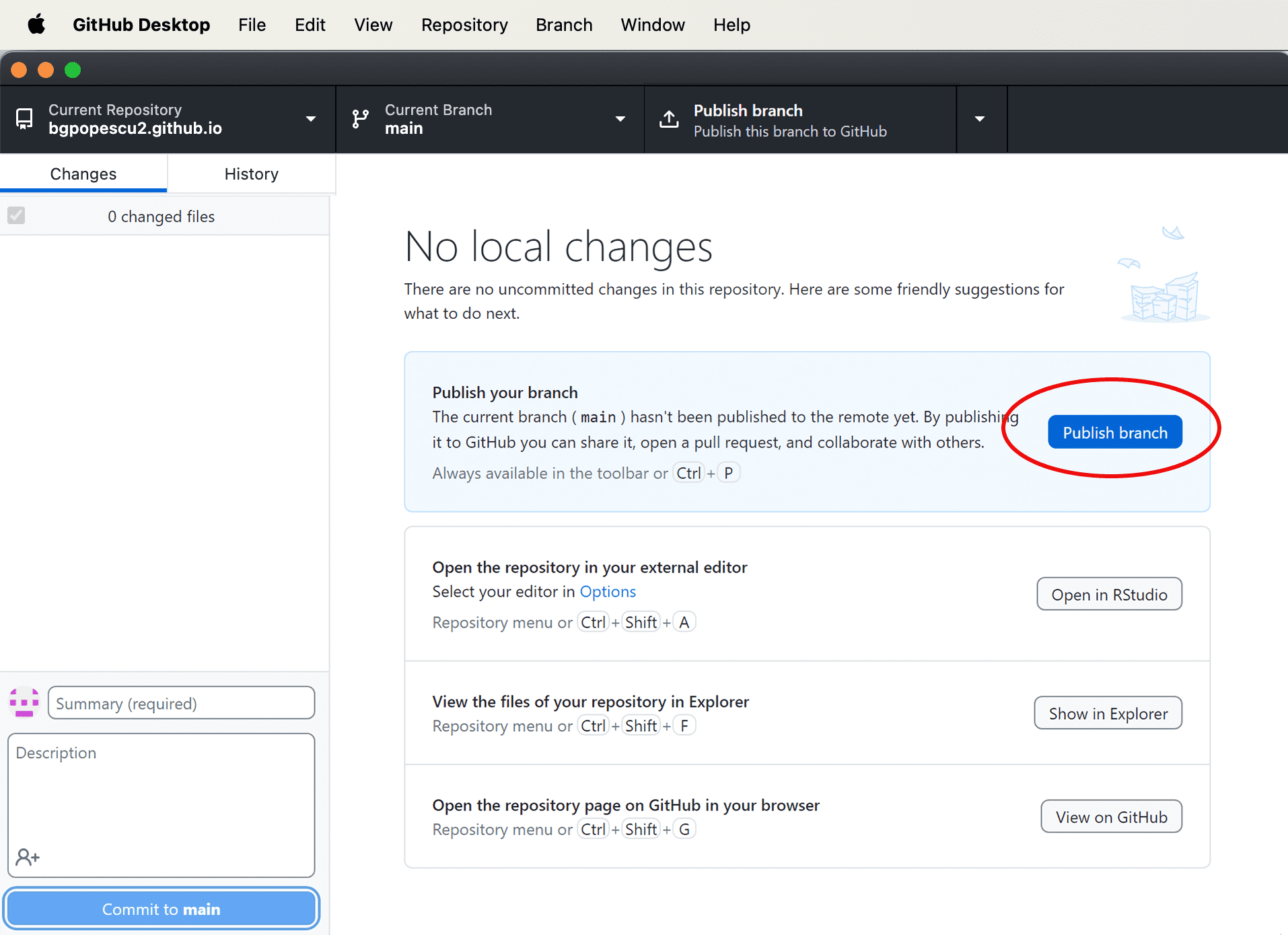 We then go back to GitHub Desktop.