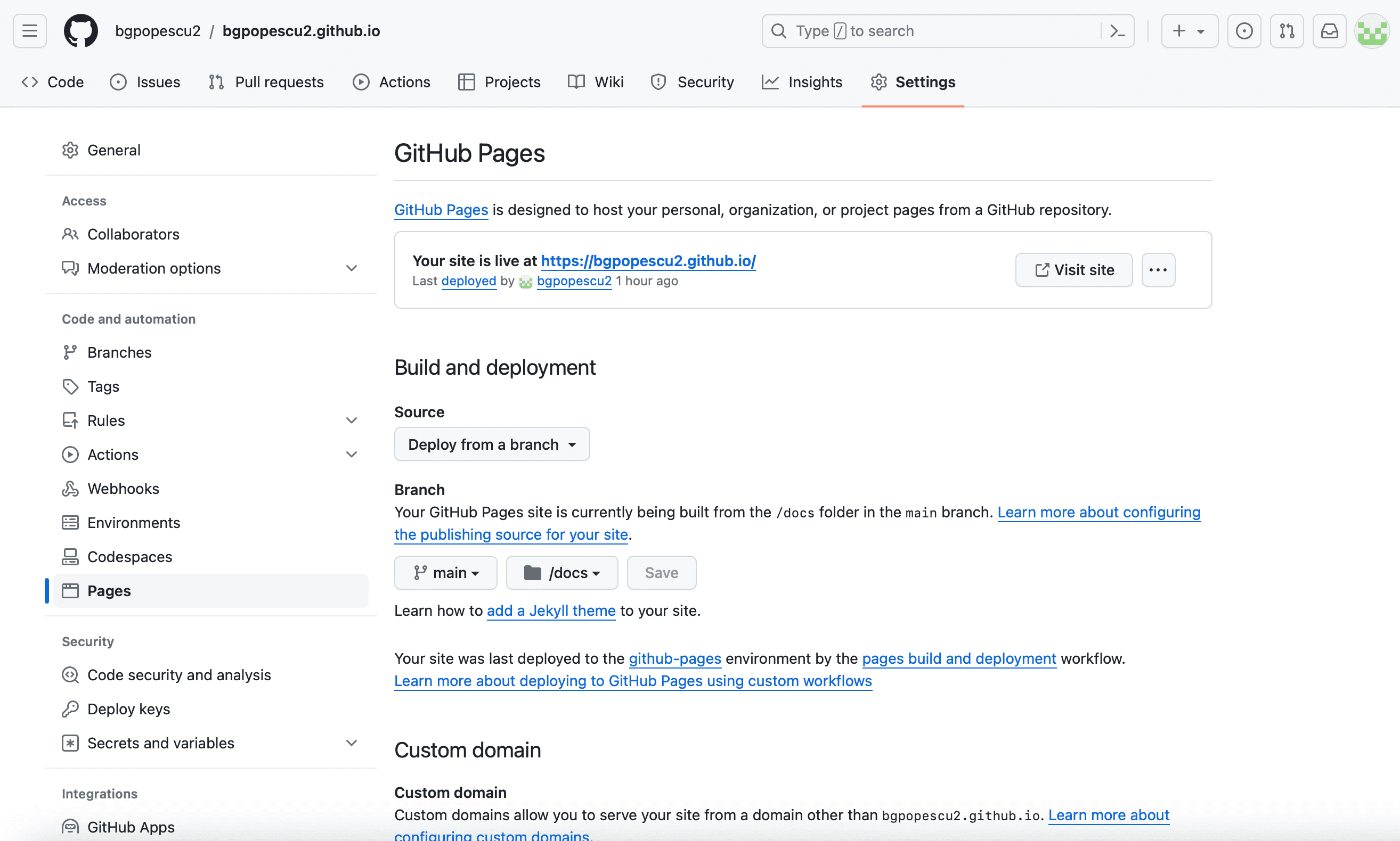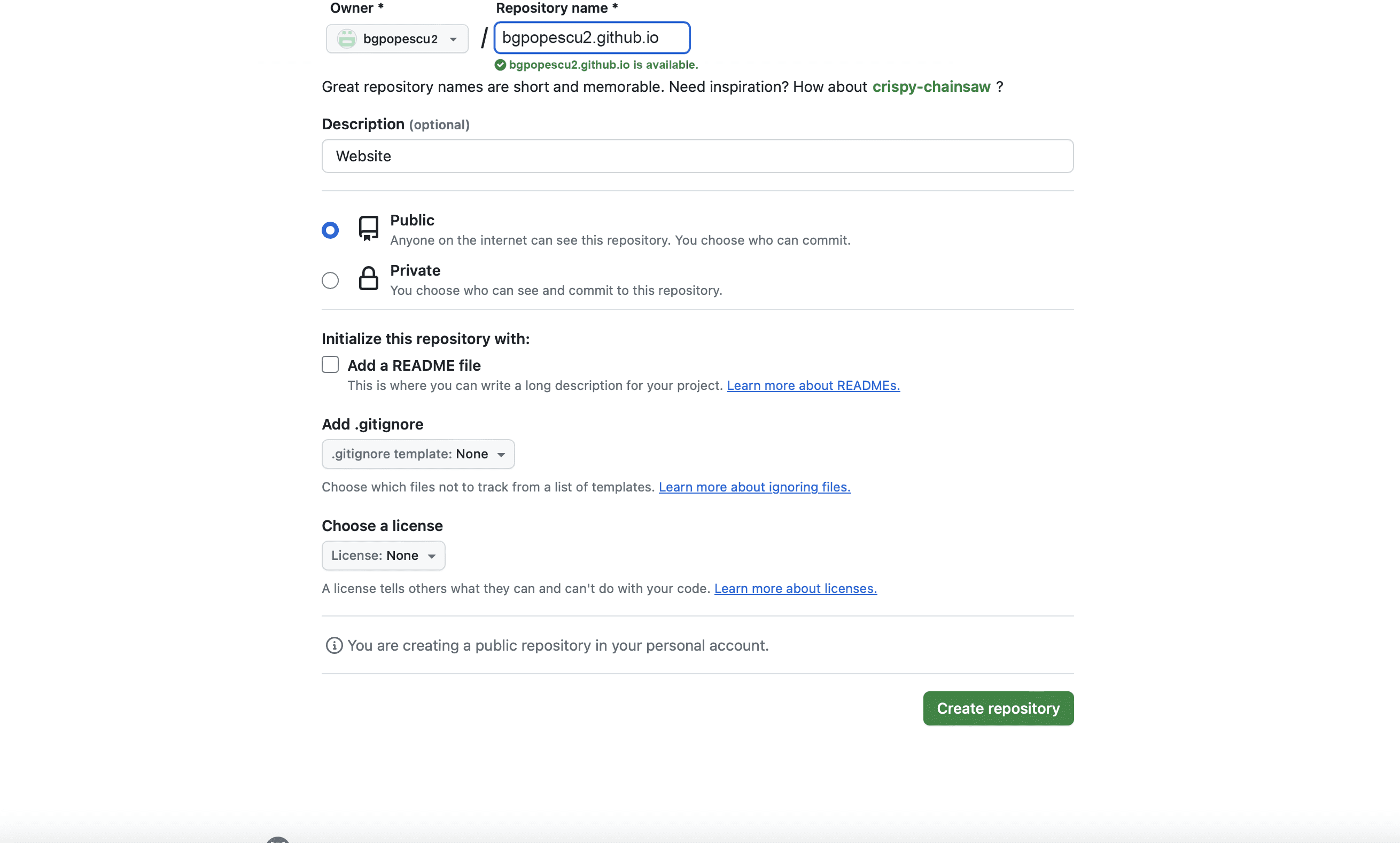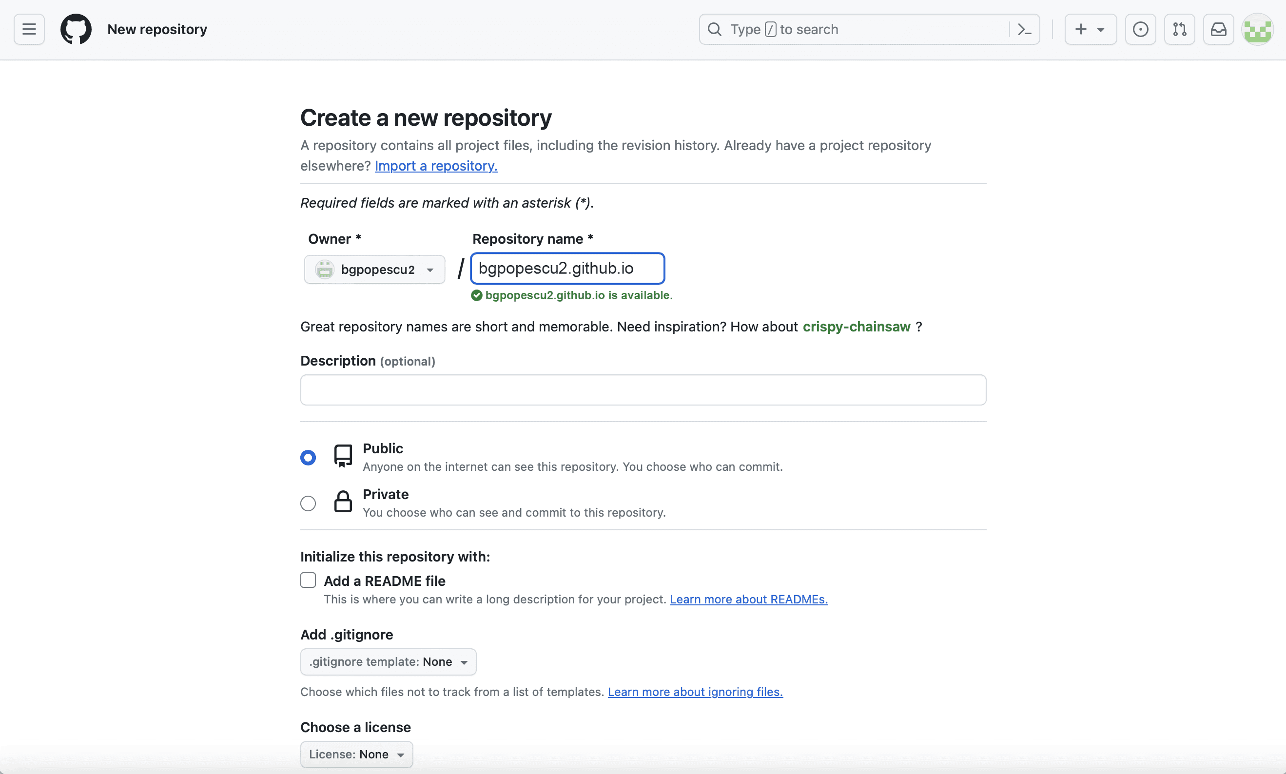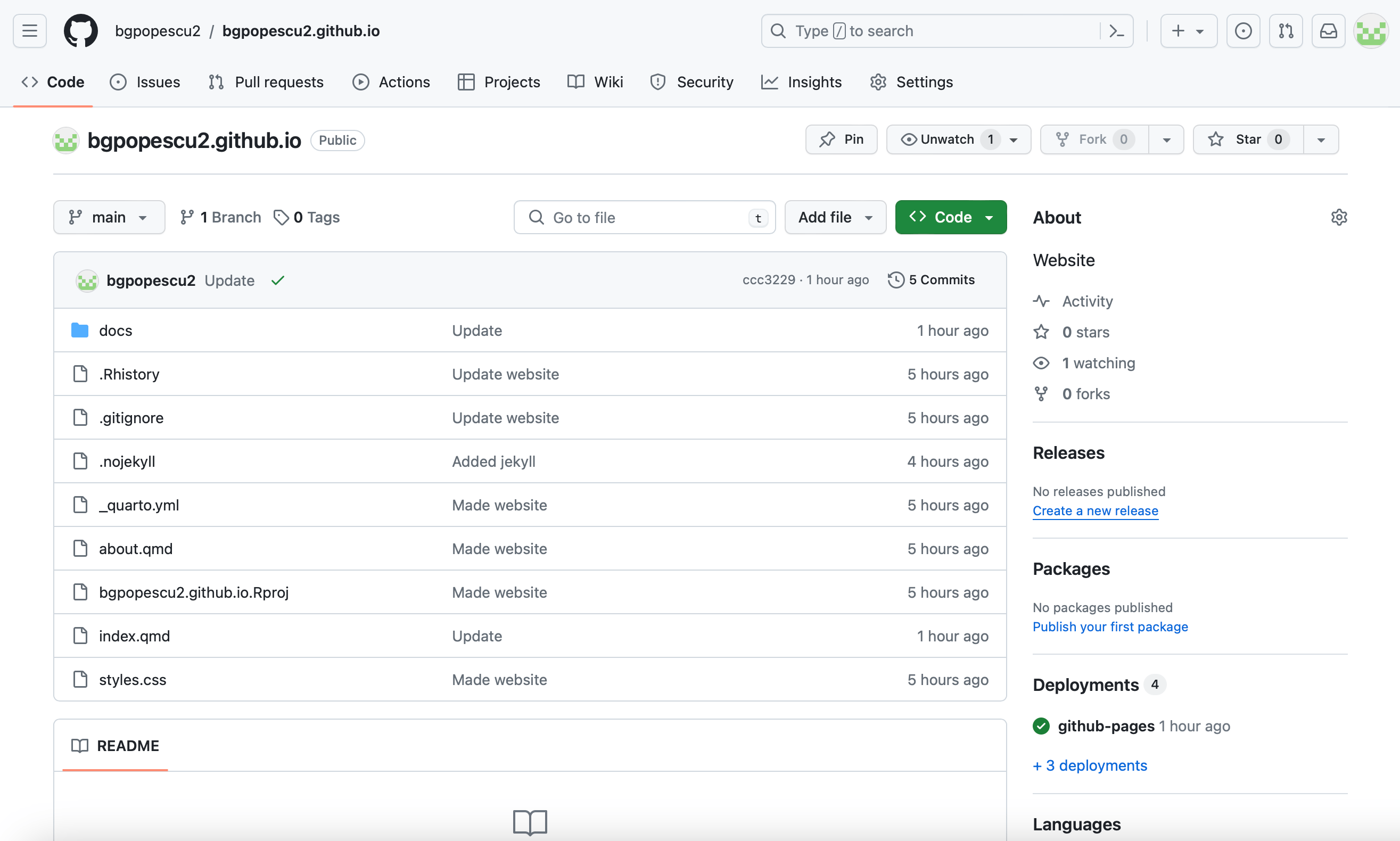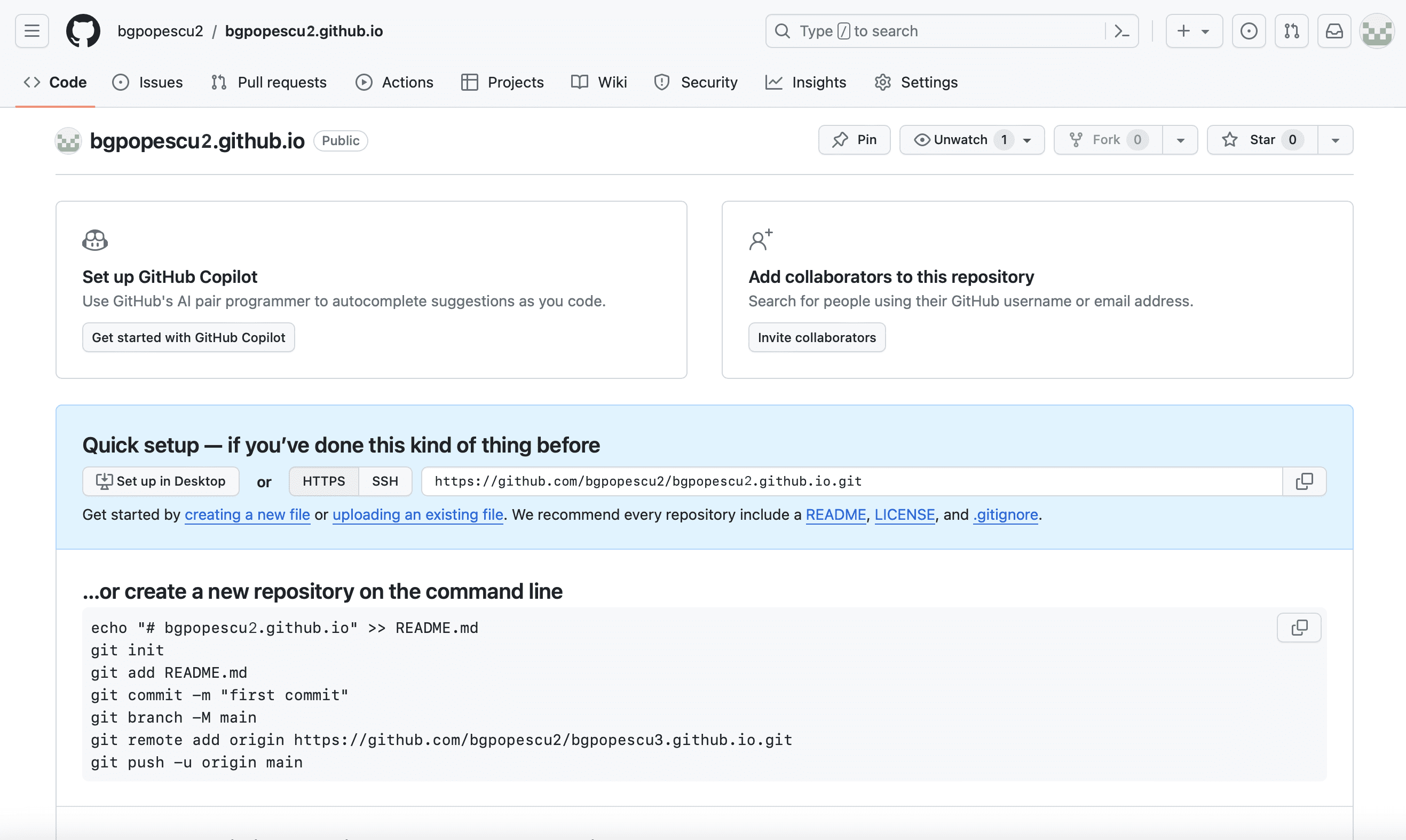 In this case, it will be bgpopescu2. This will appear in bgpopescu2.github.io