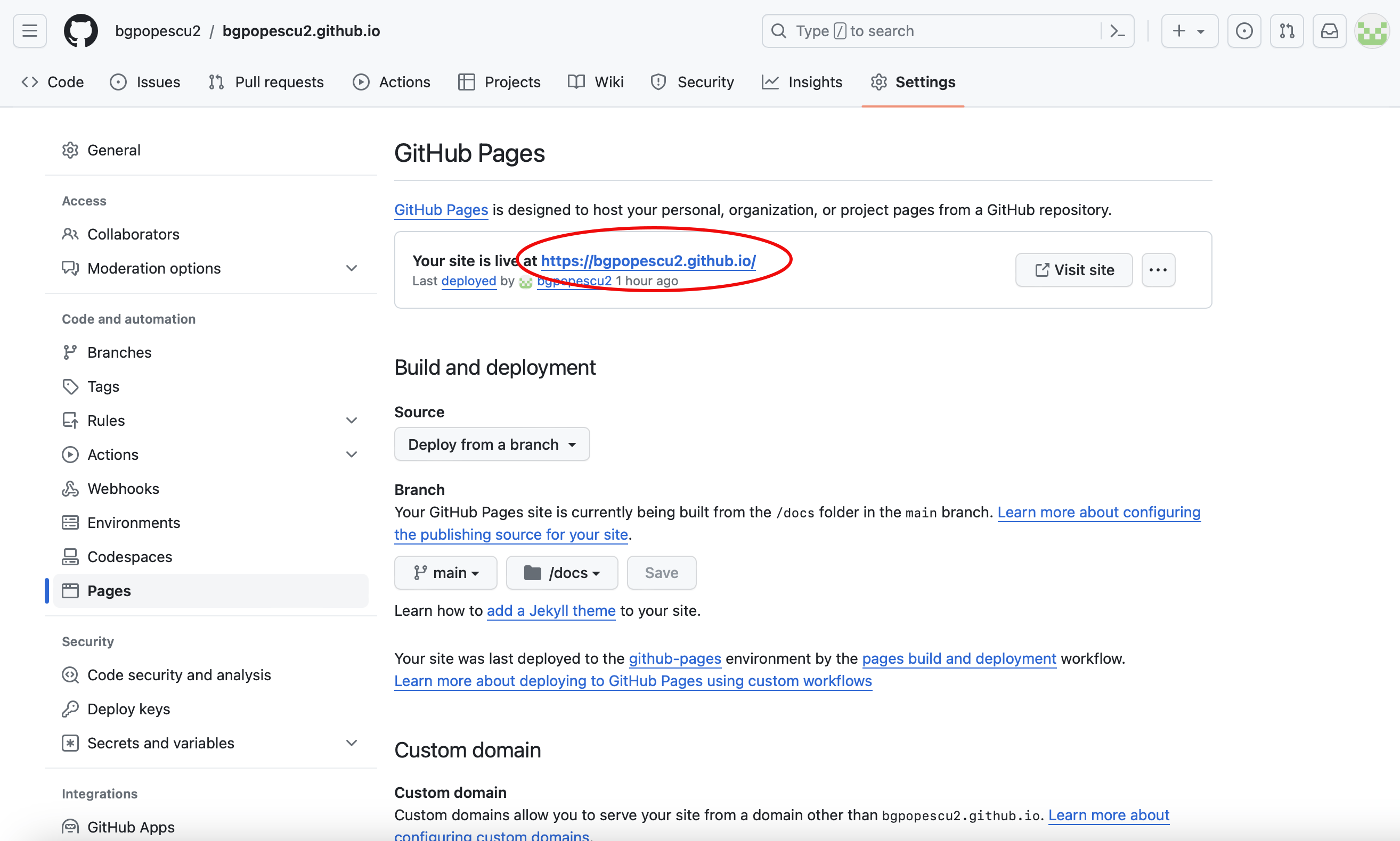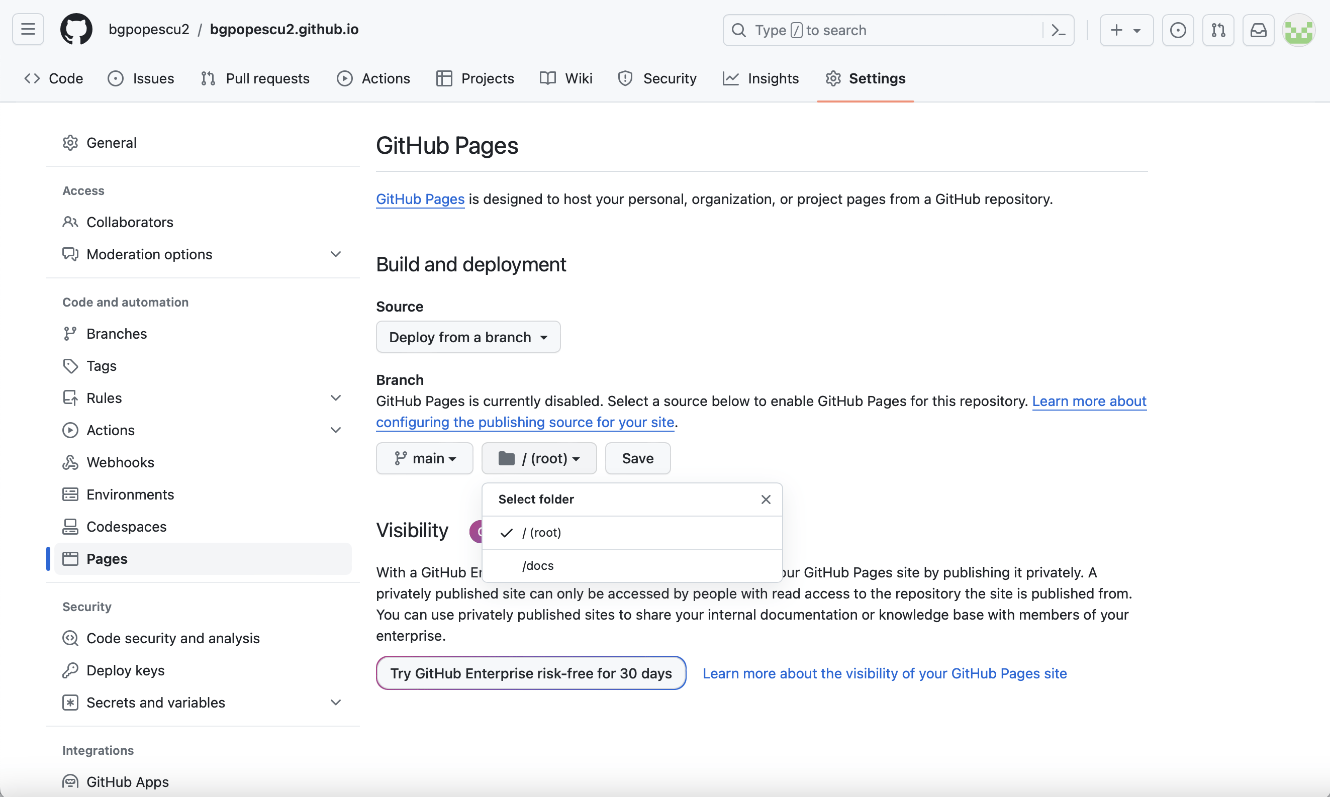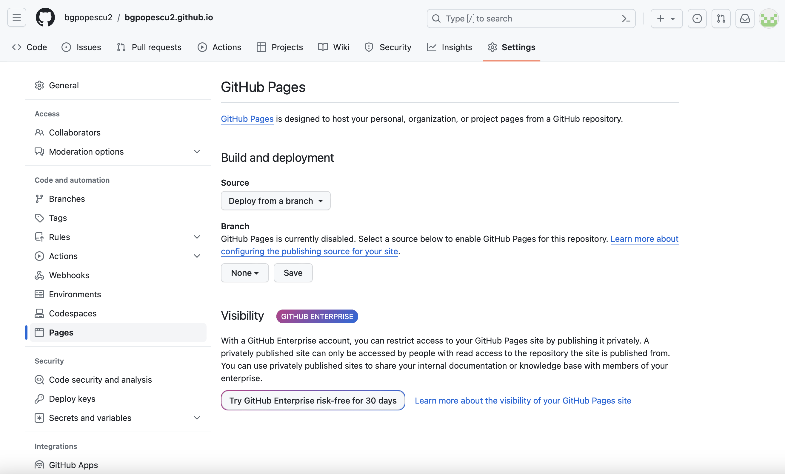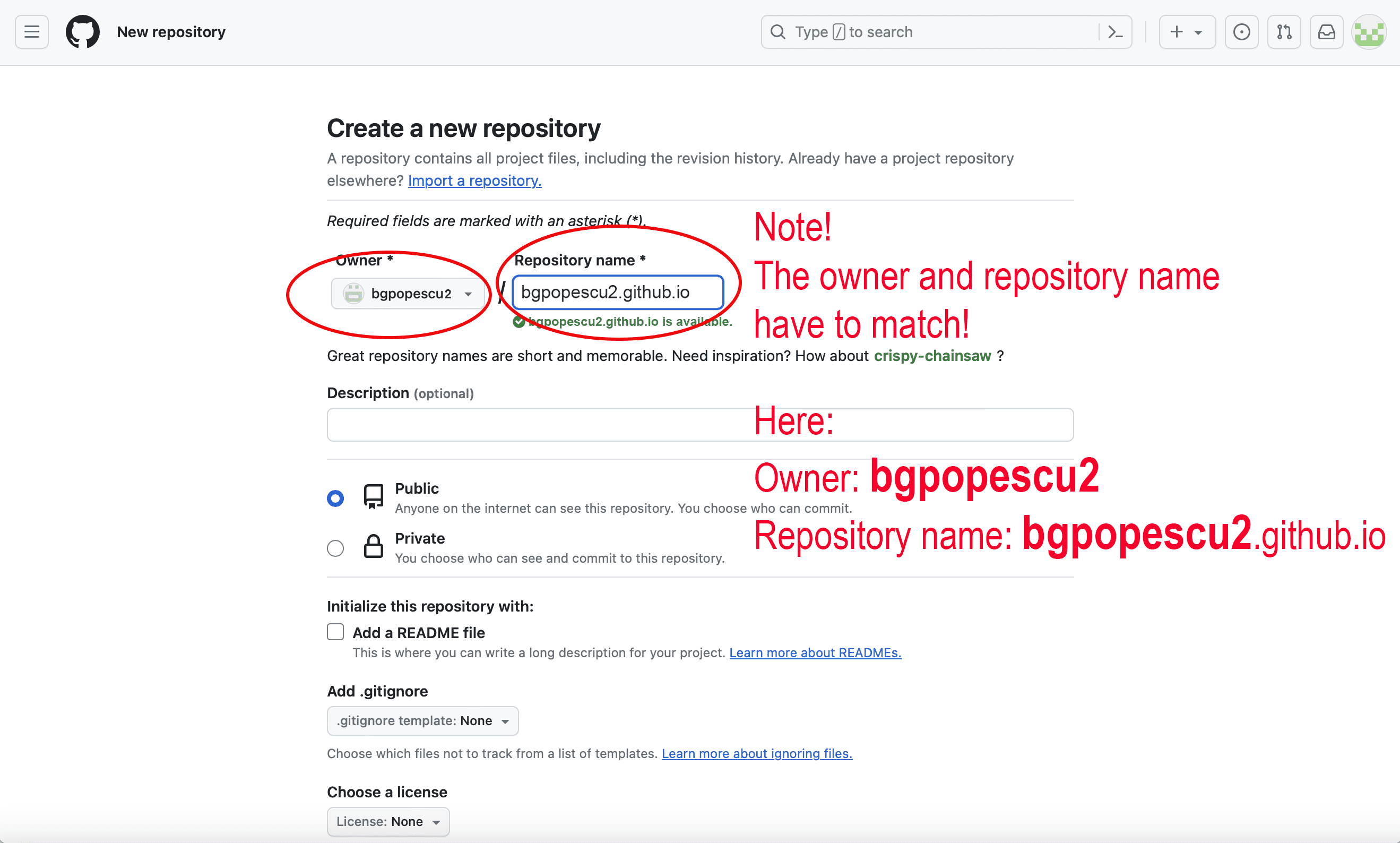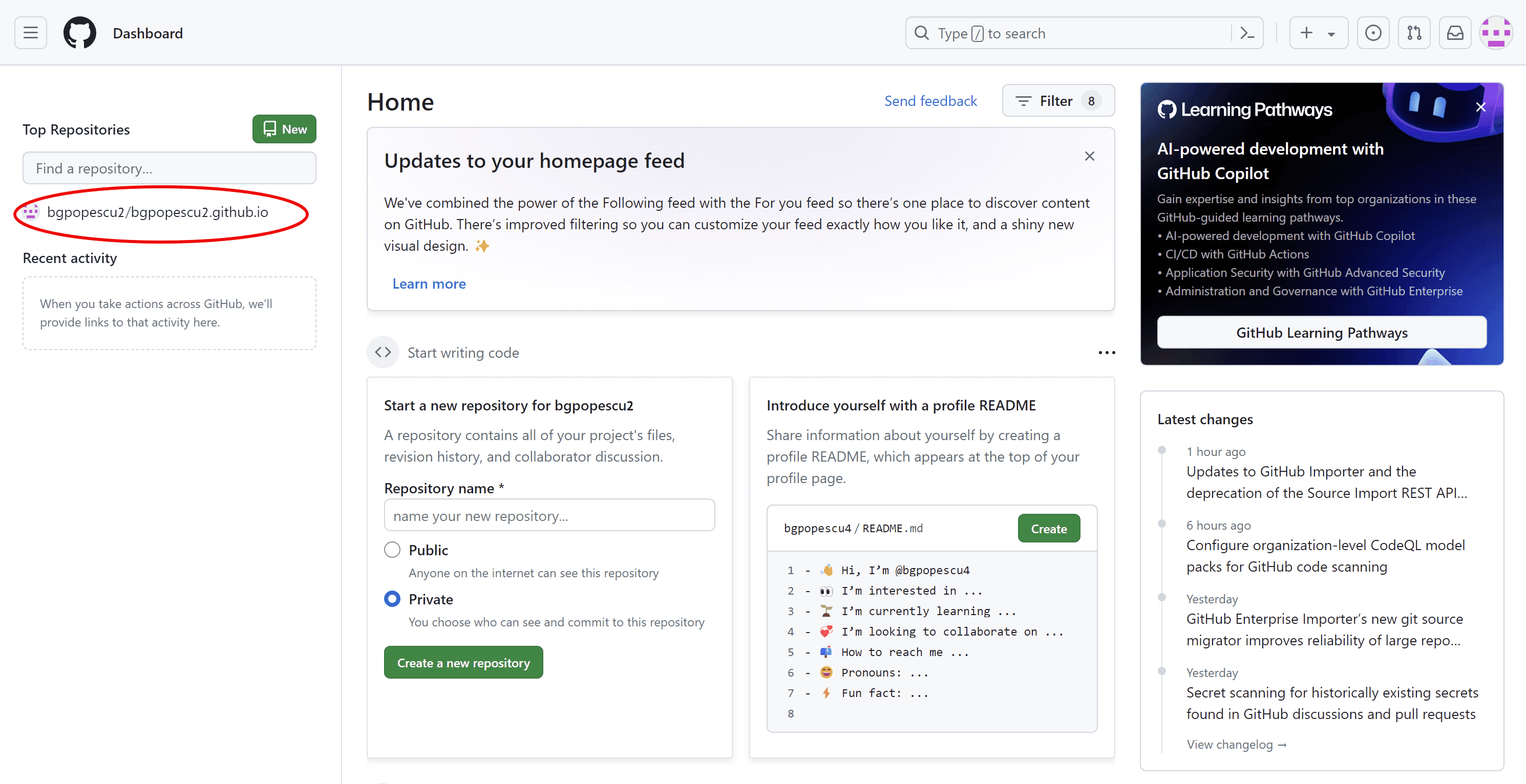 In this case, it will be bgpopescu2. This will appear in bgpopescu2.github.io