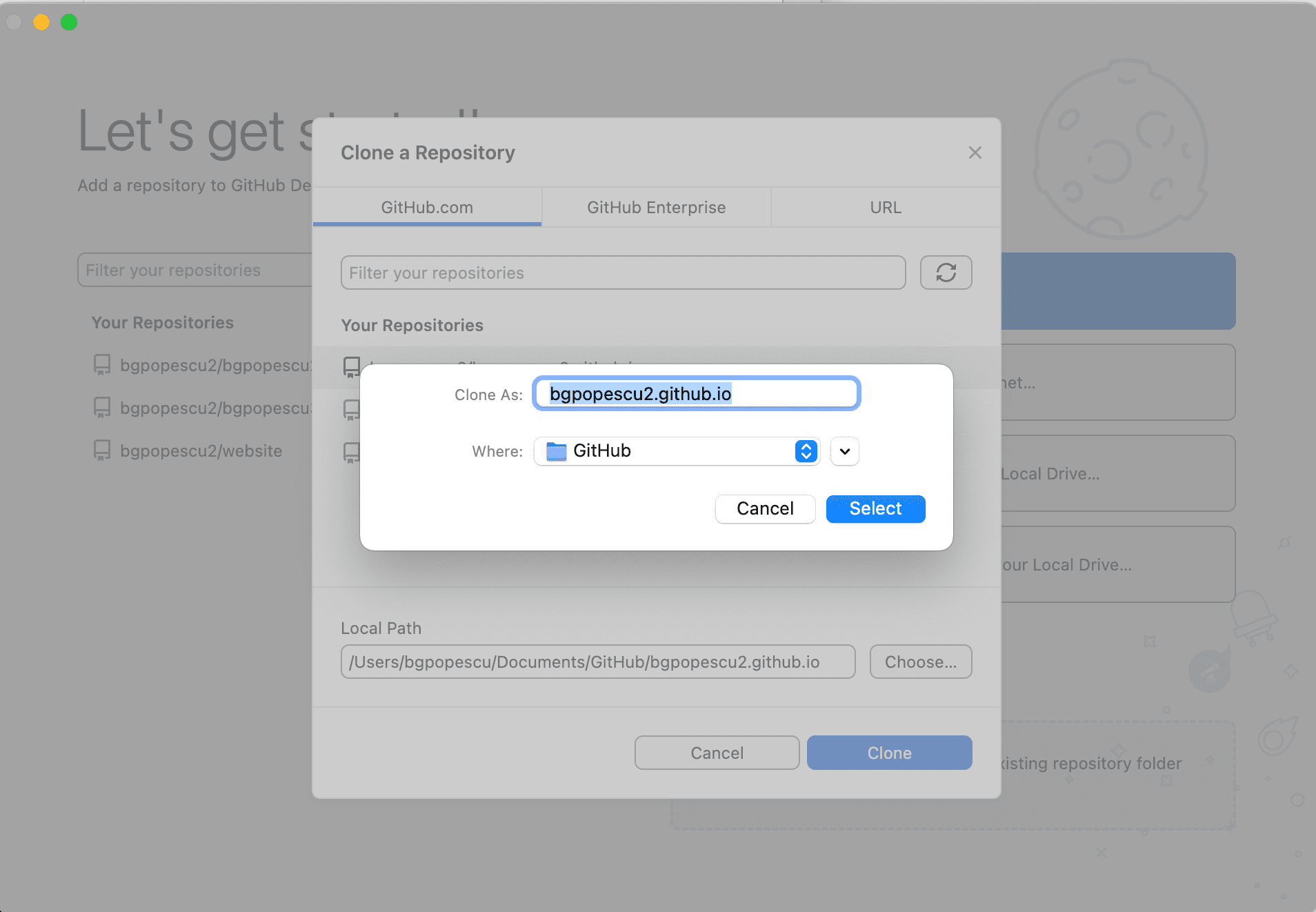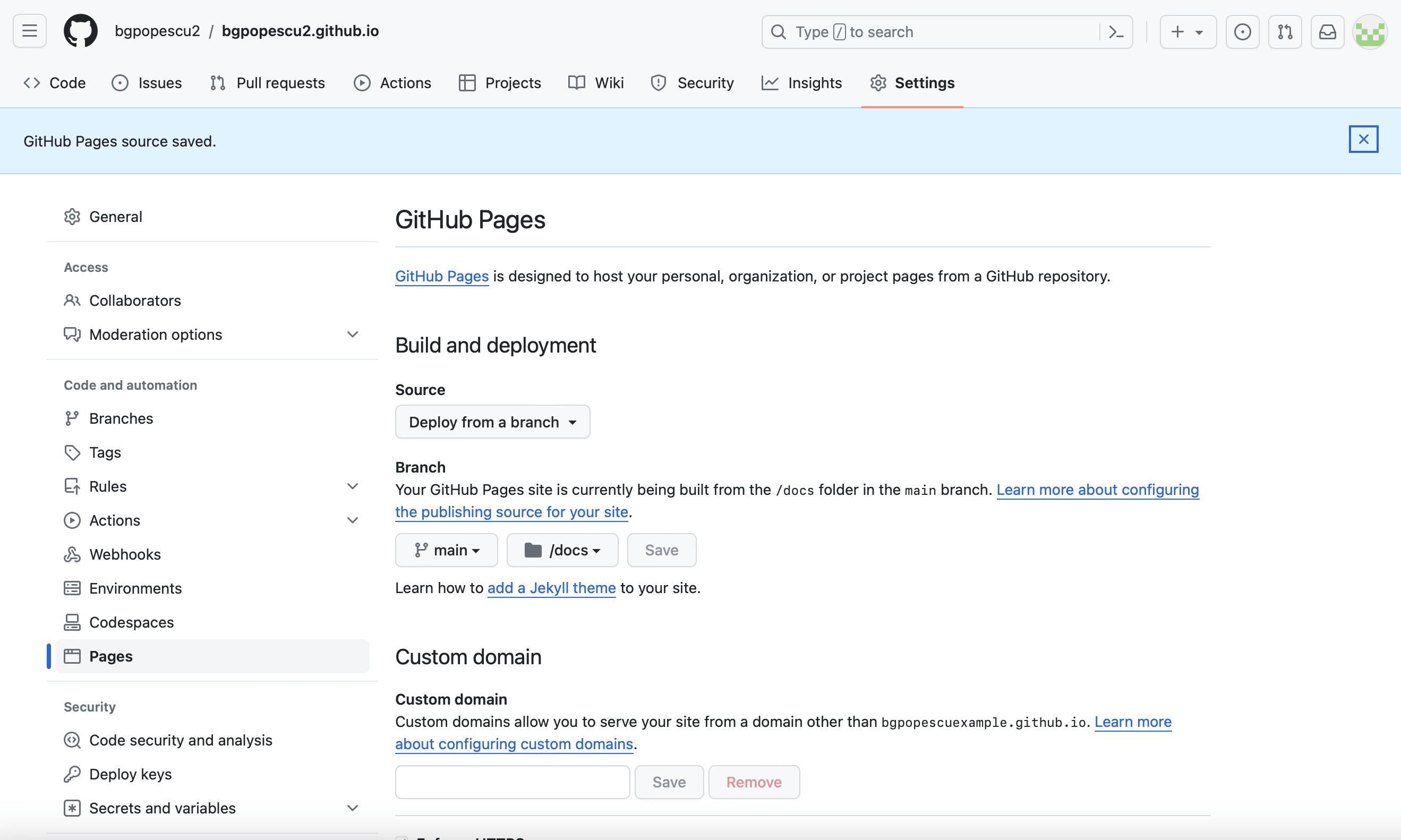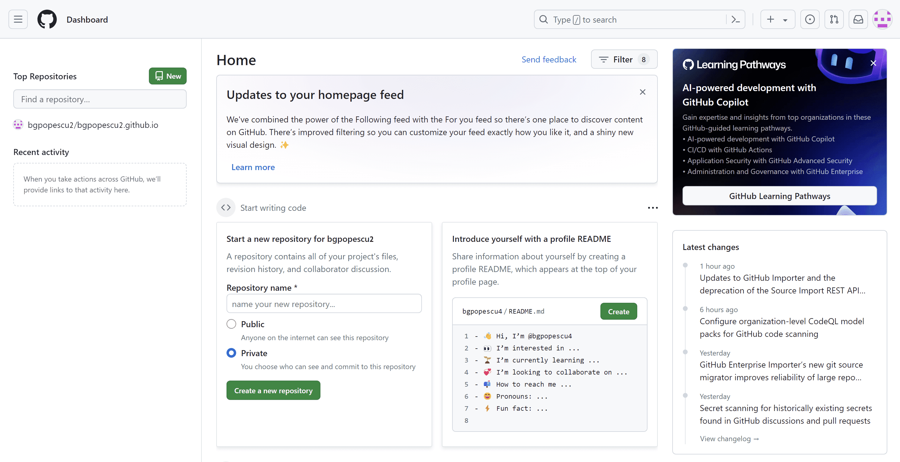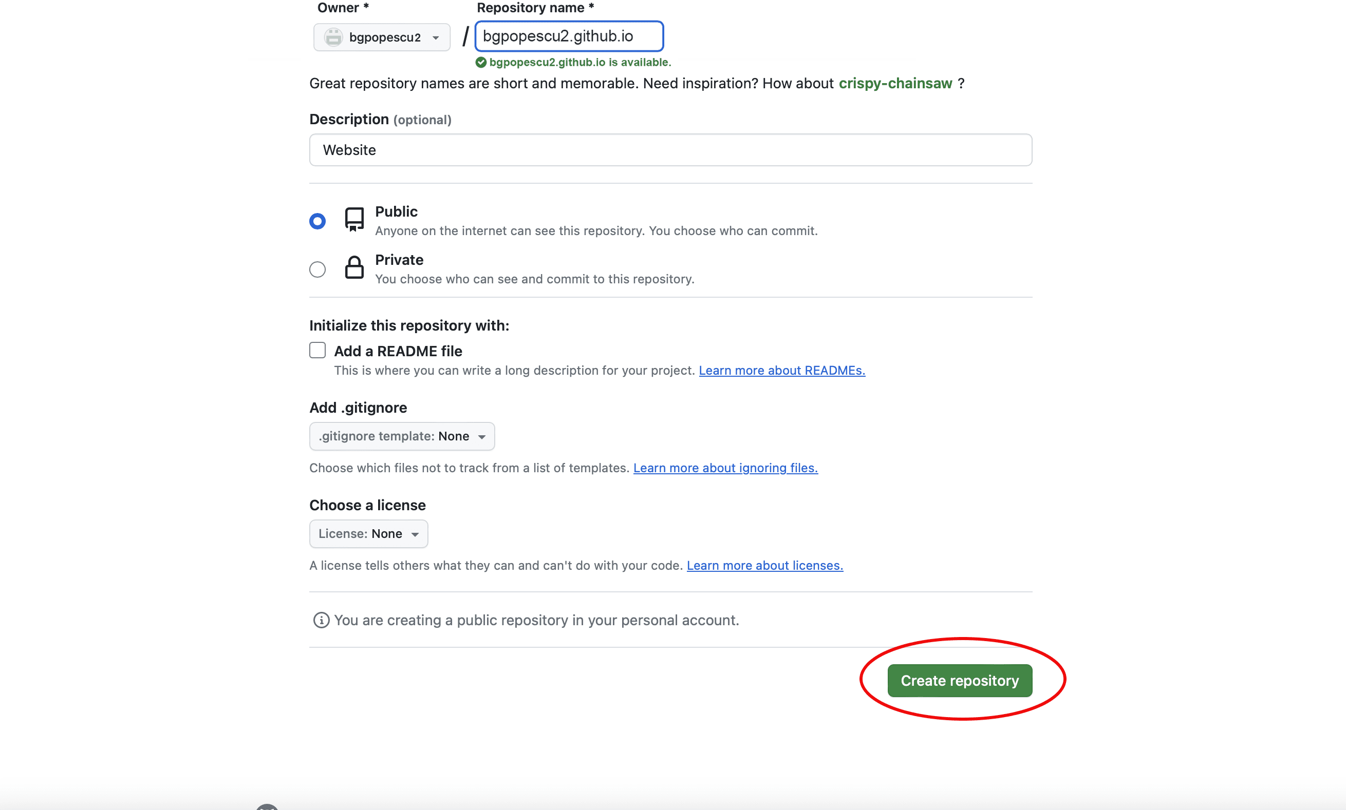In this case, it will be bgpopescu2. This will appear in bgpopescu2.github.io