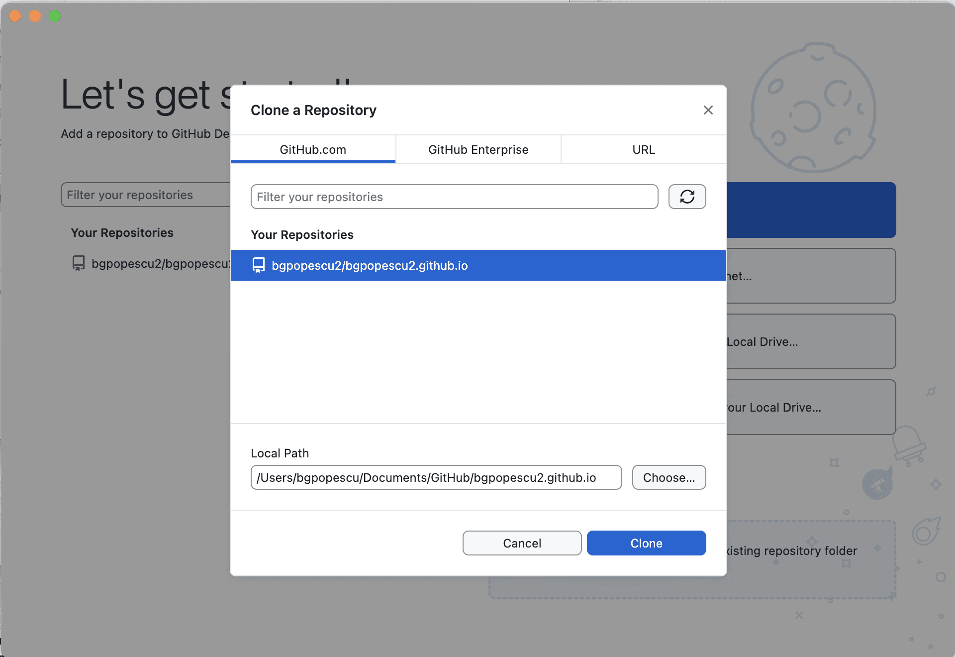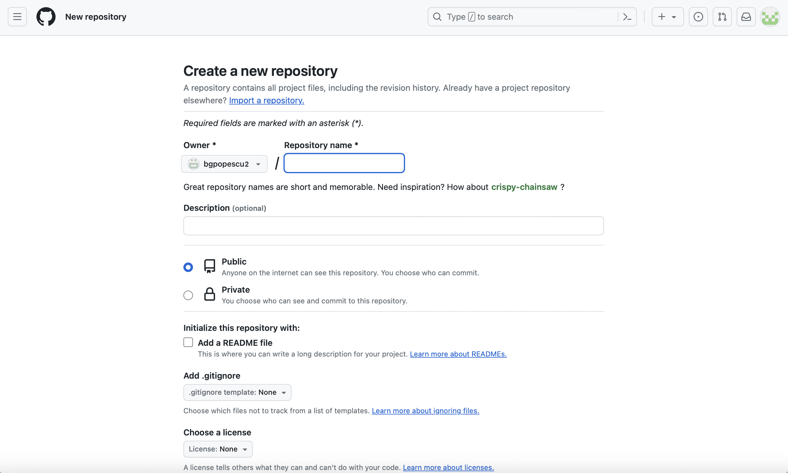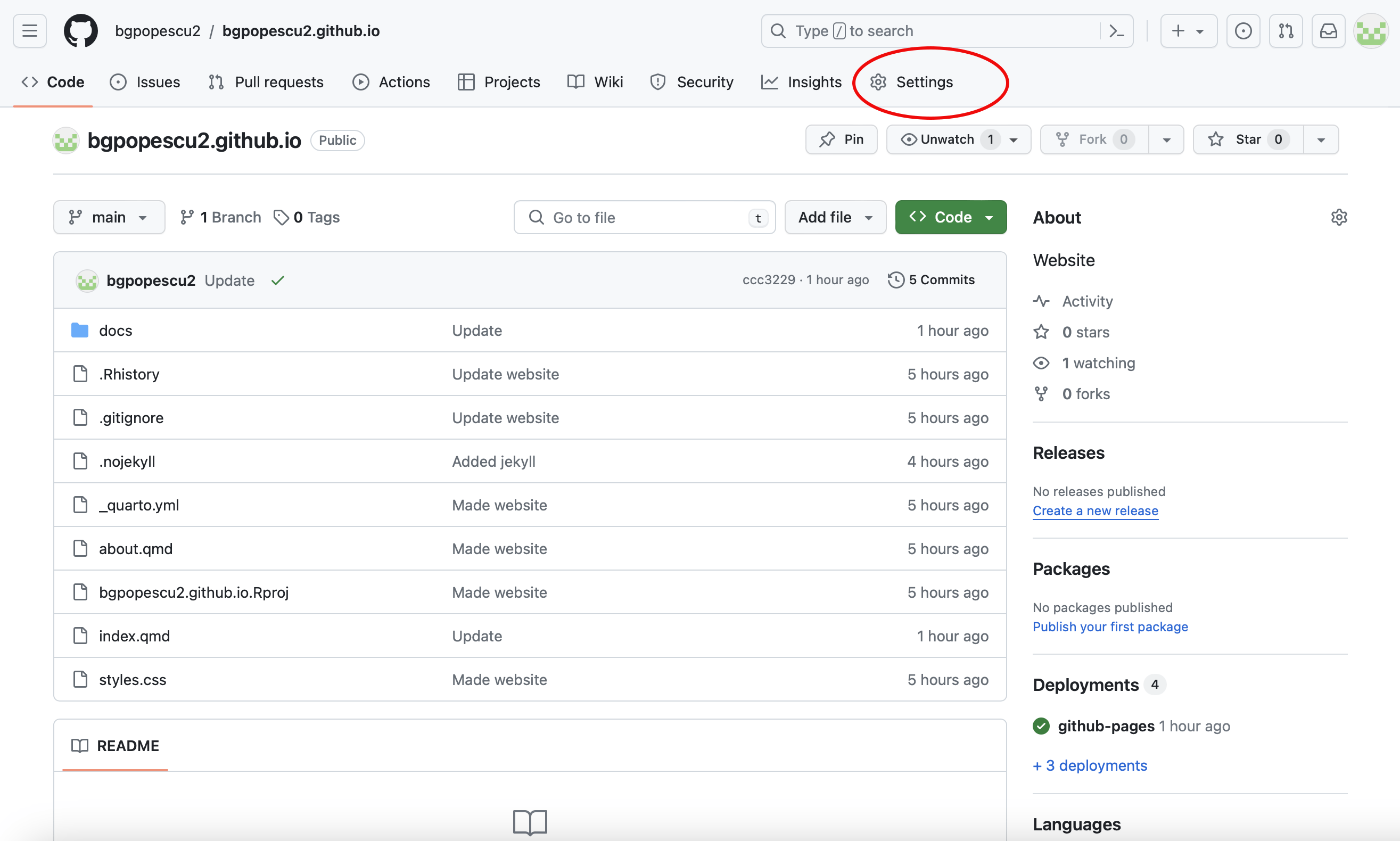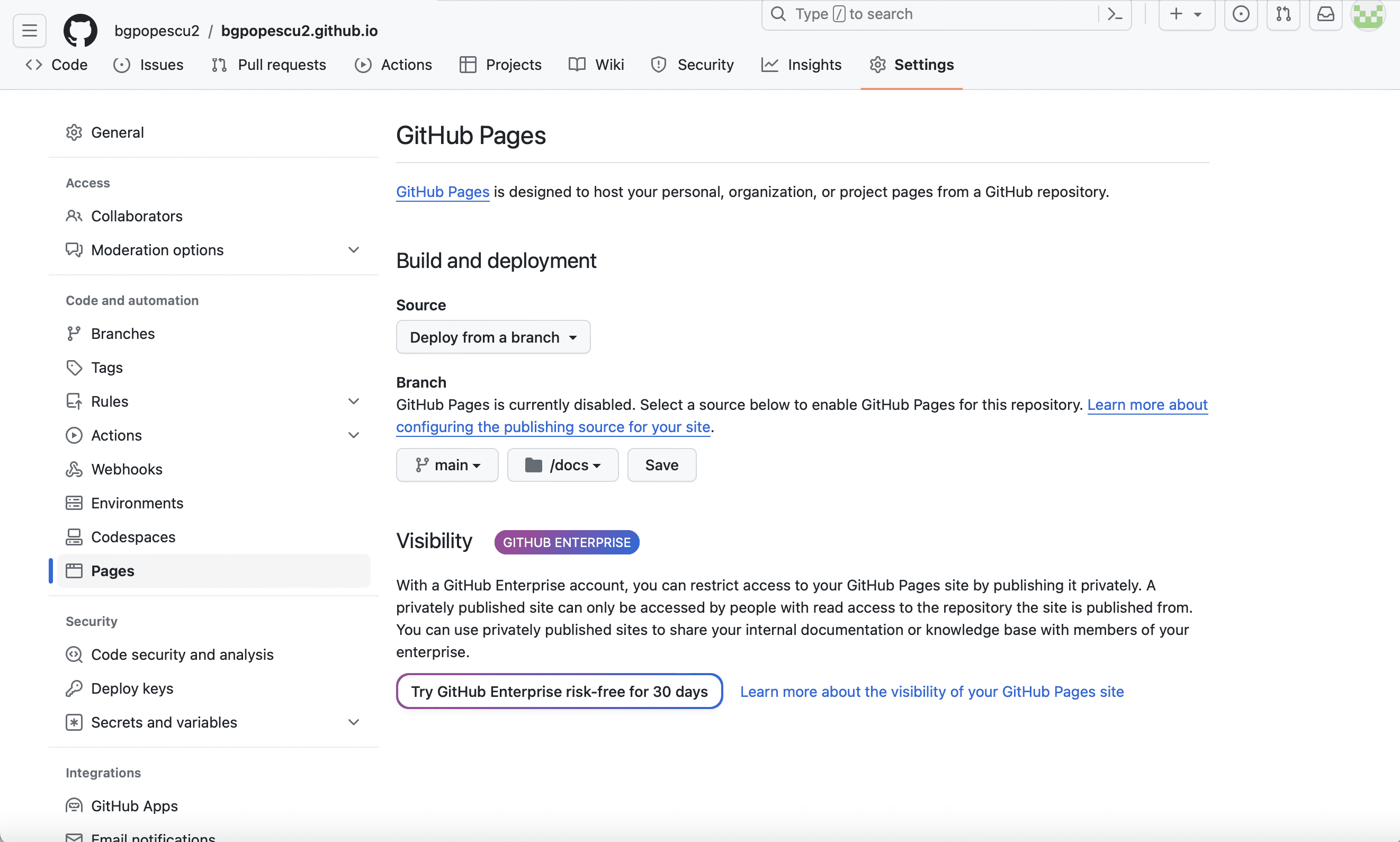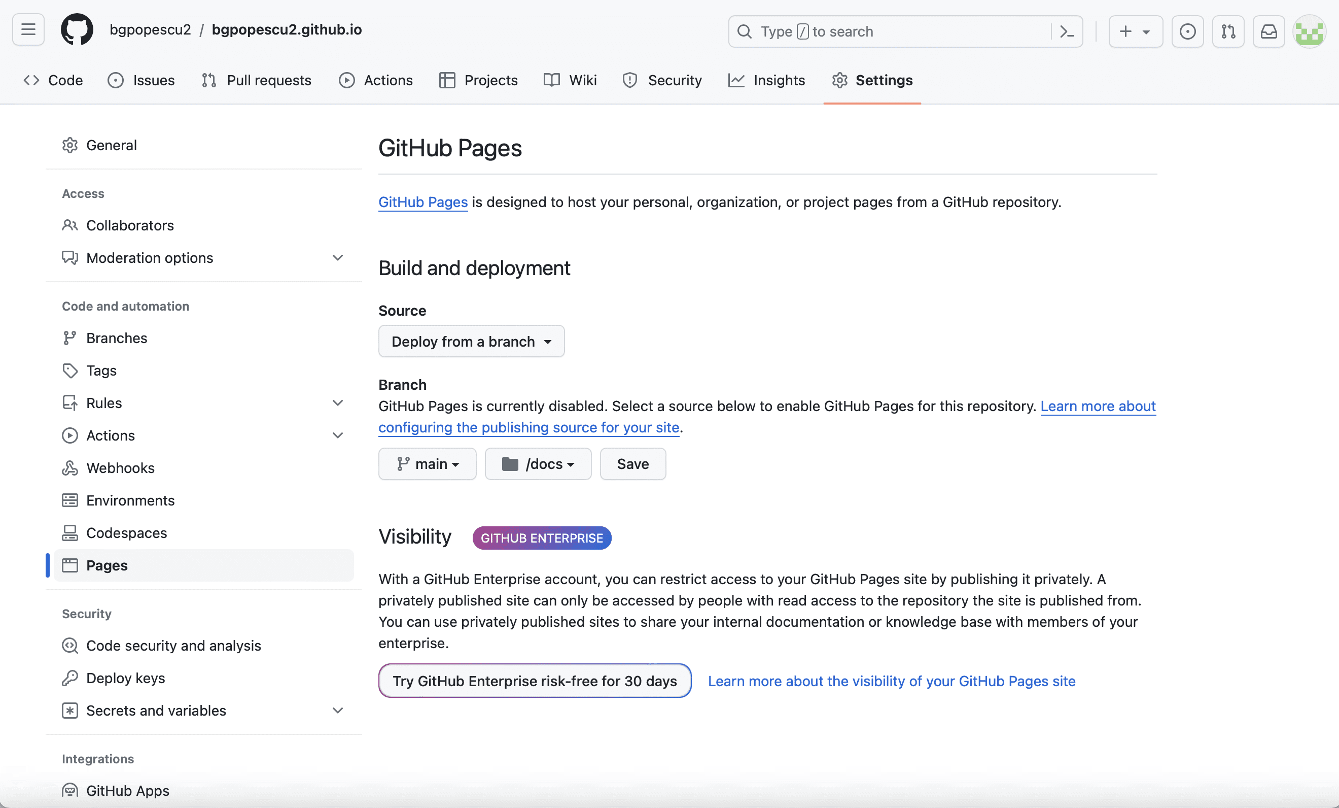 In this case, it will be bgpopescu2. This will appear in bgpopescu2.github.io