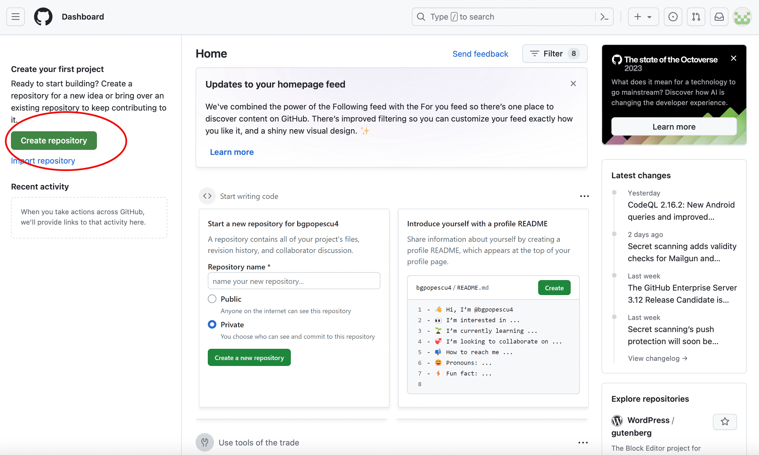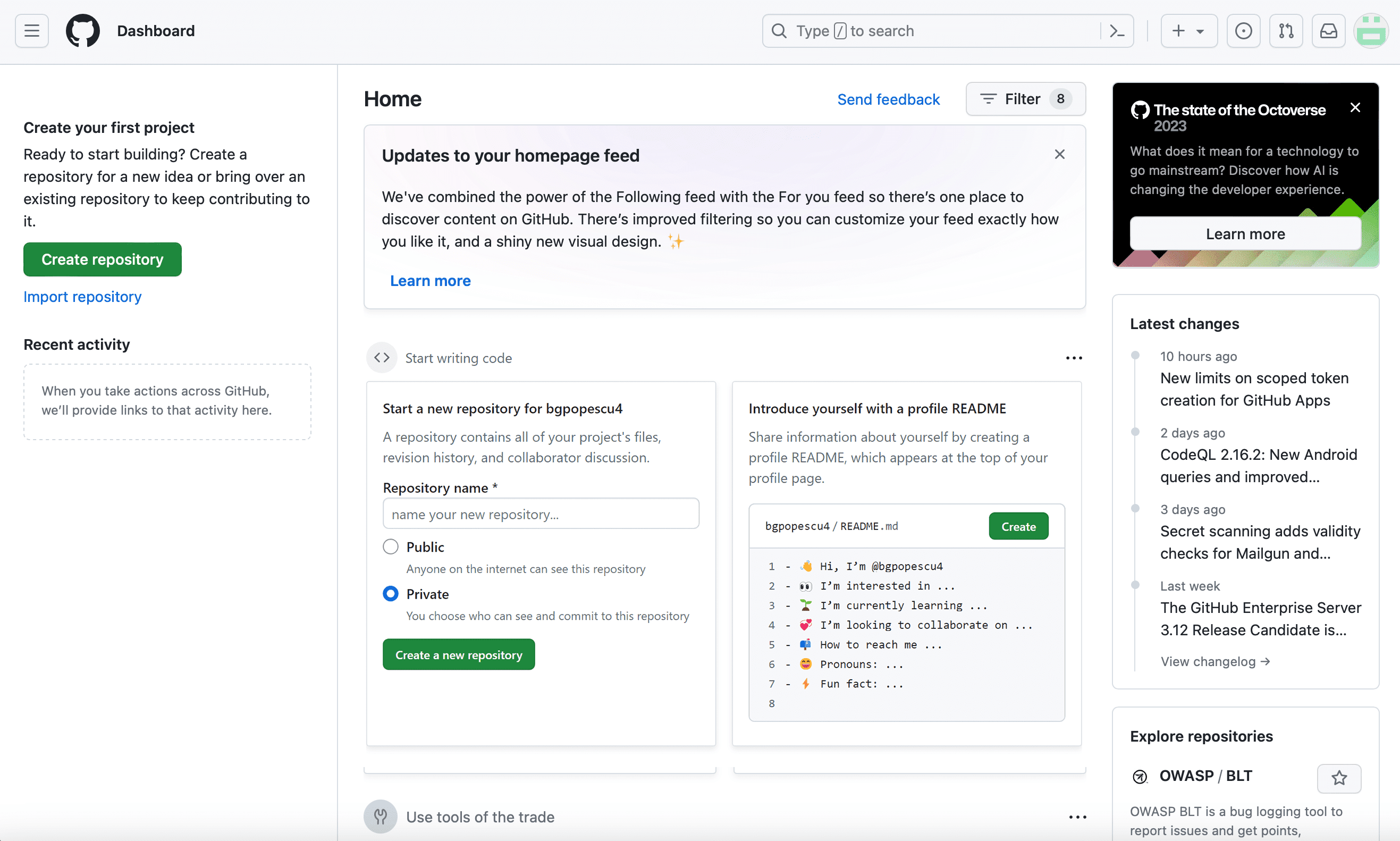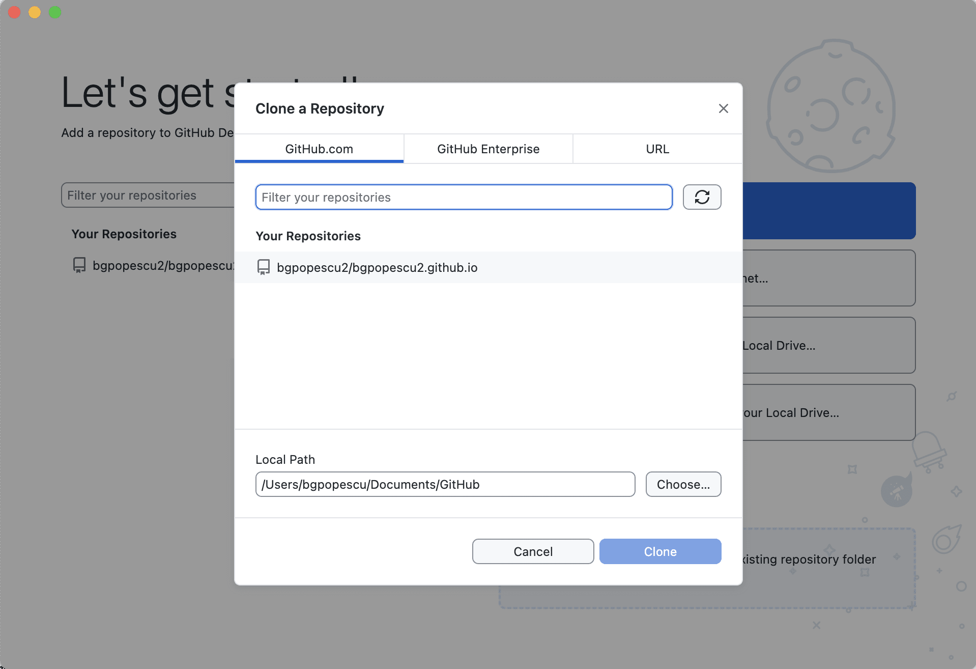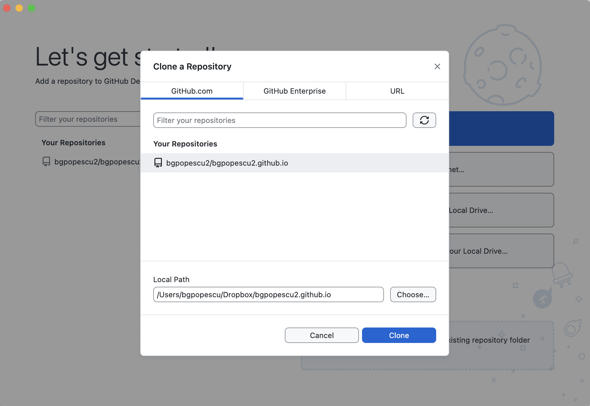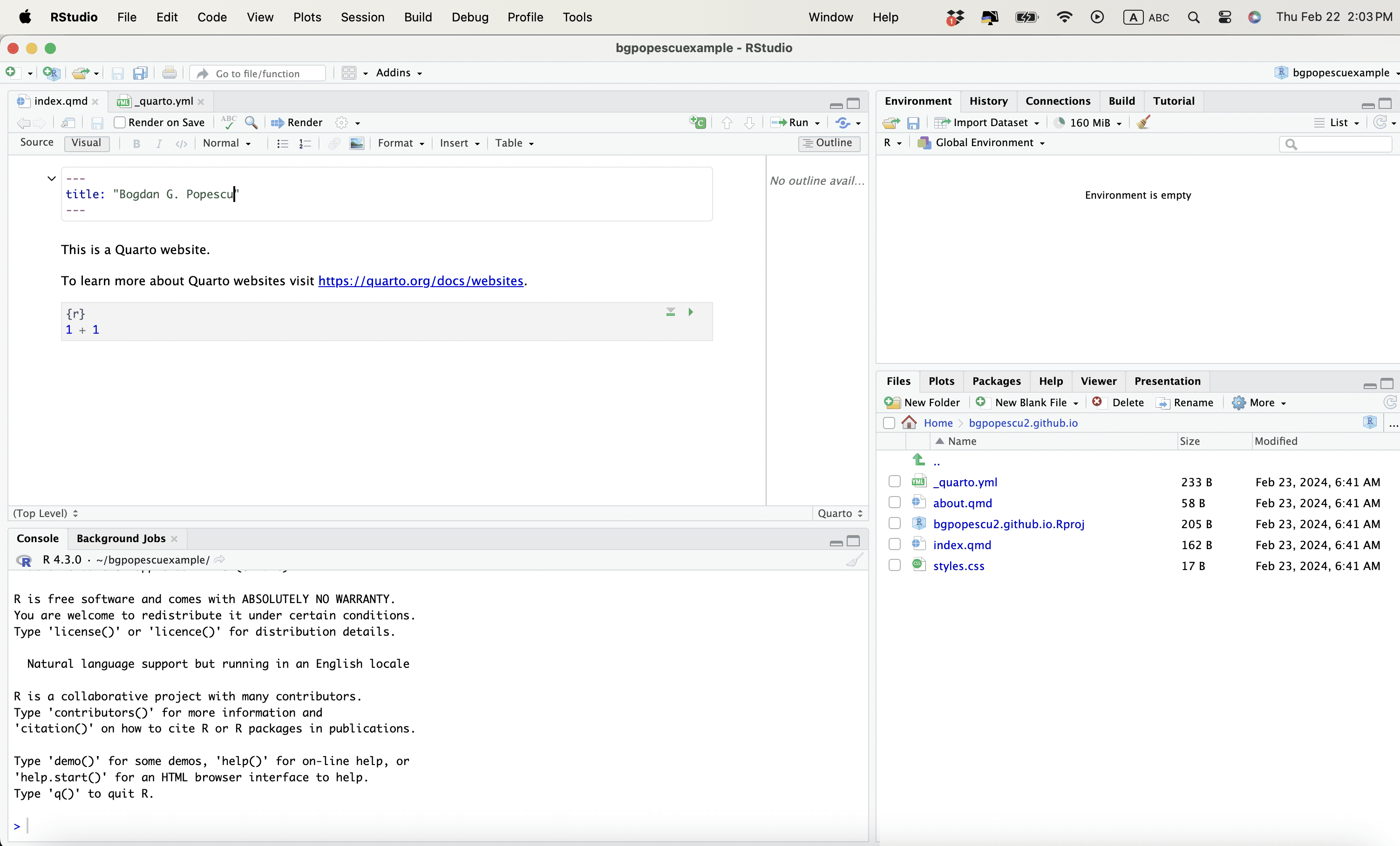 In this case, it will be bgpopescu2. This will appear in bgpopescu2.github.io