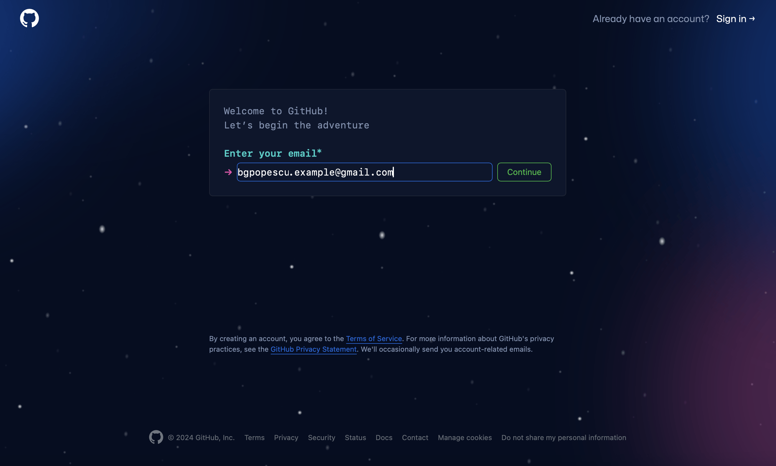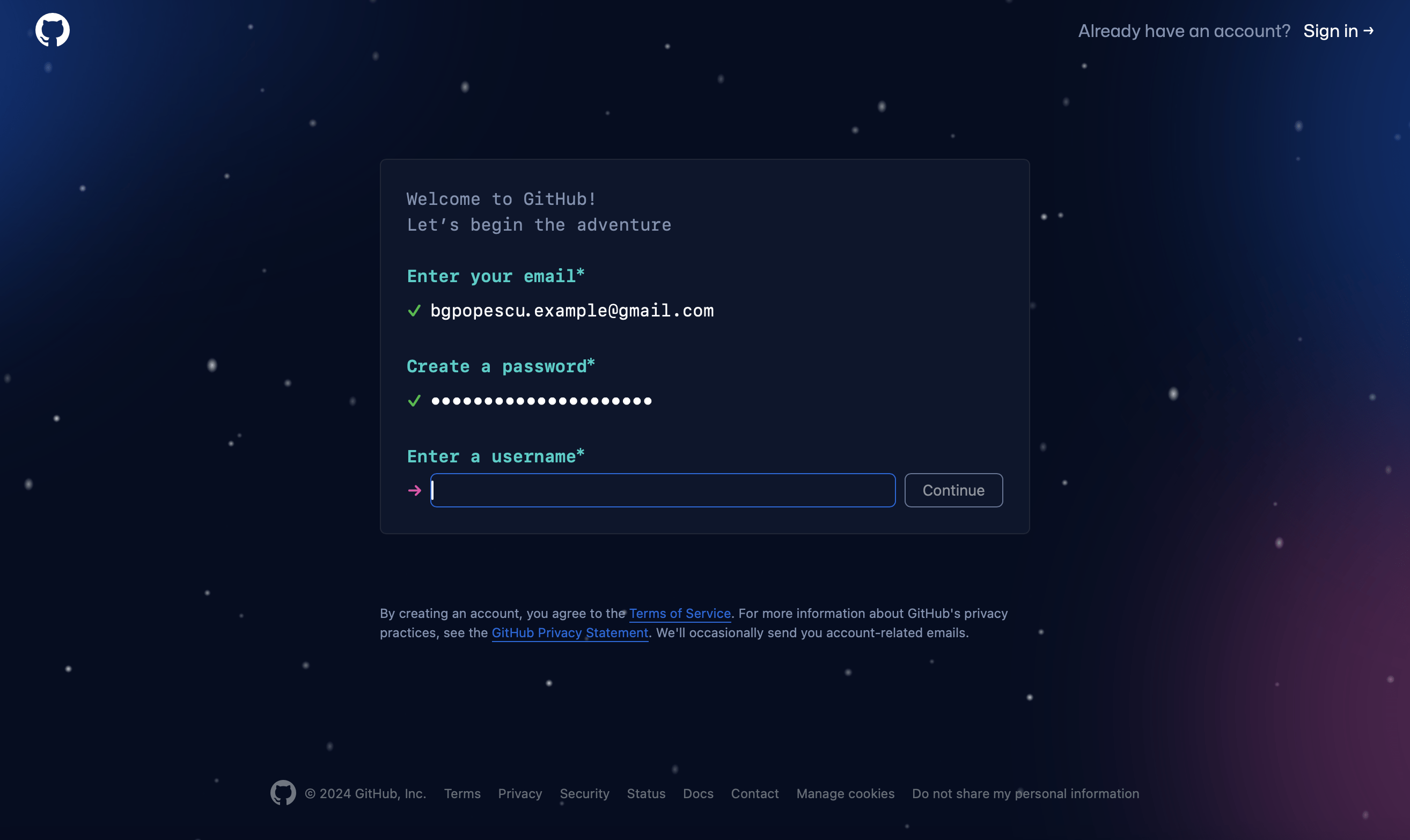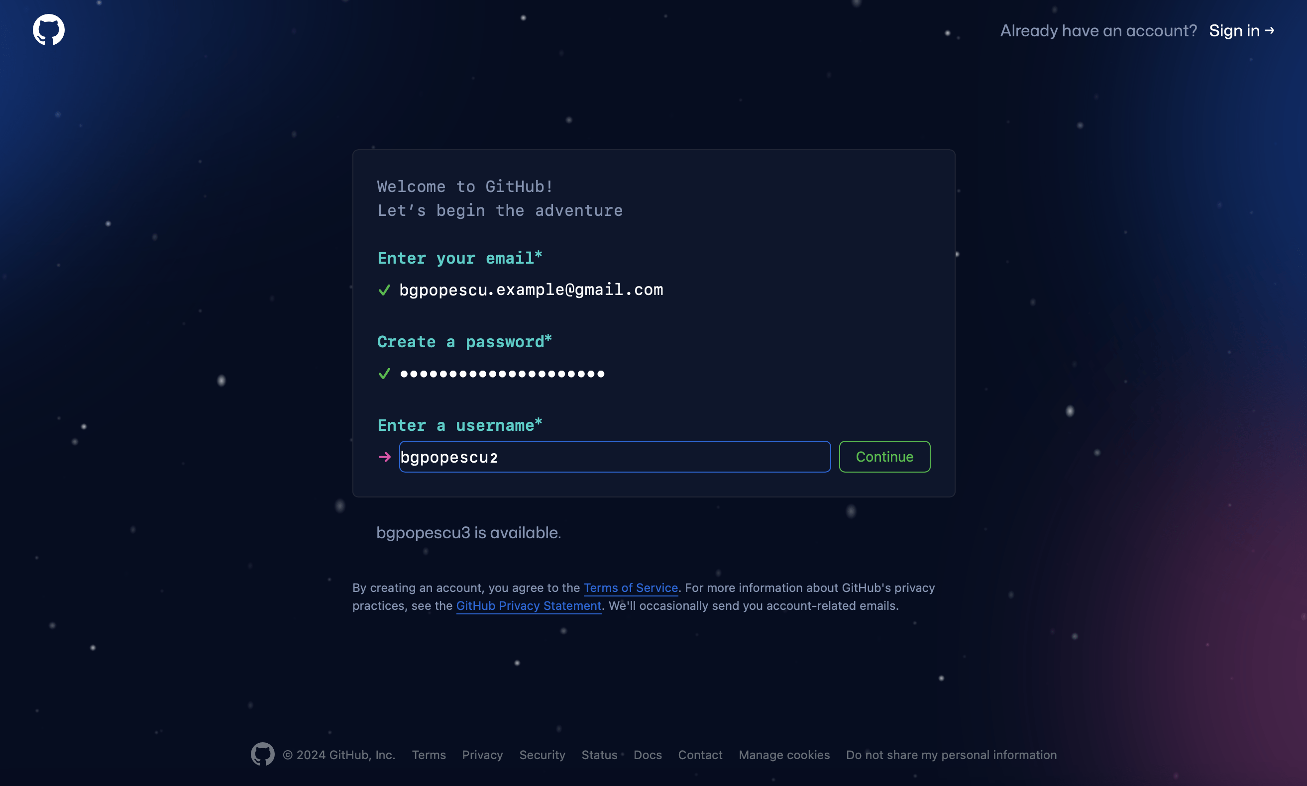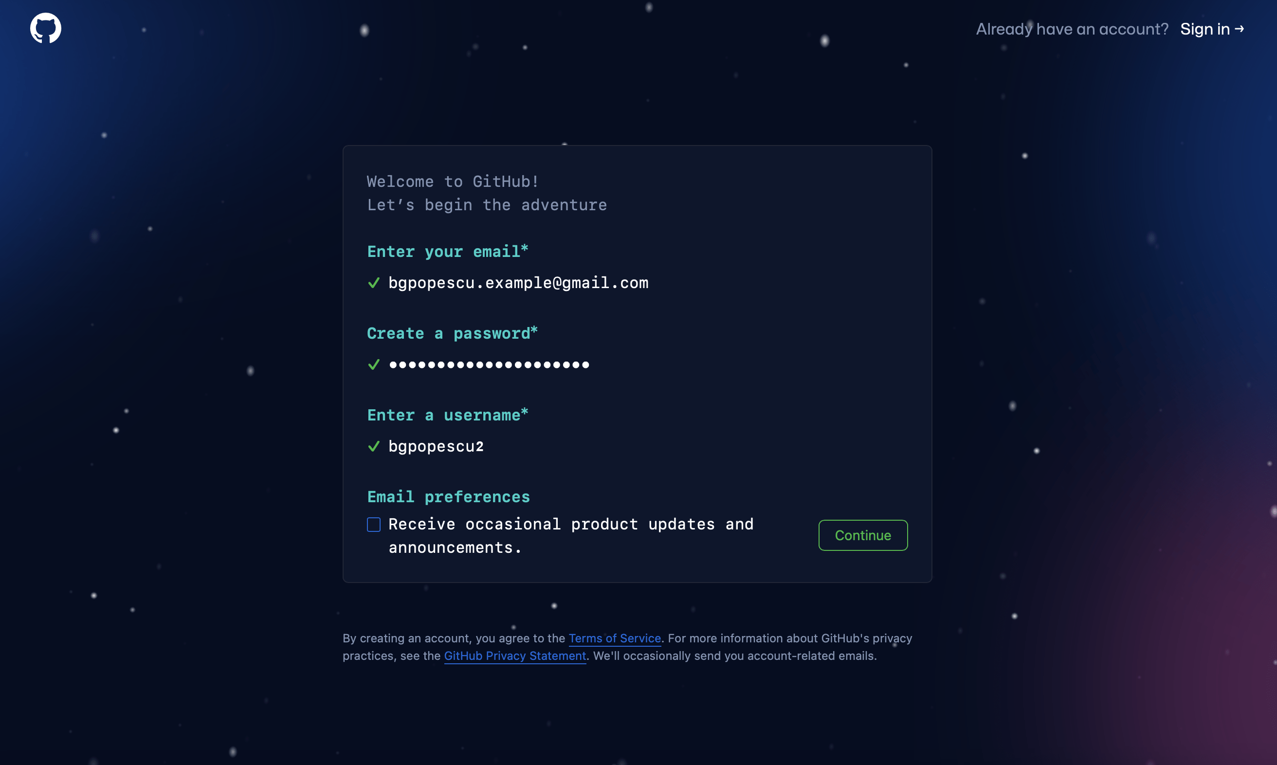 We now can create a Github account.