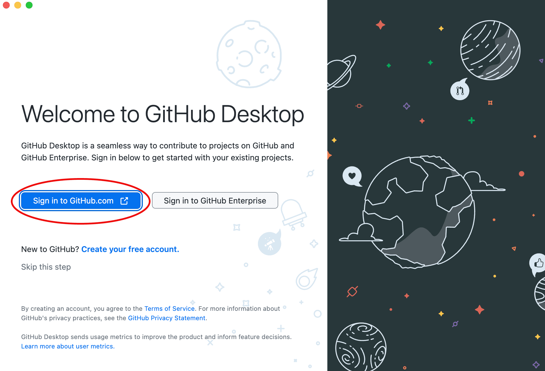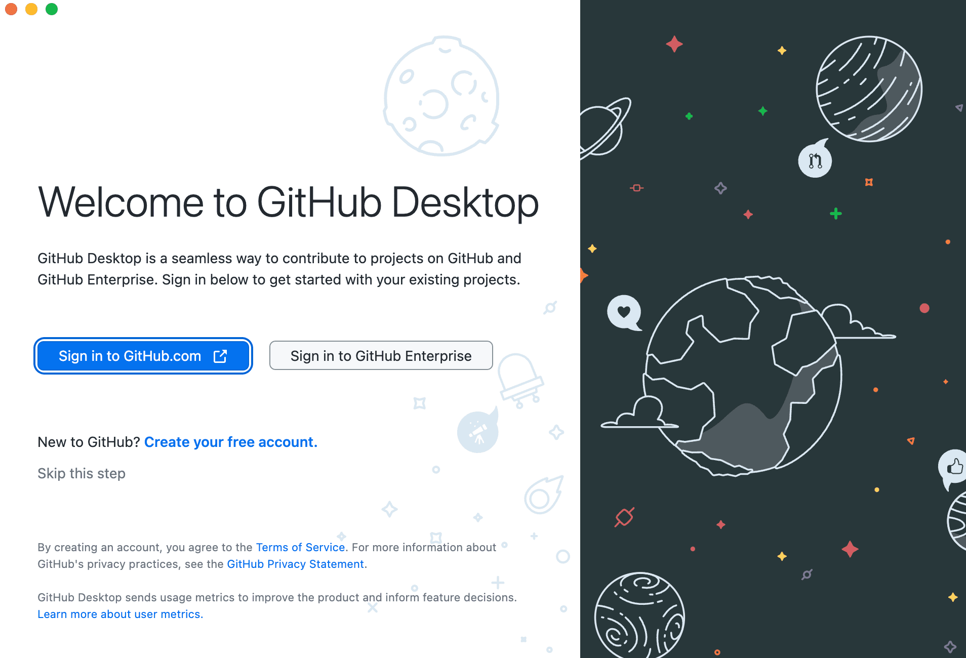 After you have installed GitHub Desktop, sign in