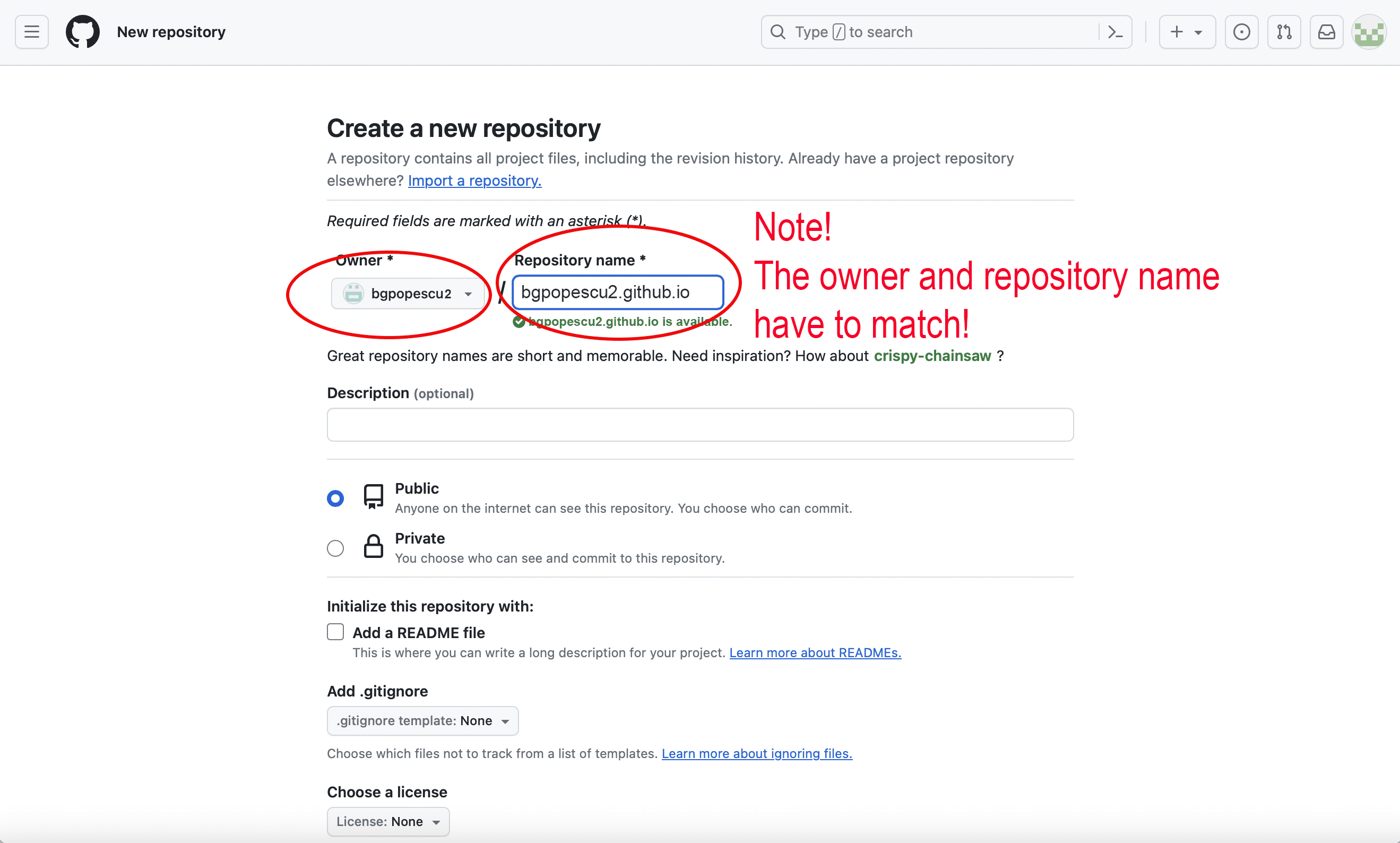 This is the username. This will appear in username.github.io