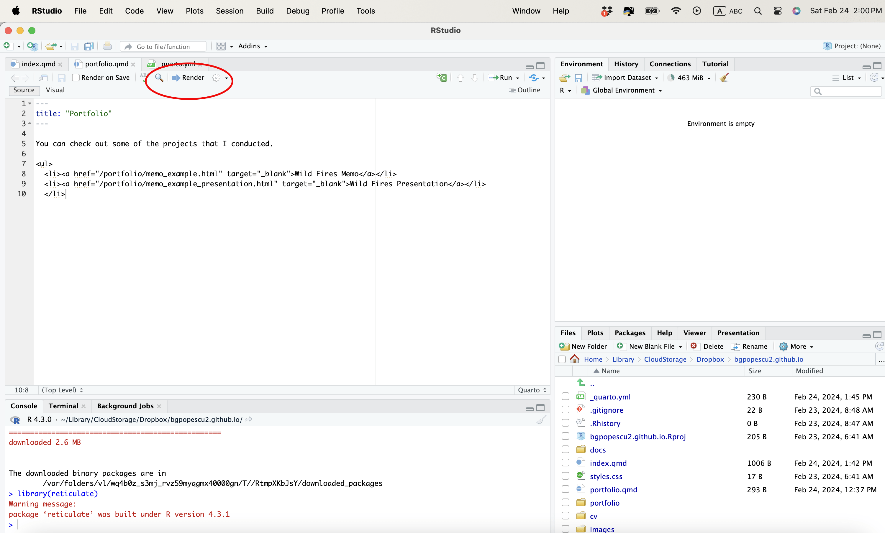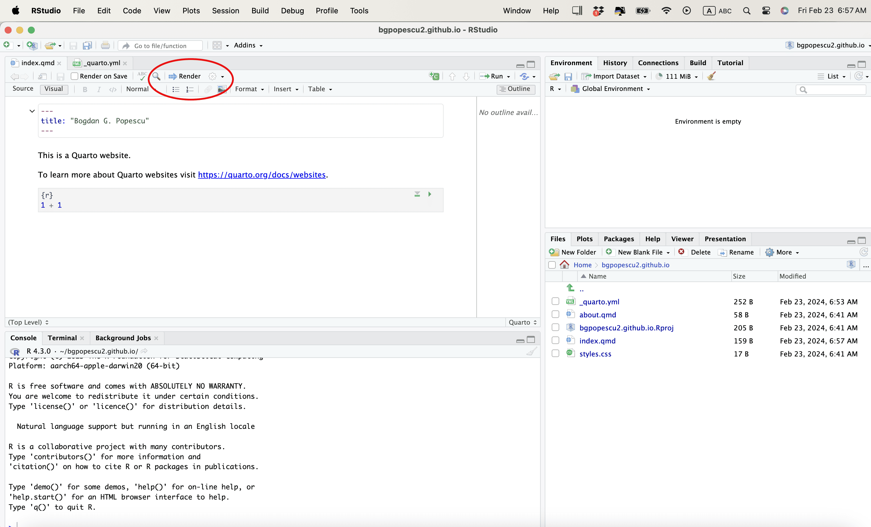 Then render the qmd file