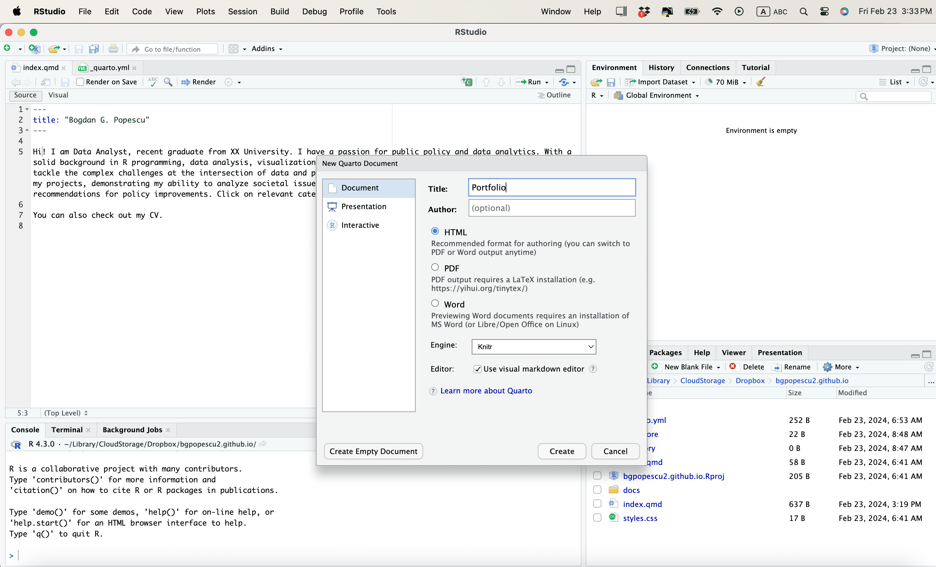 Github Websites and Quarto