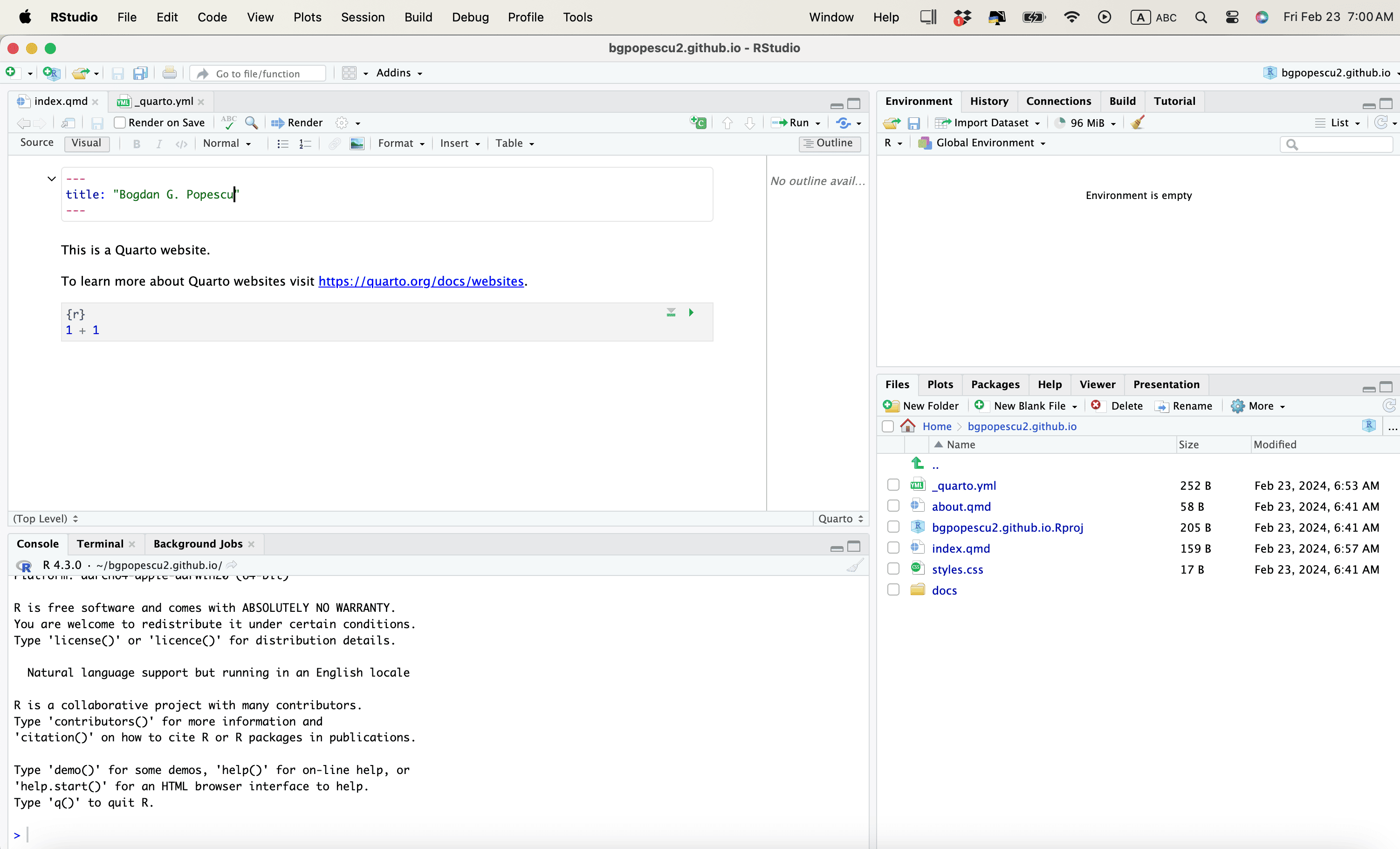 Popescu (JCU): Github Websites and Quarto