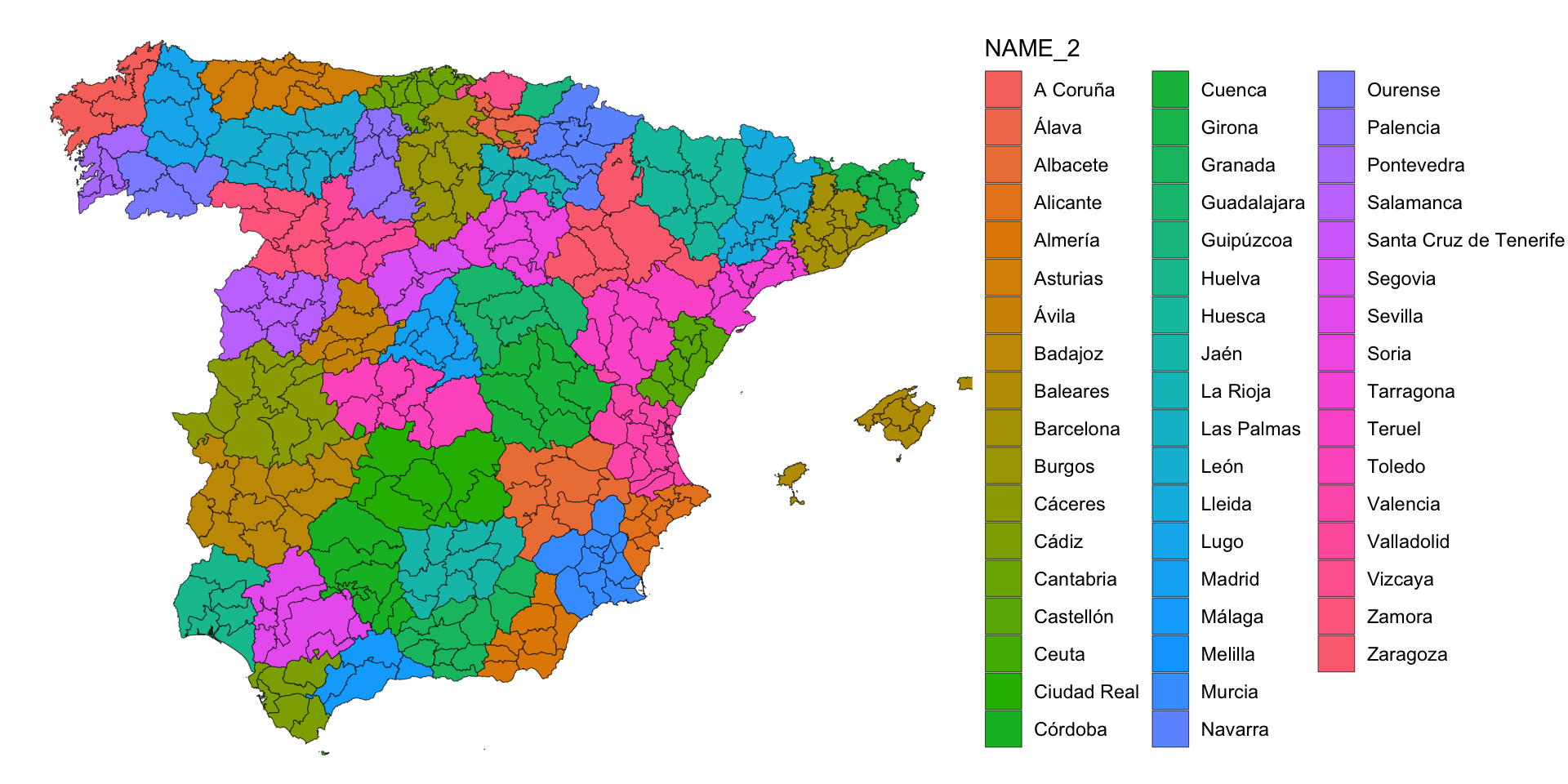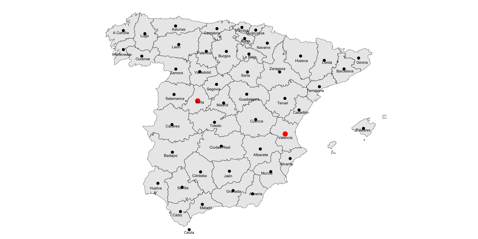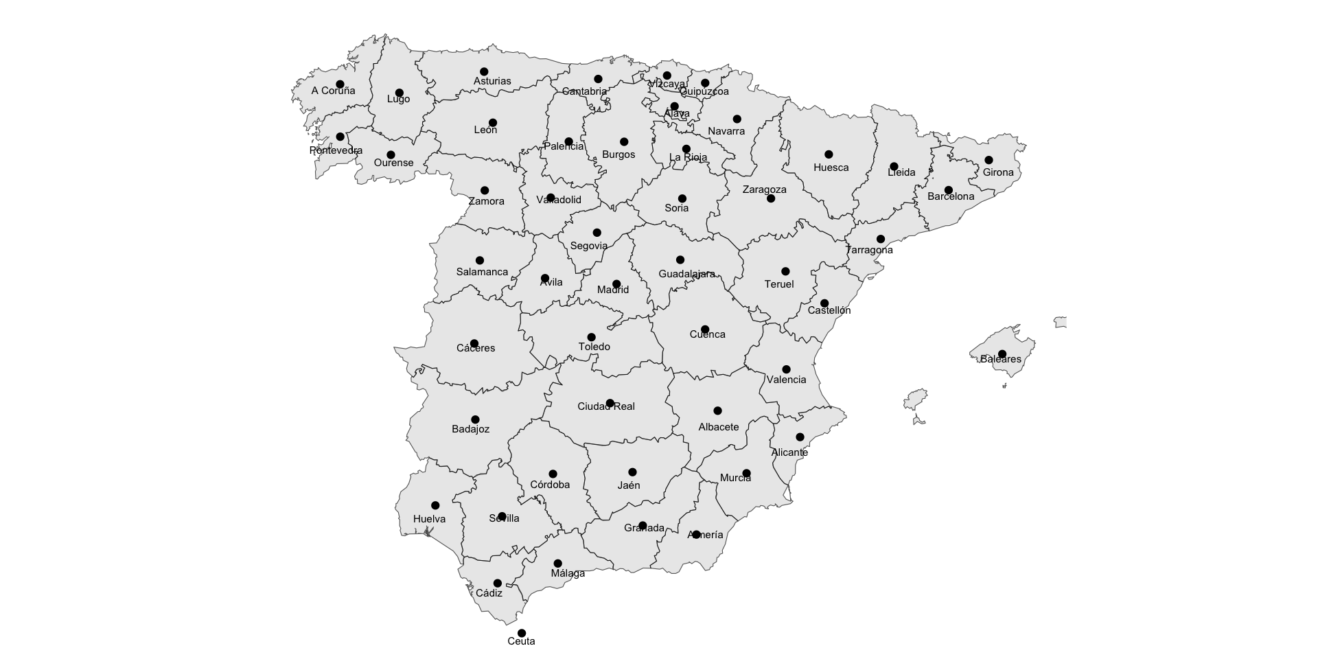 Let us assume that we did not have the polygons for provinces in Spain.