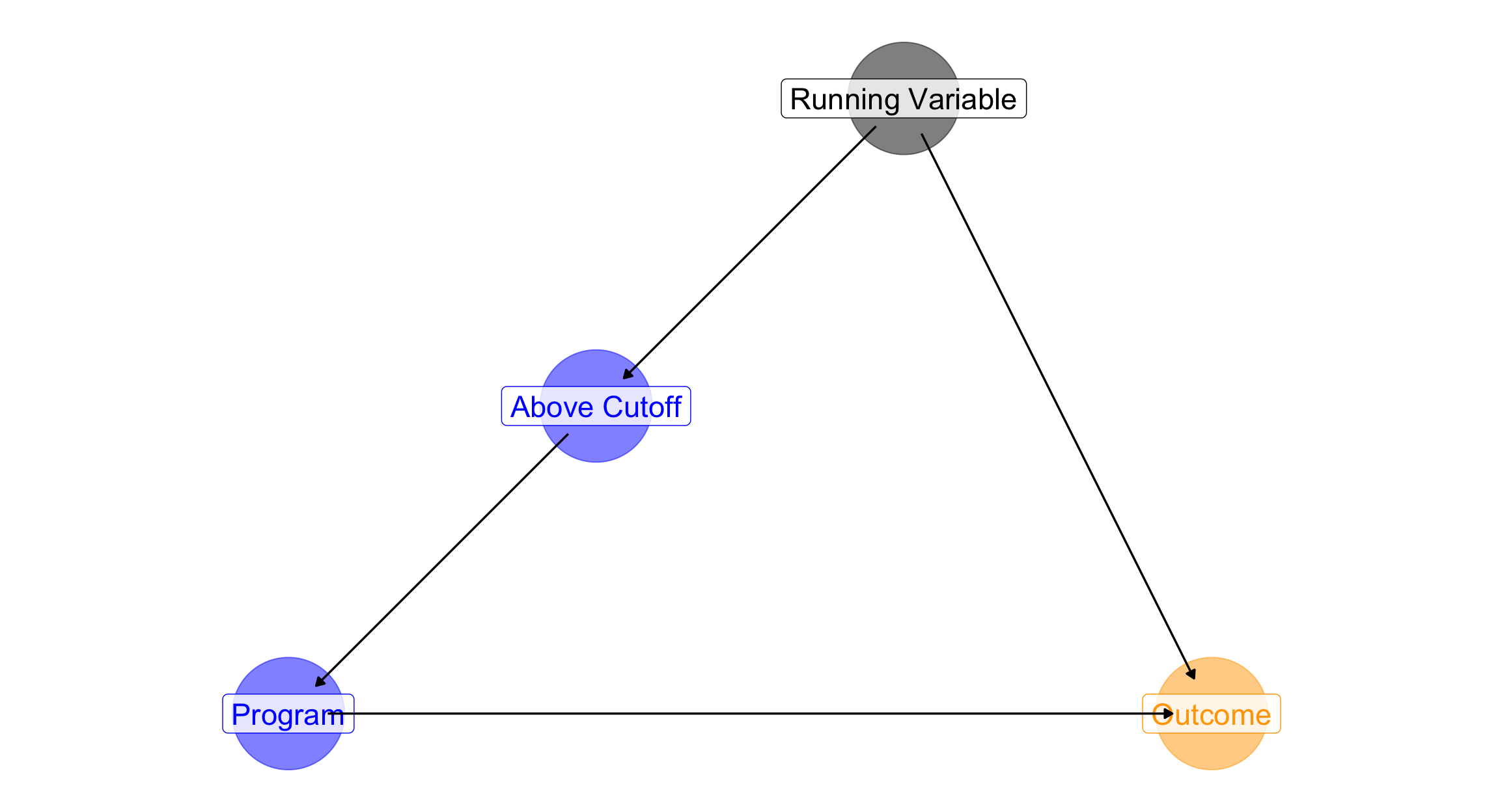 Key assumption: Potential outcomes (Y(0), Y(1)) are continuous in the running variable at the cutoff.