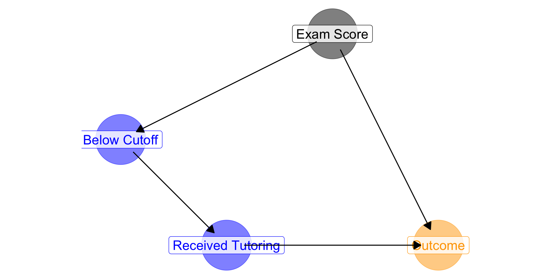 → Crossing the threshold doesn’t directly change the outcome except by changing tutoring status.