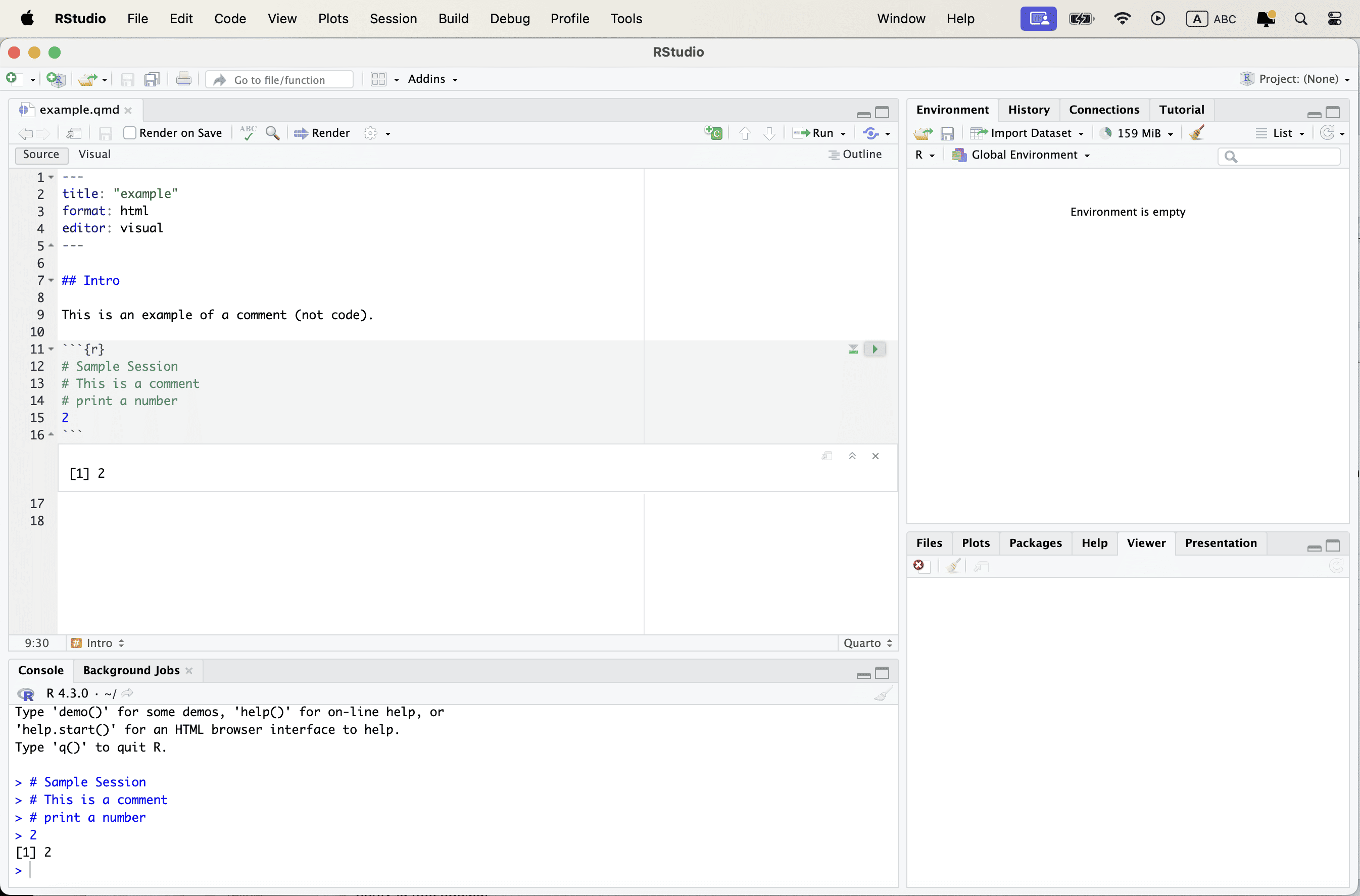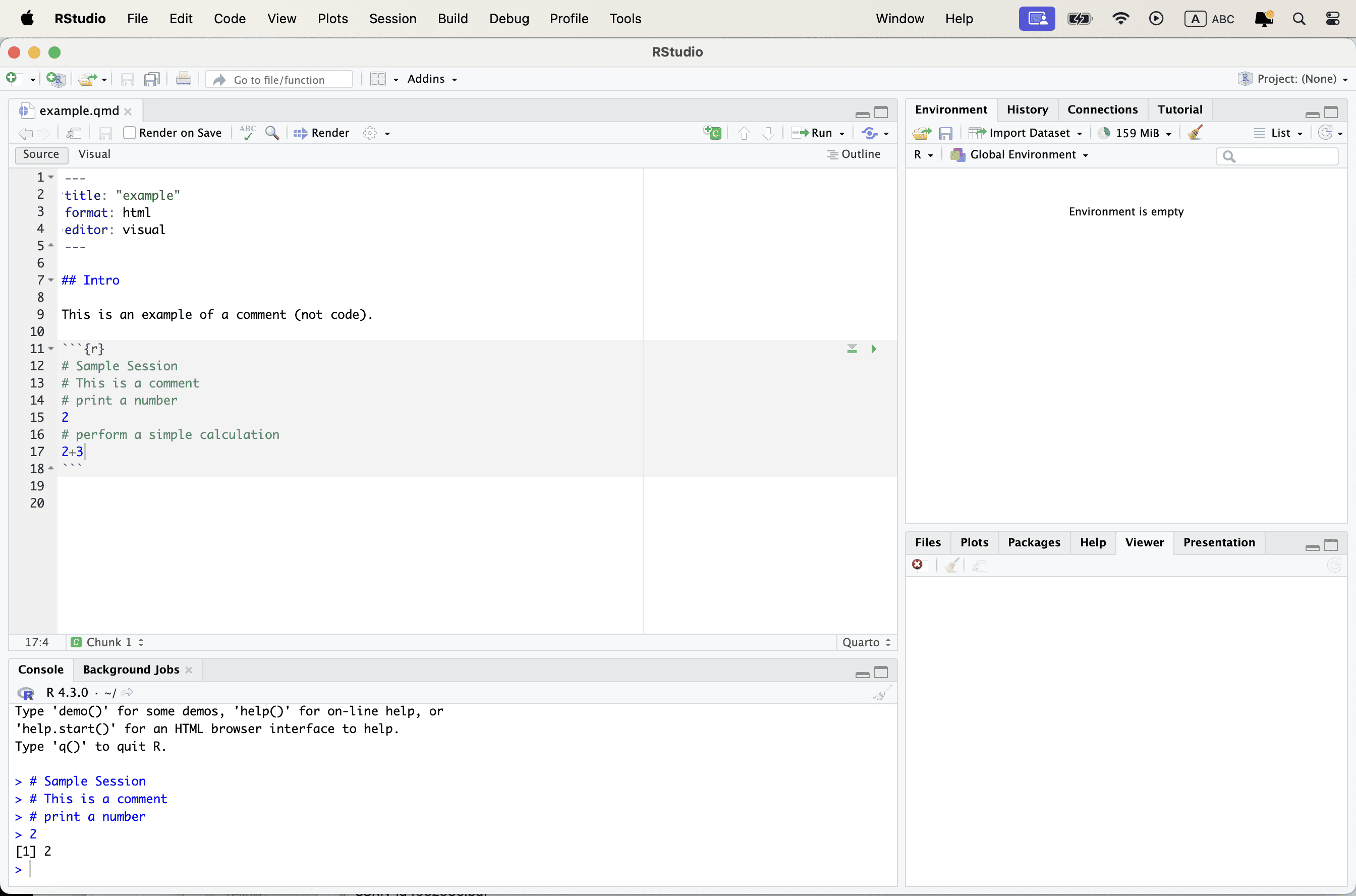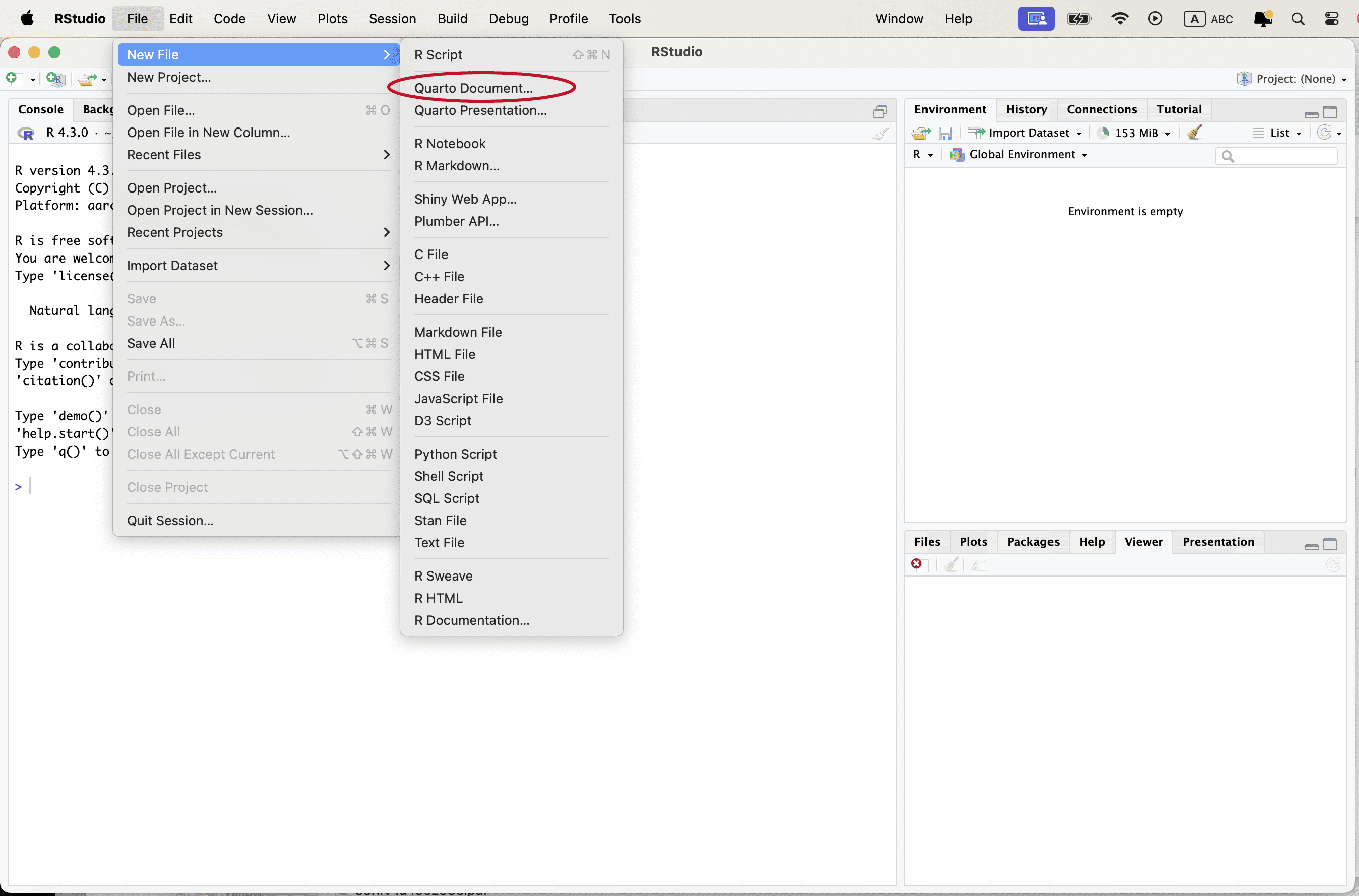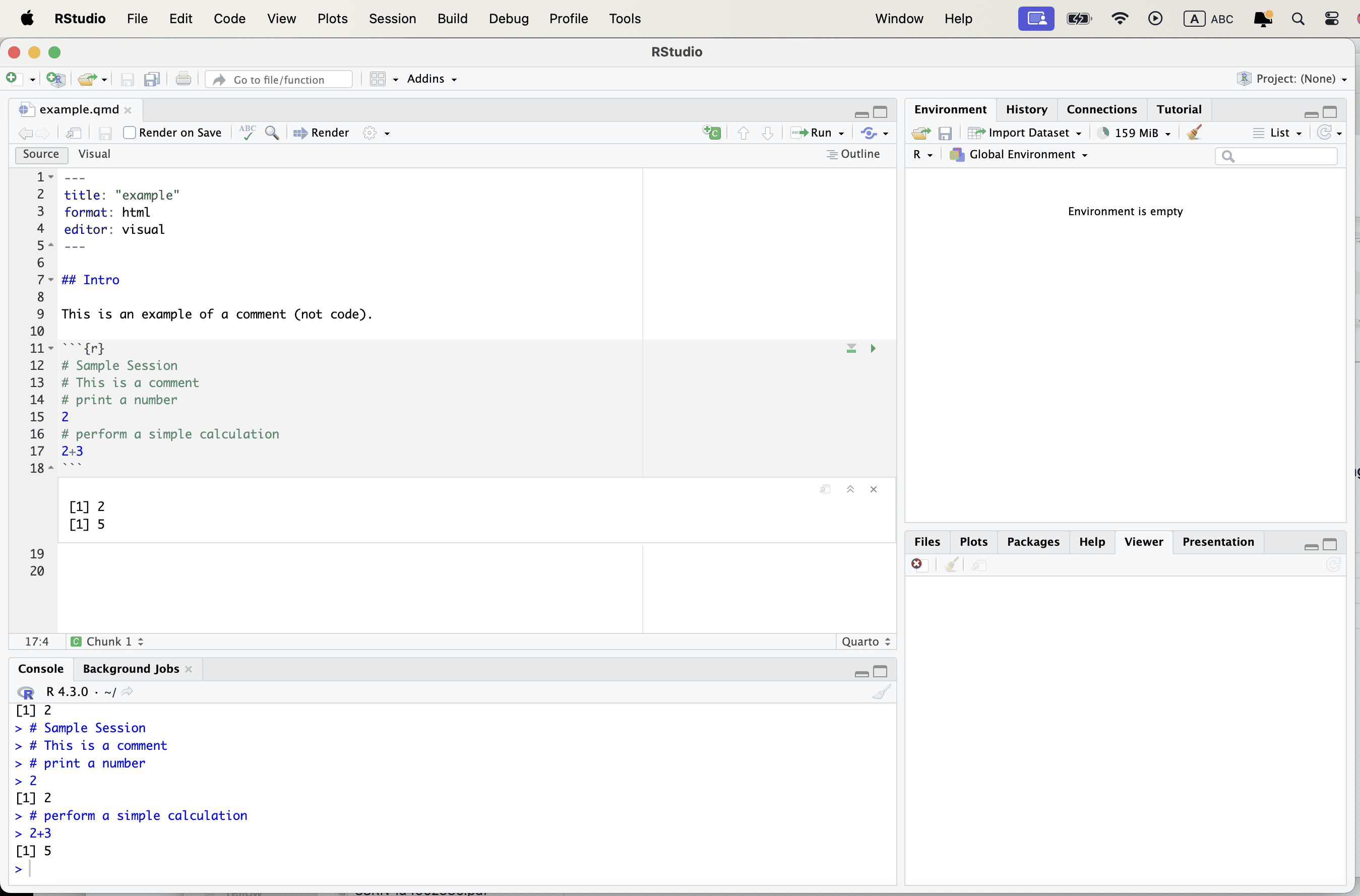 Quarto is a version of R Markdown from RStudio that allows us to run code and write text.
