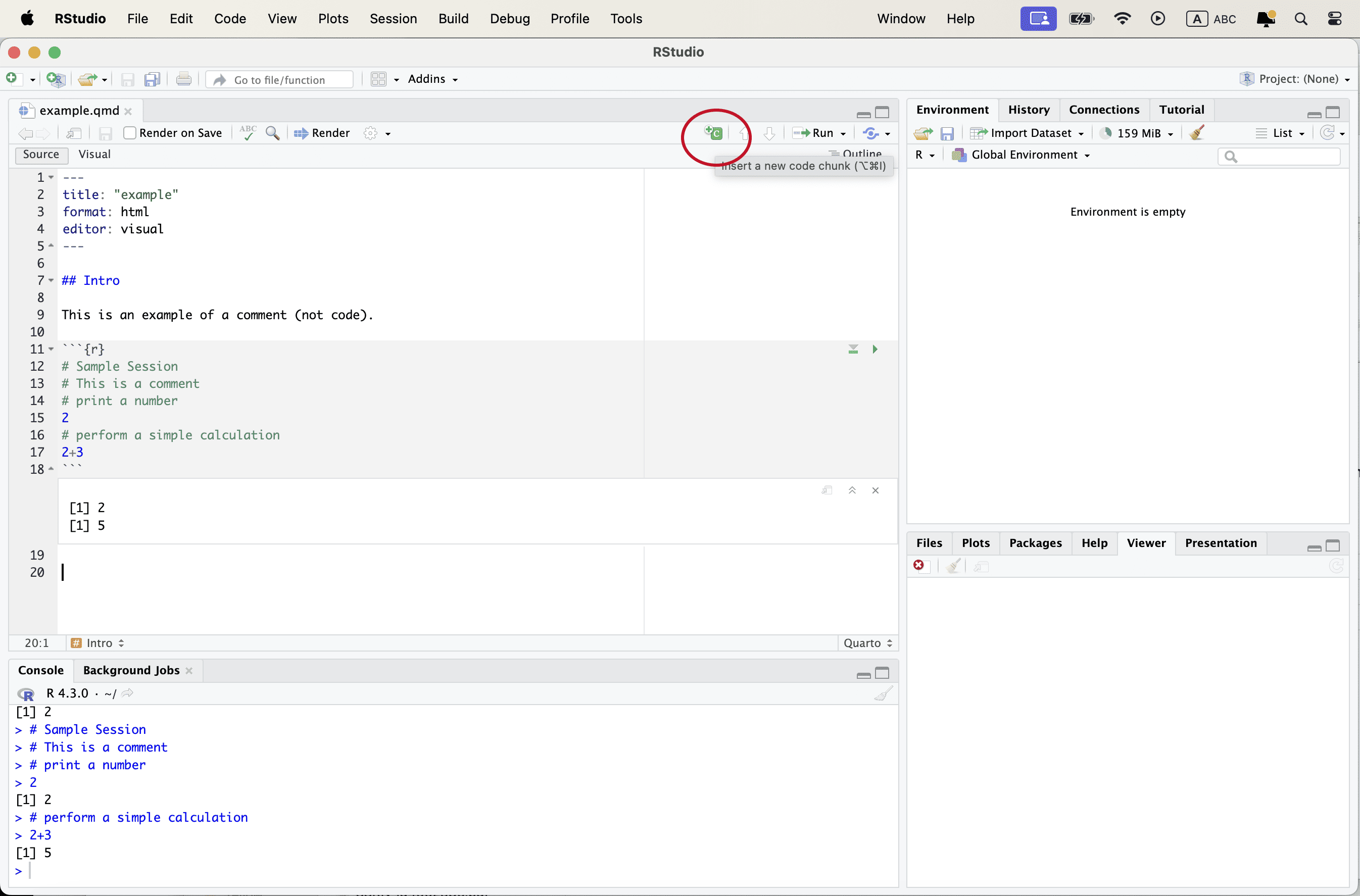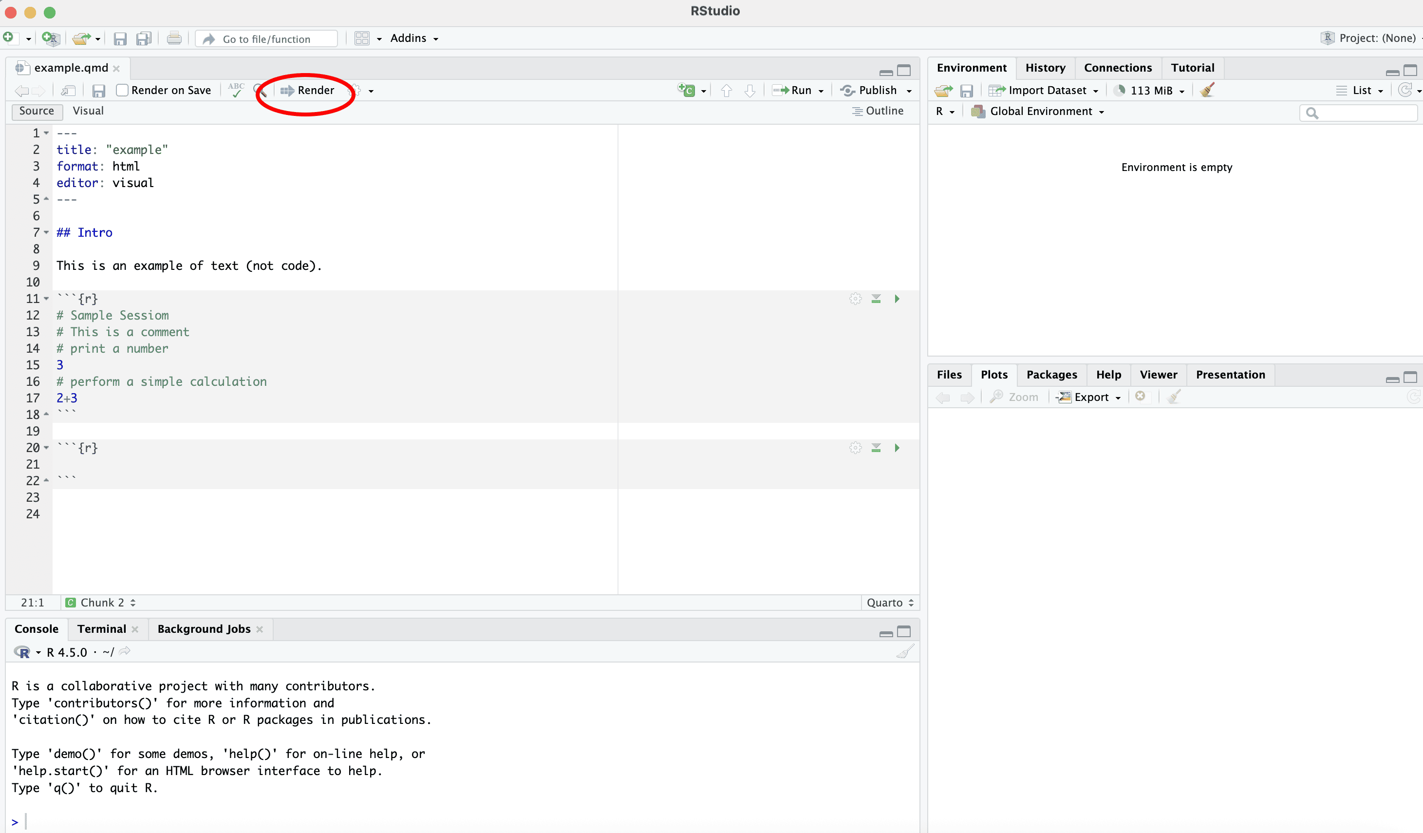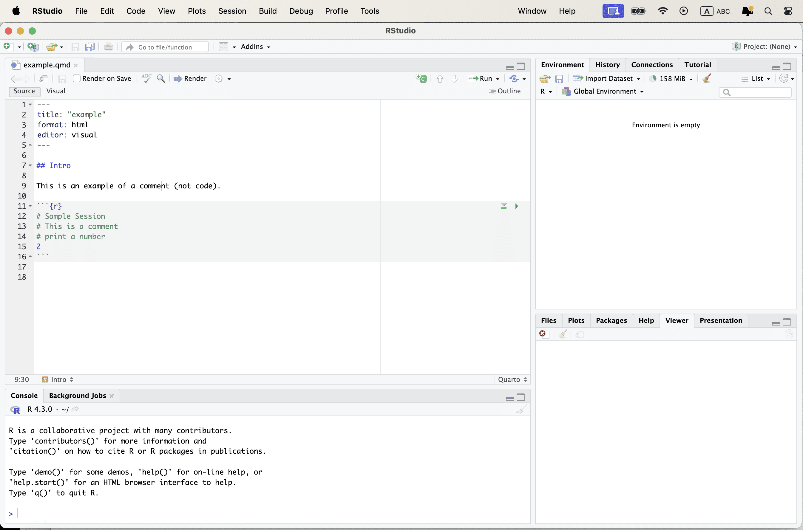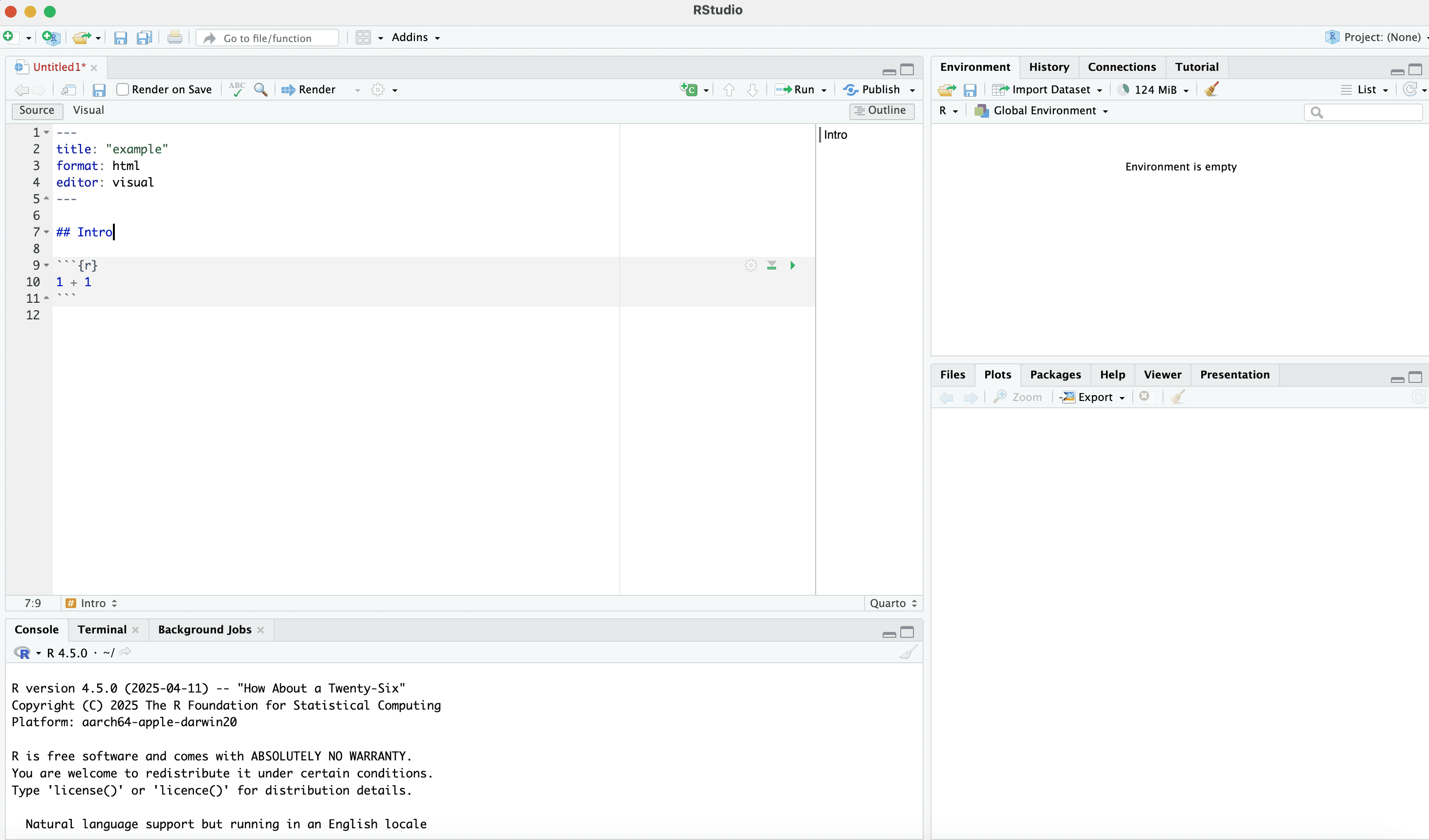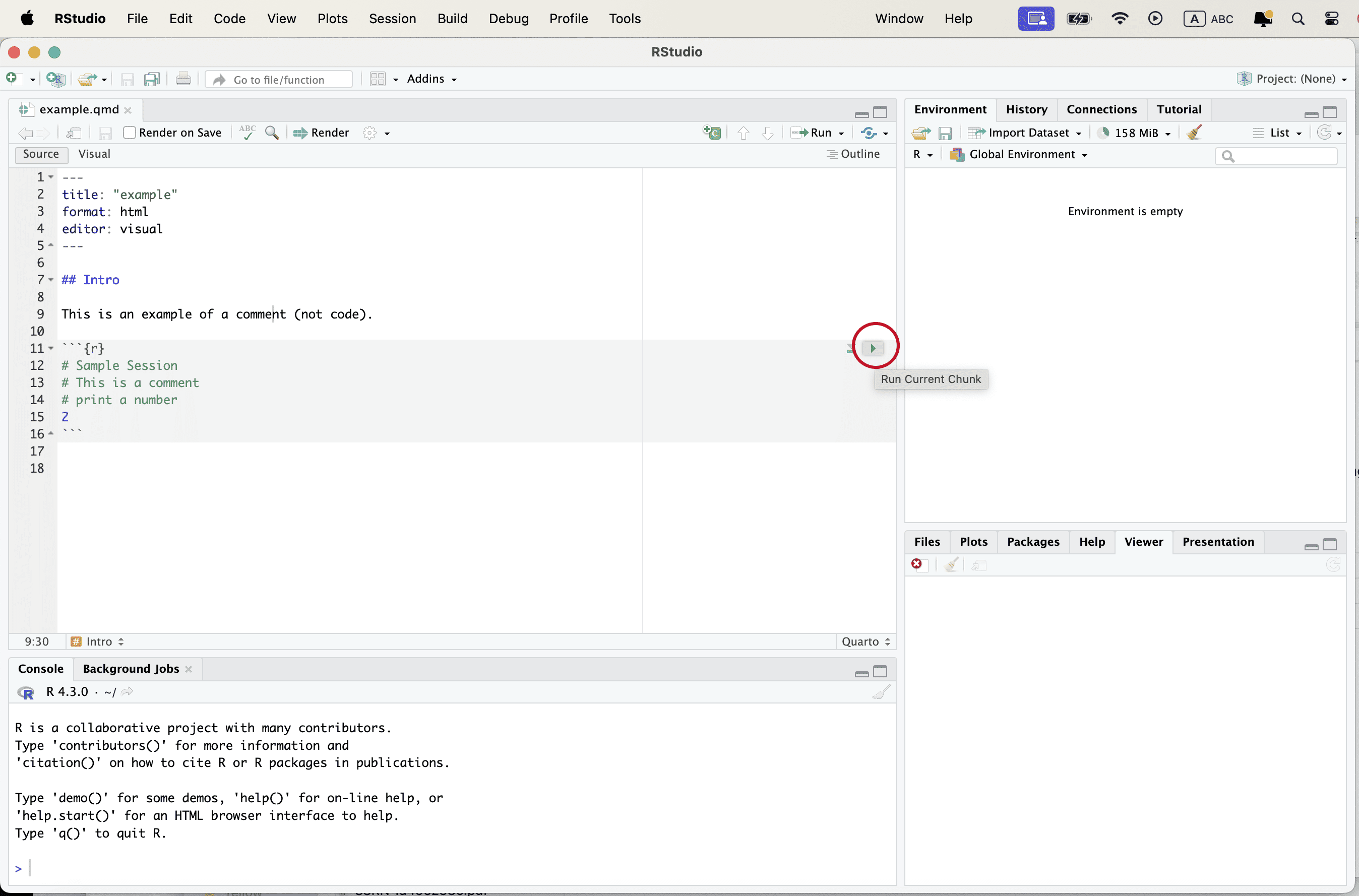 Quarto is a version of R Markdown from RStudio that allows us to run code and write text.