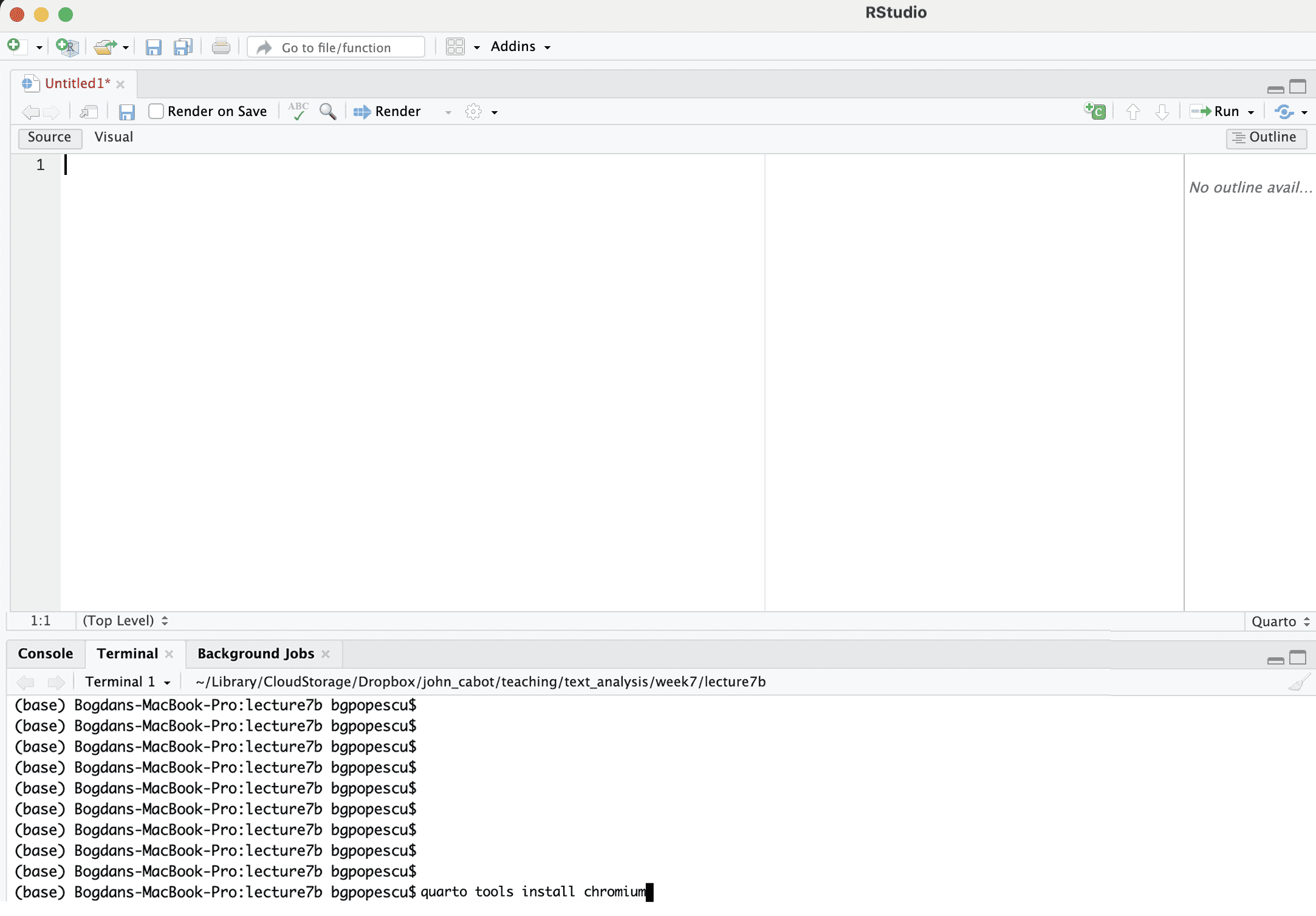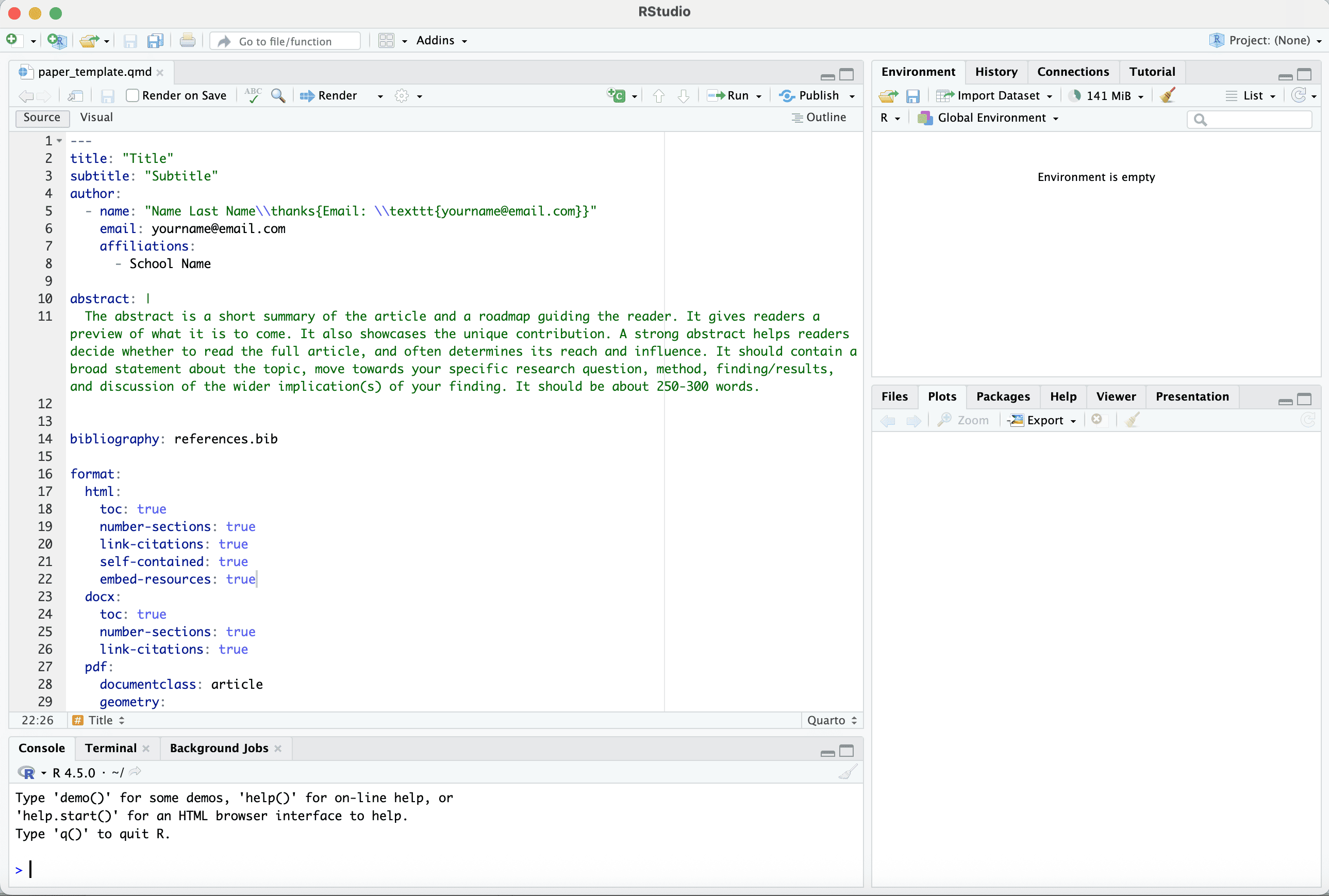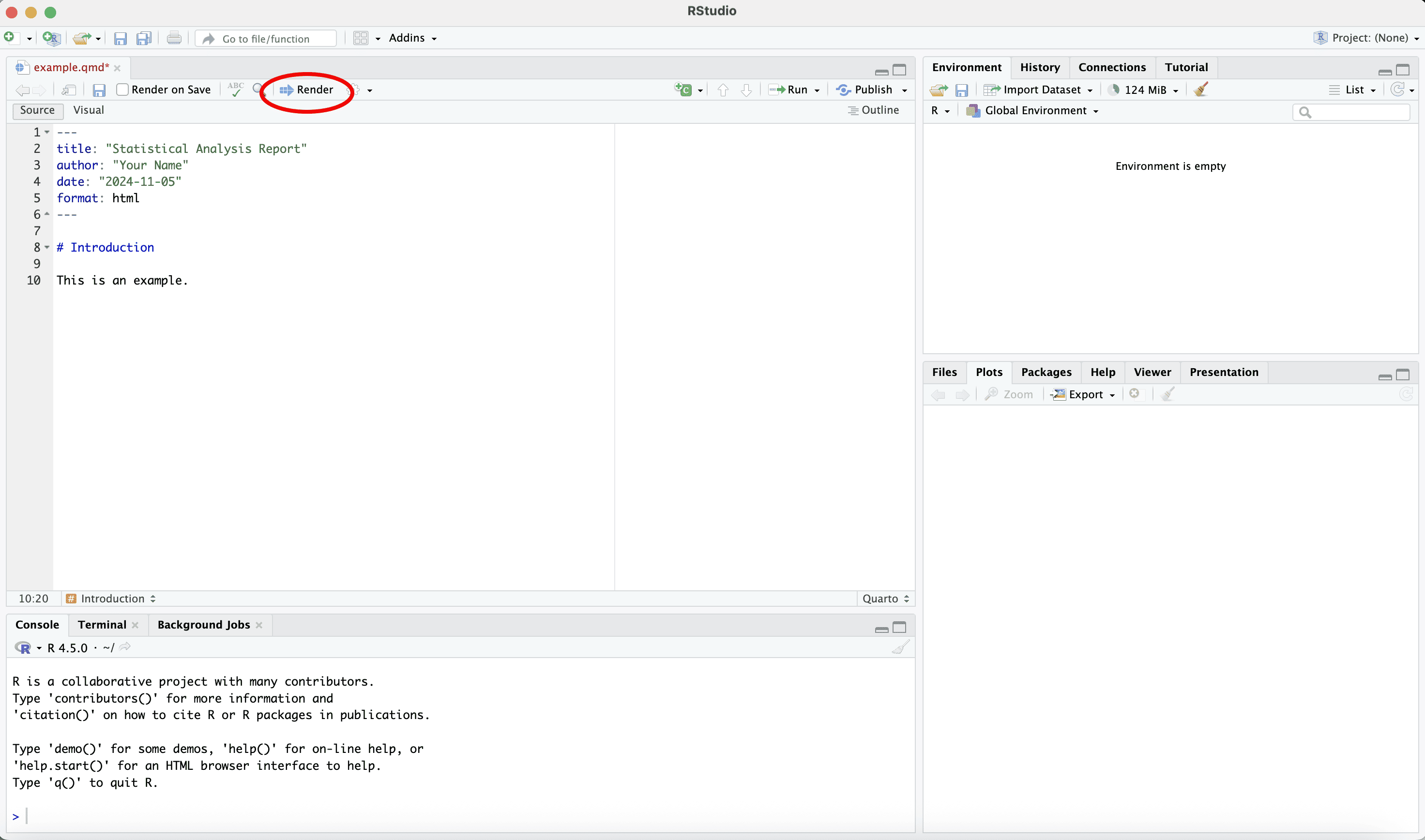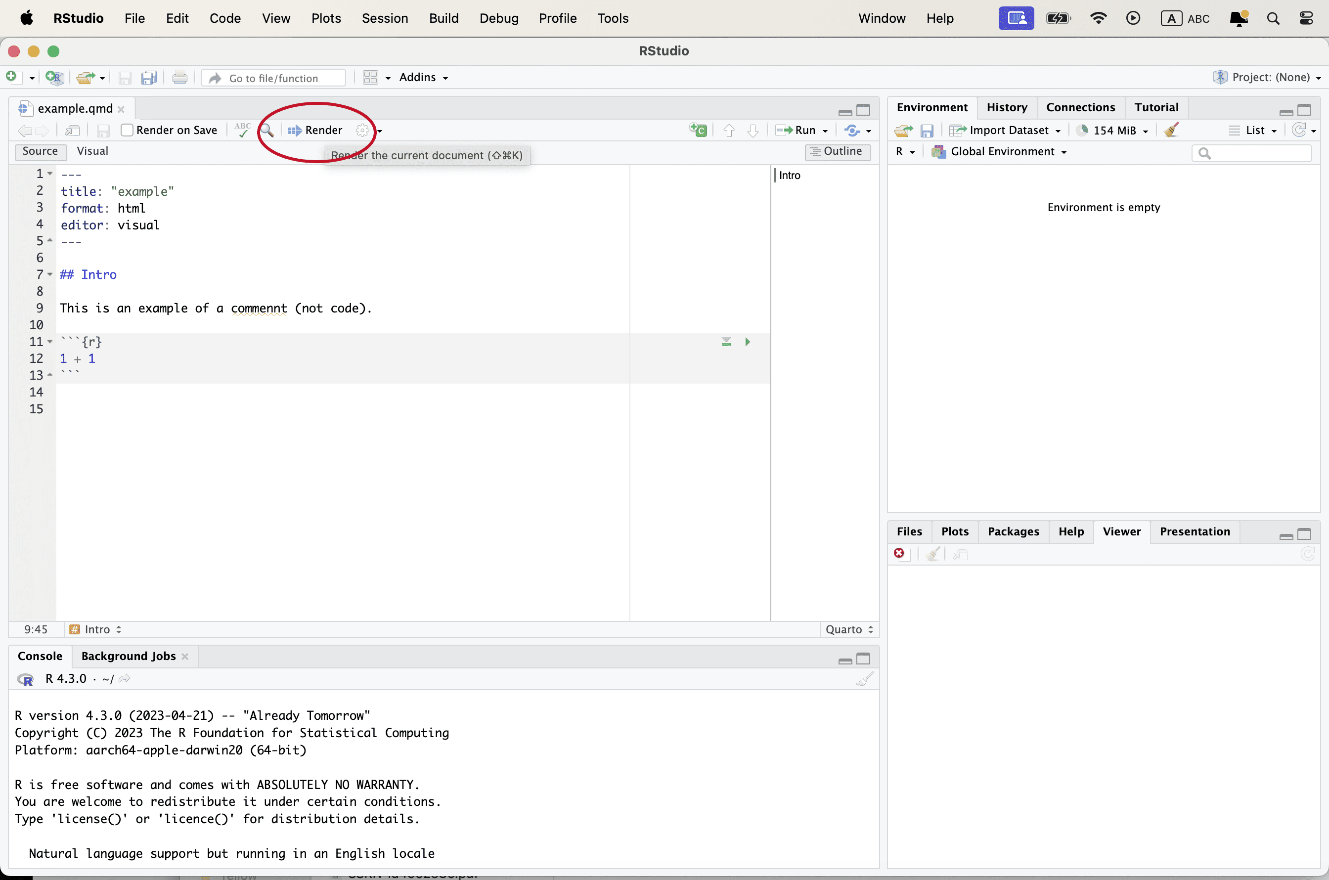 Quarto is a version of R Markdown from RStudio that allows us to run code and write text.