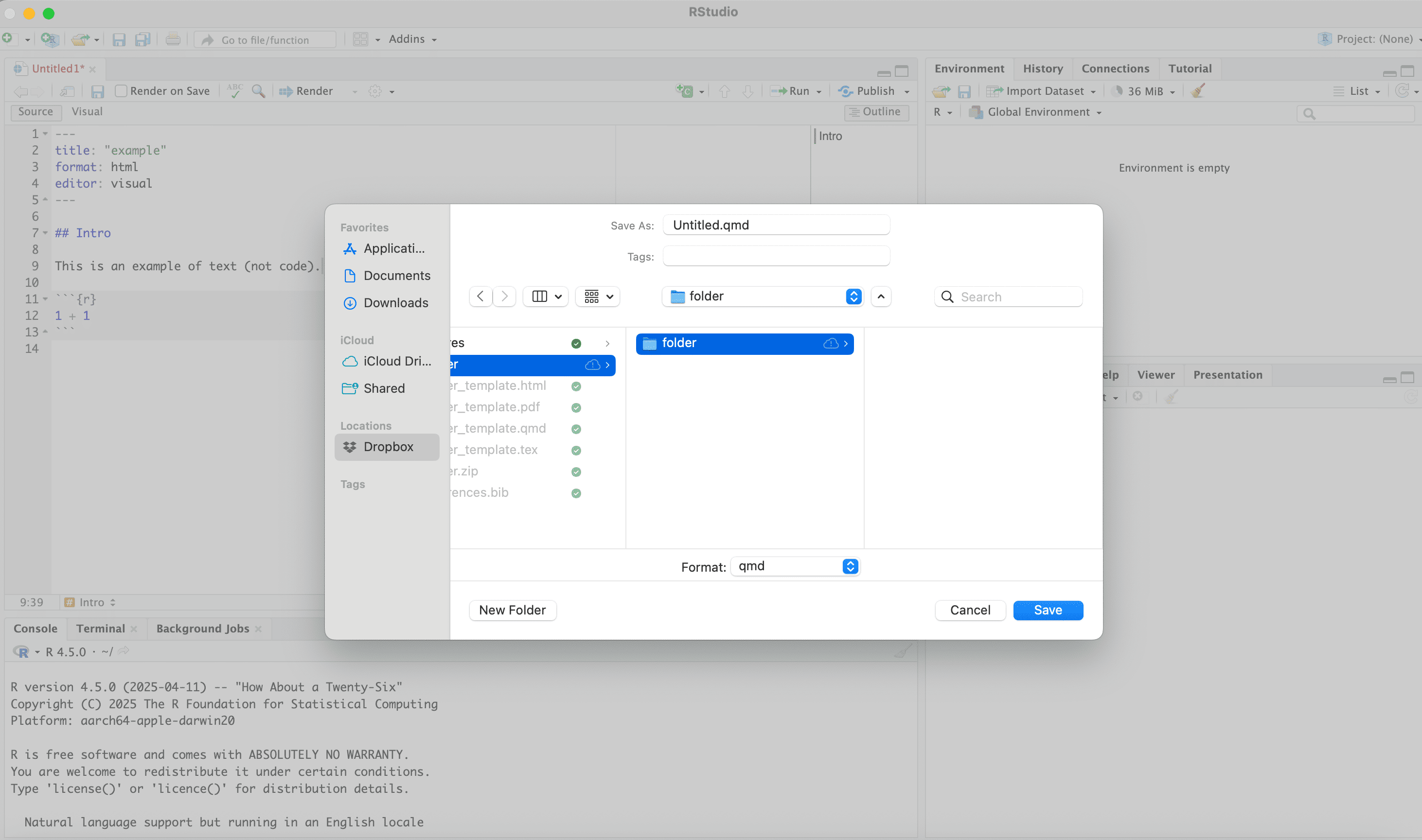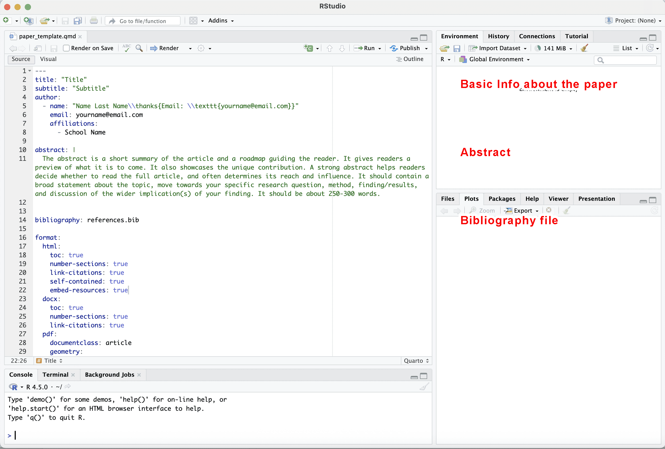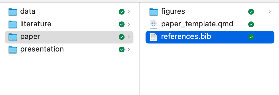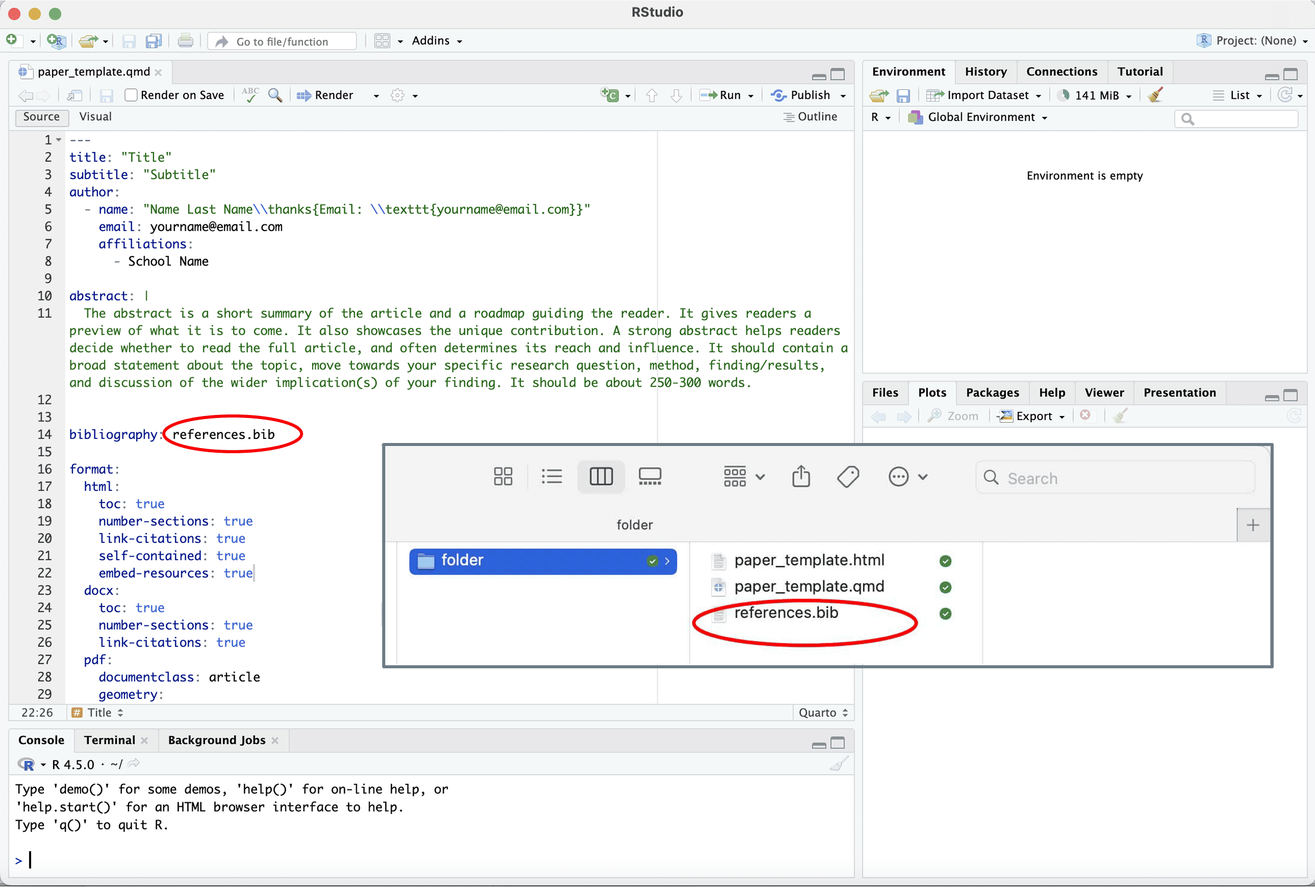 To make sure that references work, it is crucial that the the *.bib file and the *.qmd file are in the same folder.