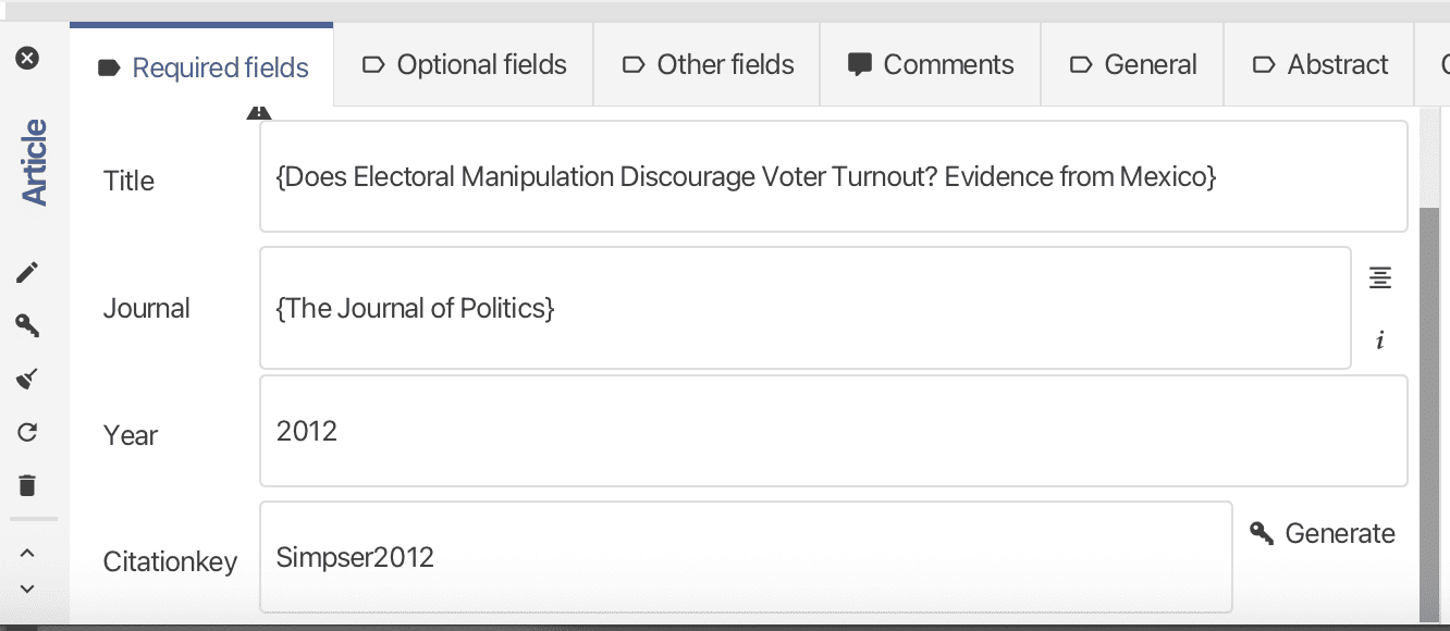Simpser, Alberto. 2012. “Does Electoral Manipulation Discourage Voter Turnout? Evidence from Mexico.” The Journal of Politics 74: 782–95.