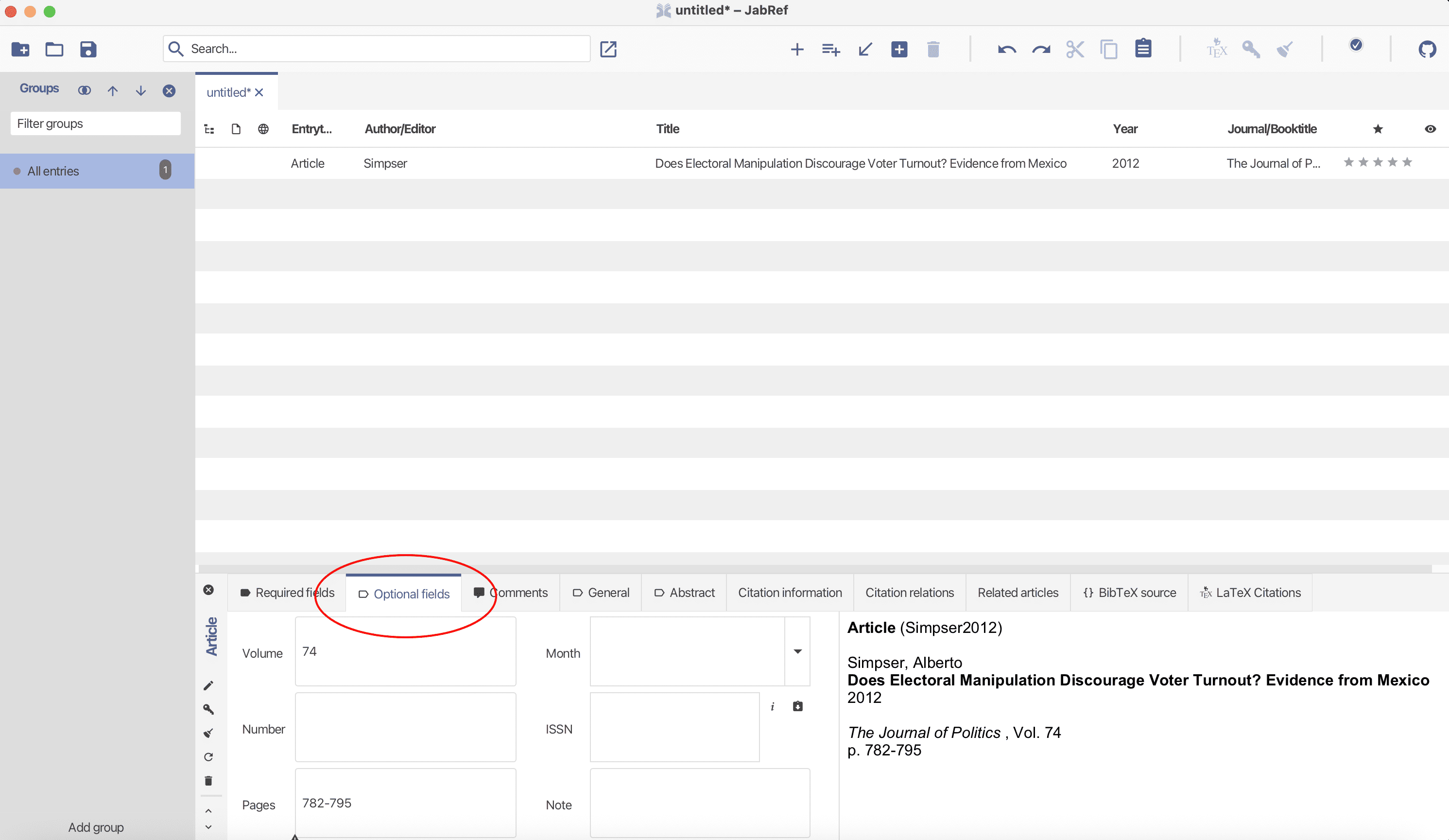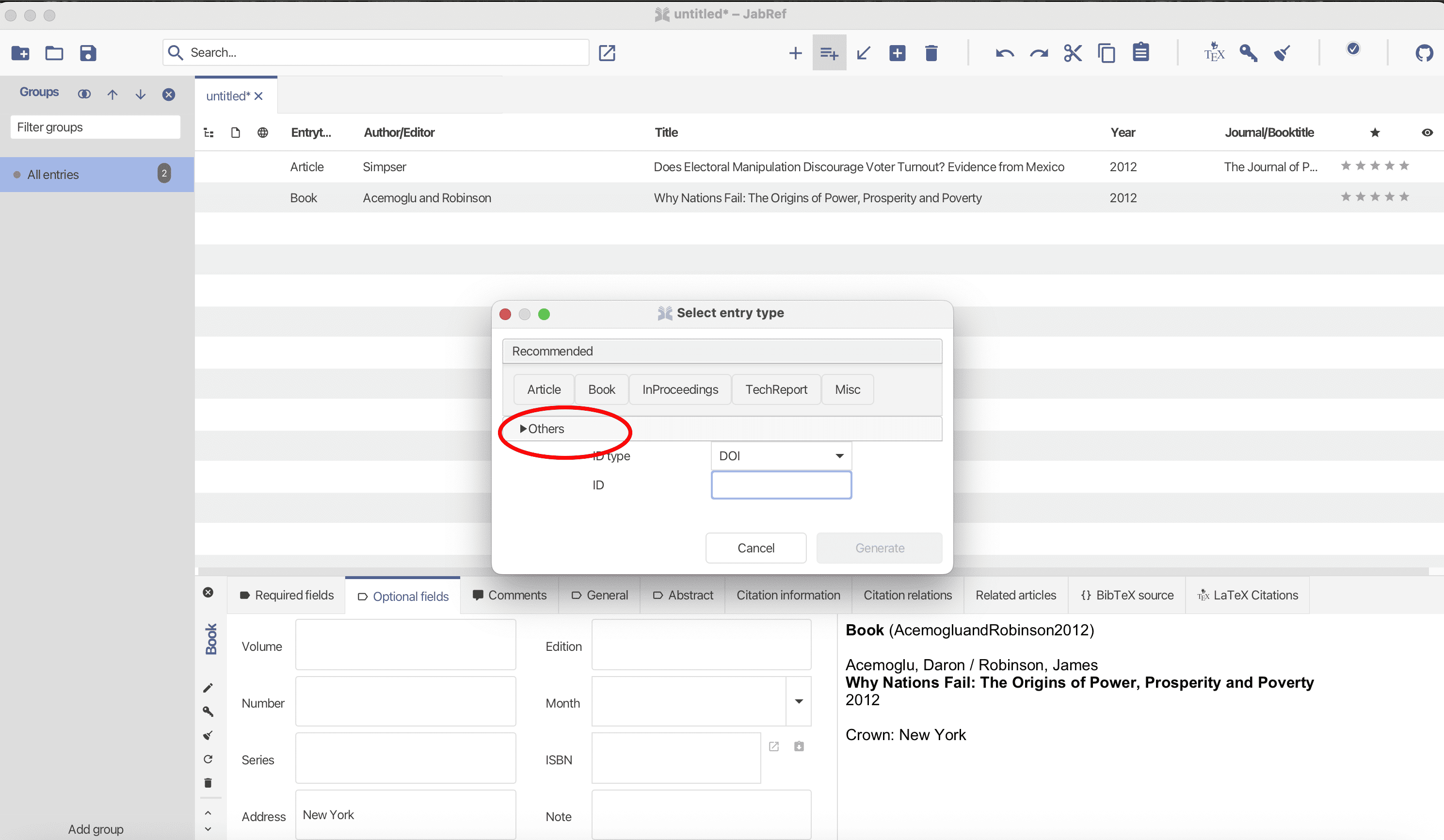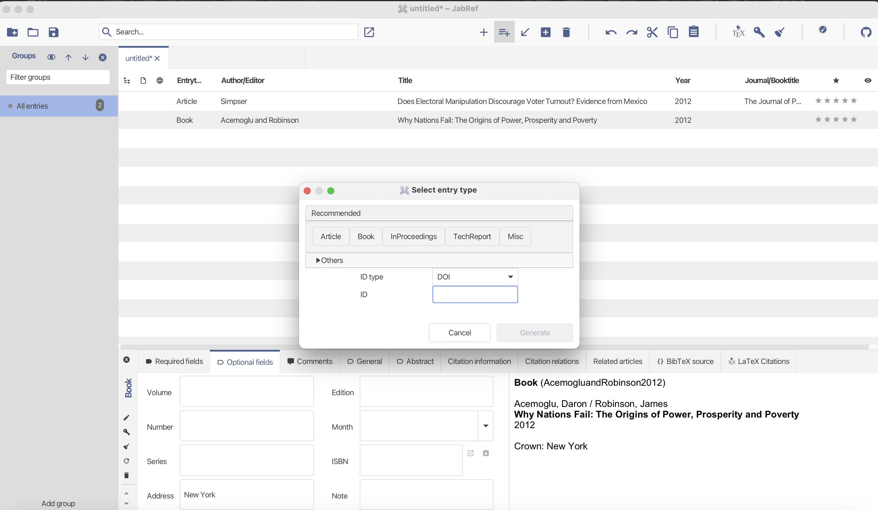 Note that if you have more than one author you need to write them under the author section in JabRef: