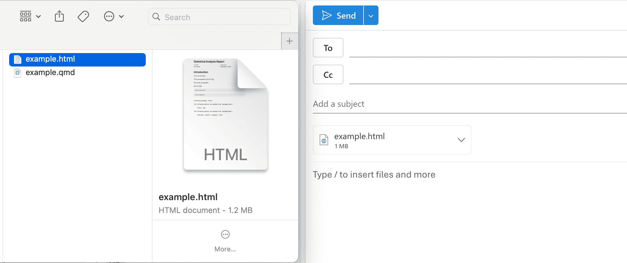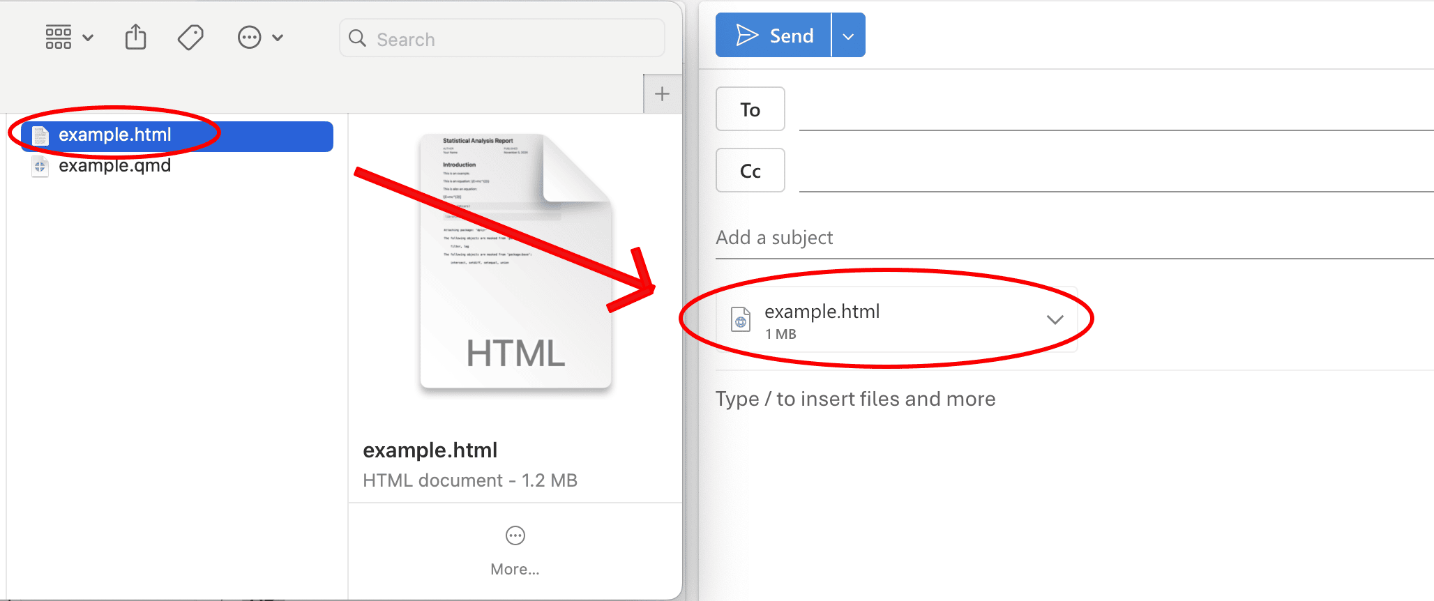 Once you are done, if you want to share your work via email, make sure to attach the embedded html to the email or the pdf