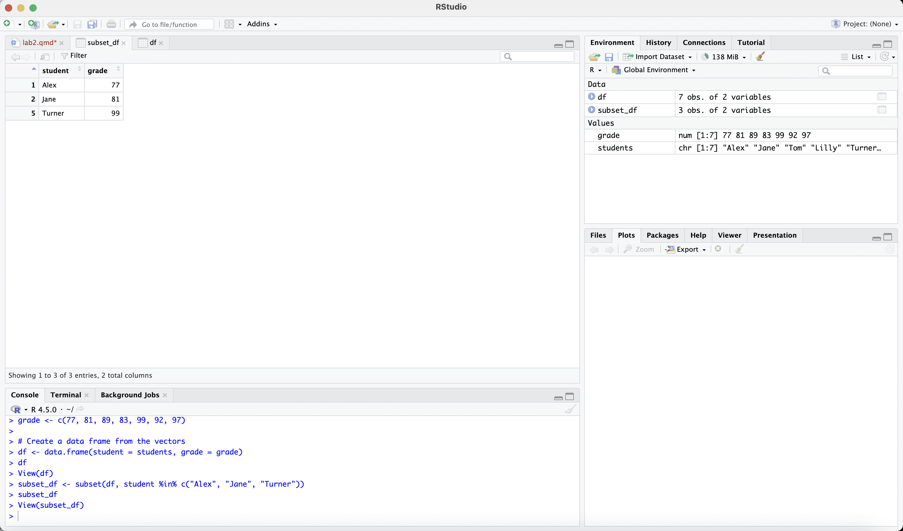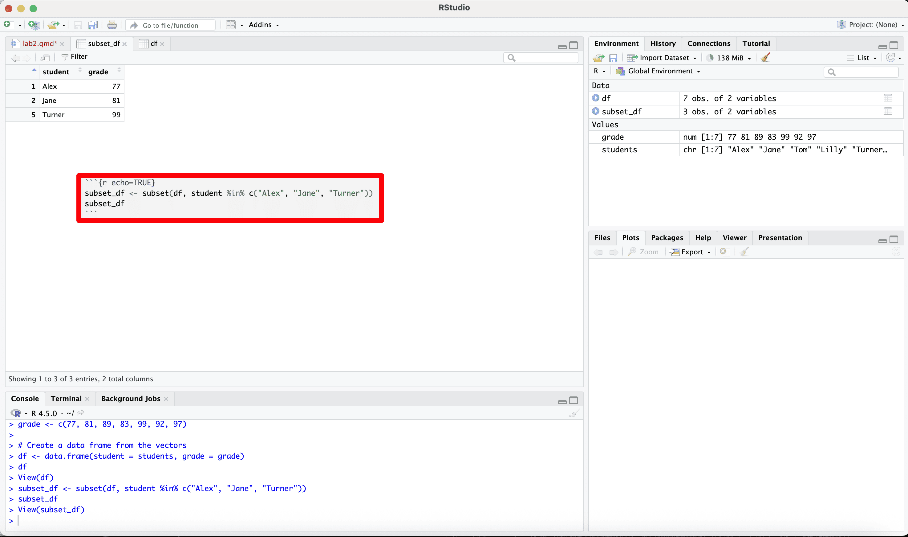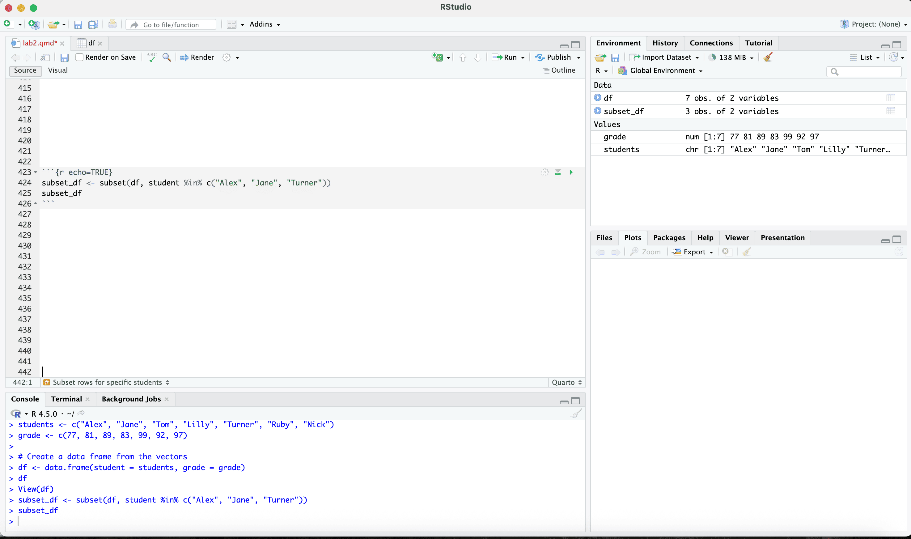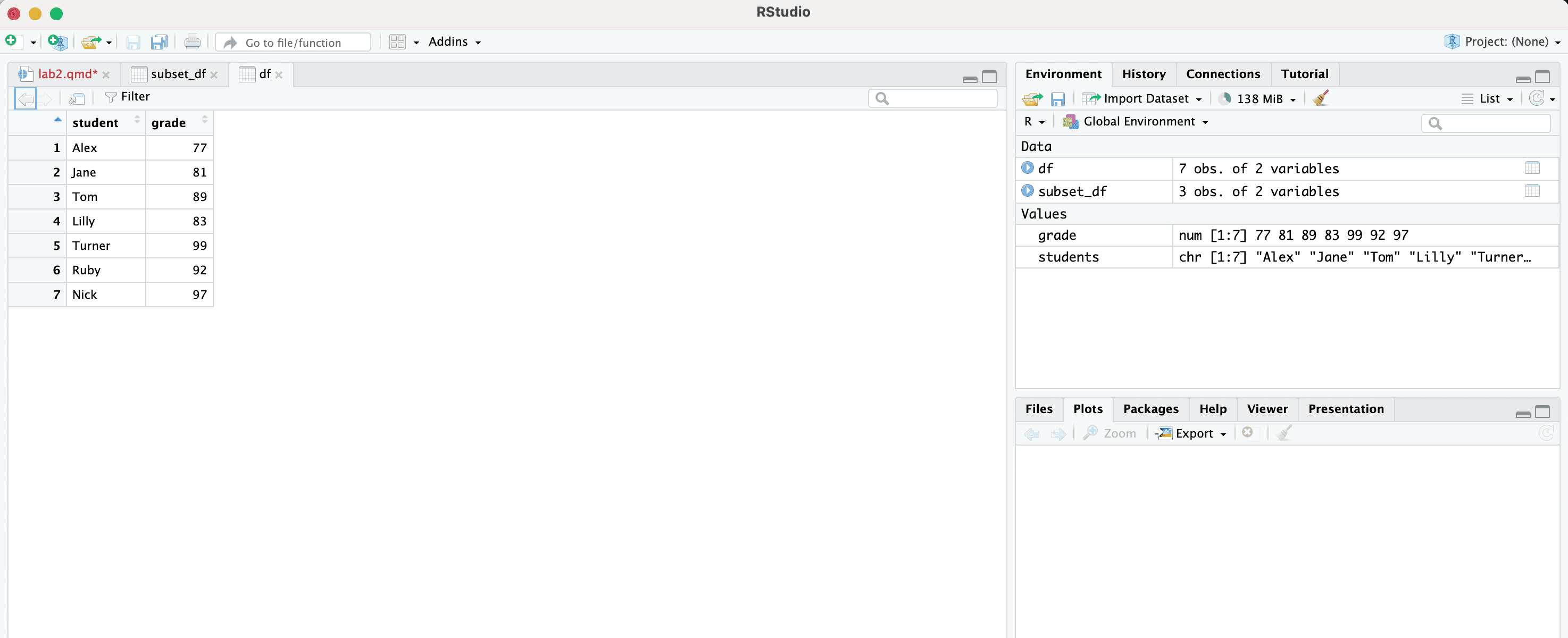 df has two variables: student and gradesubset_df has two variables: student and gradeThis is how we calculate the mean