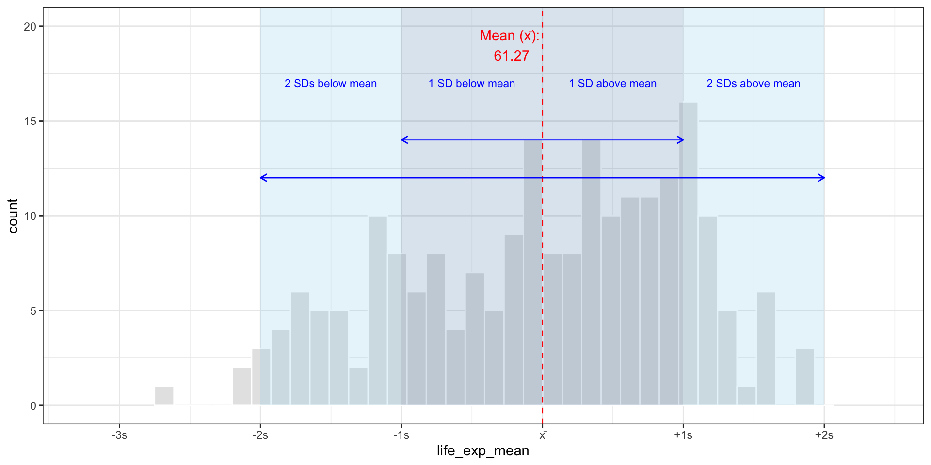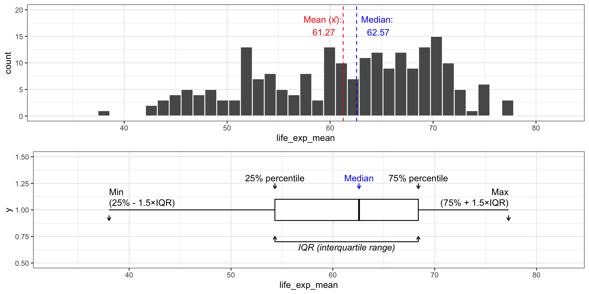 mean_label <- paste ("Mean (x̄): \n " , round (life_exp_mean, 2 ))