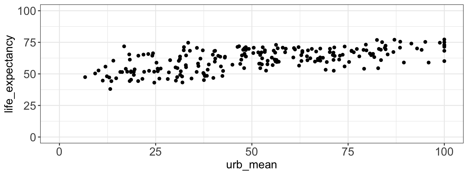 In the urbanization and life expectancy example, we know: