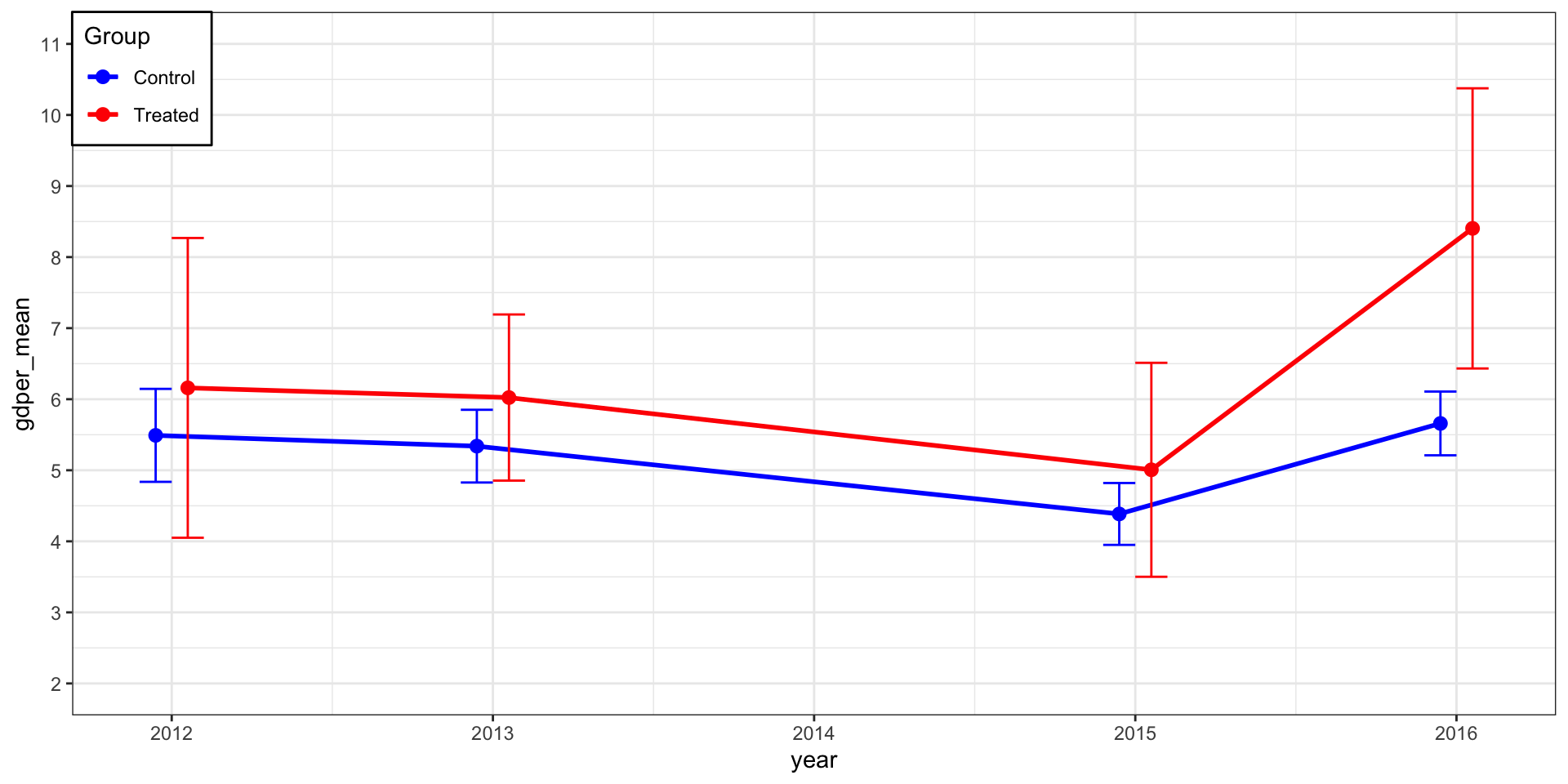 # Same plot setup, but outcome is gdperdif3 (placebo difference).
