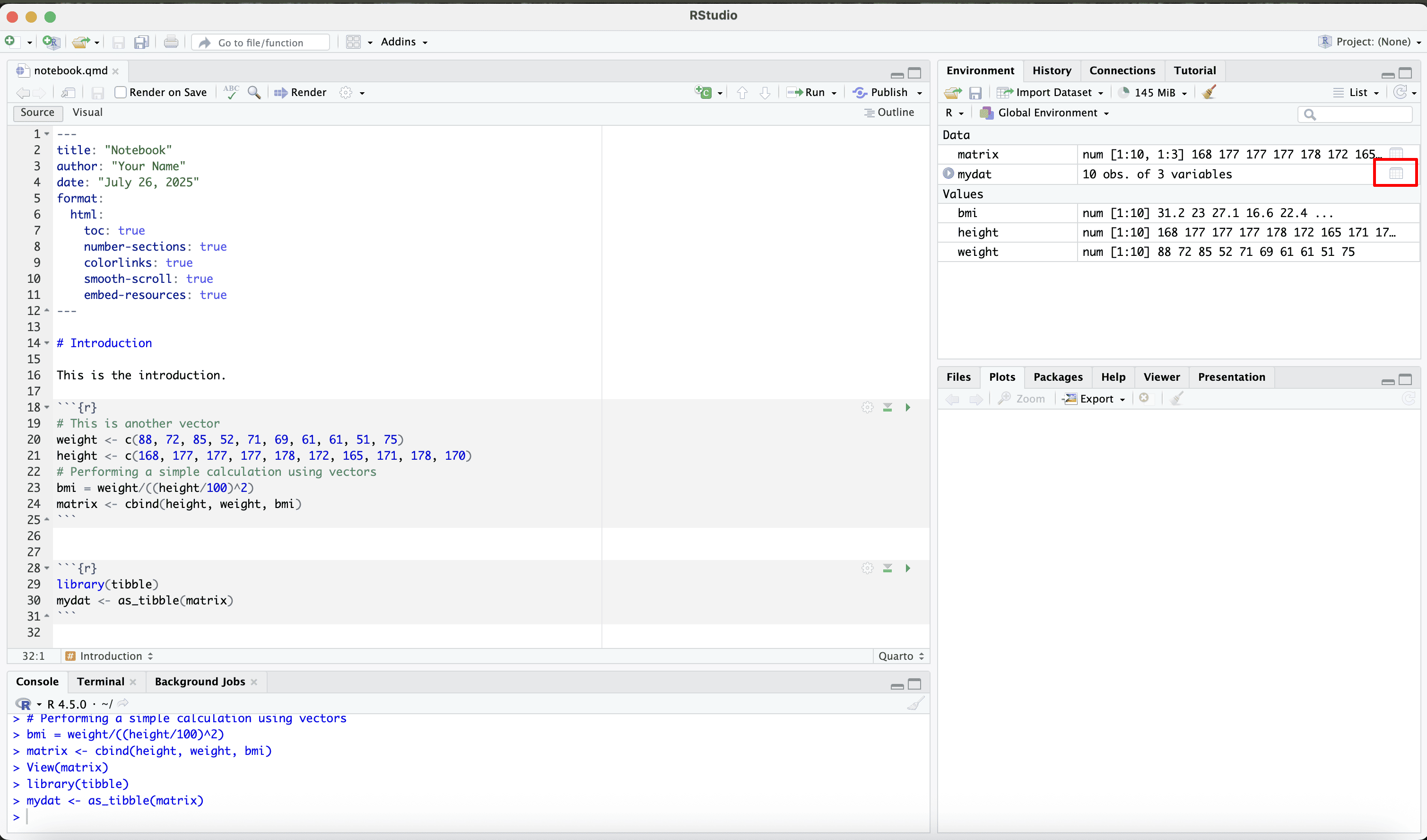 Let’s create a new quarto document and work with it.