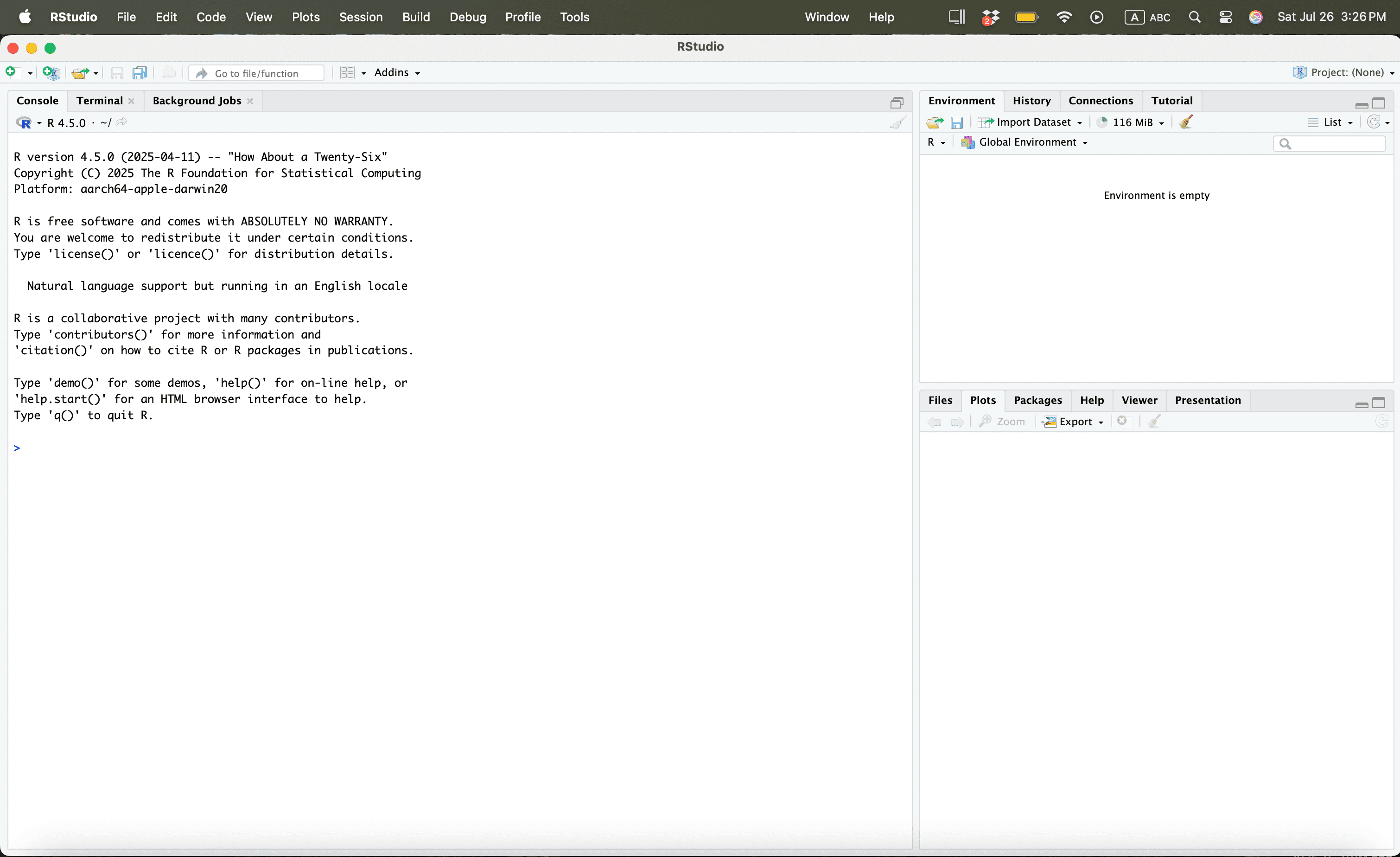Install the version of RStudio relevant for your OS.