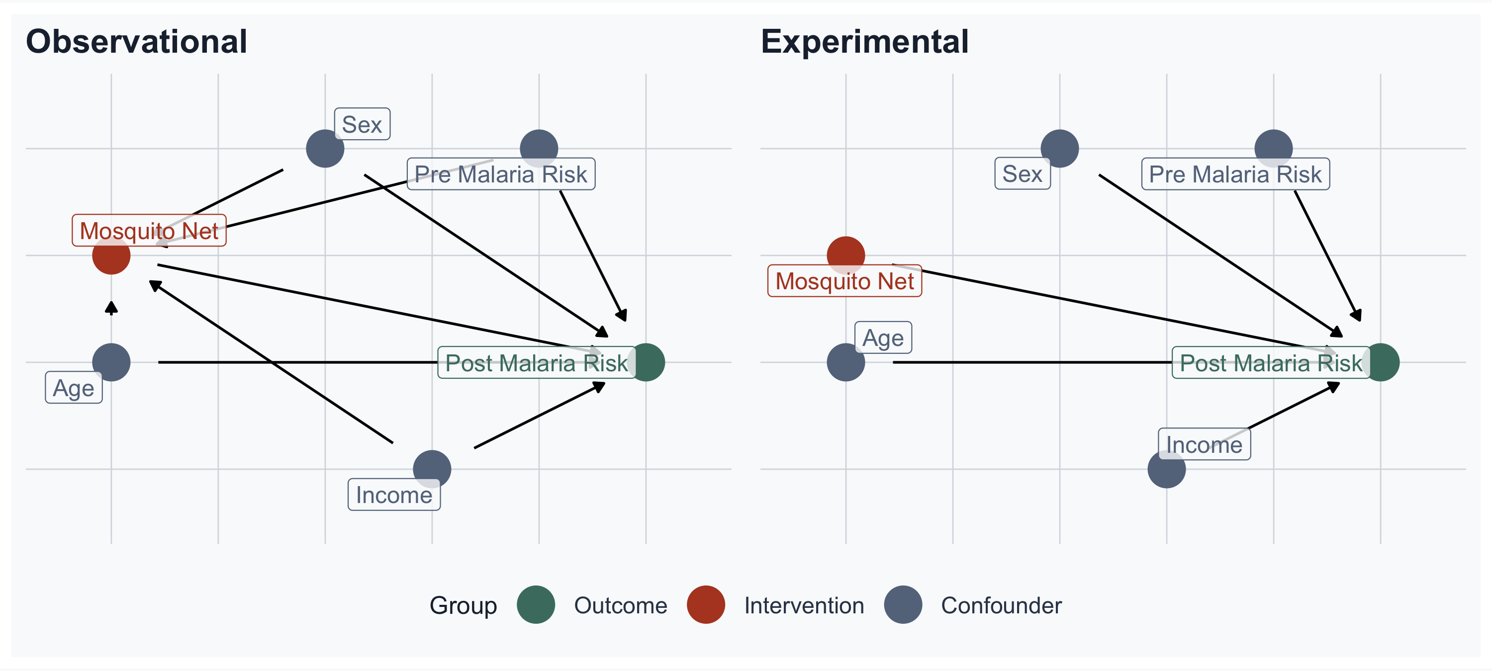# Observational DAG: confounders -> Net AND -> Post Malaria Risk