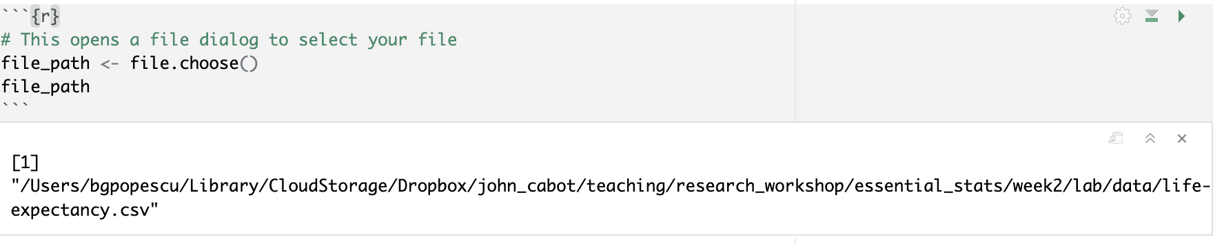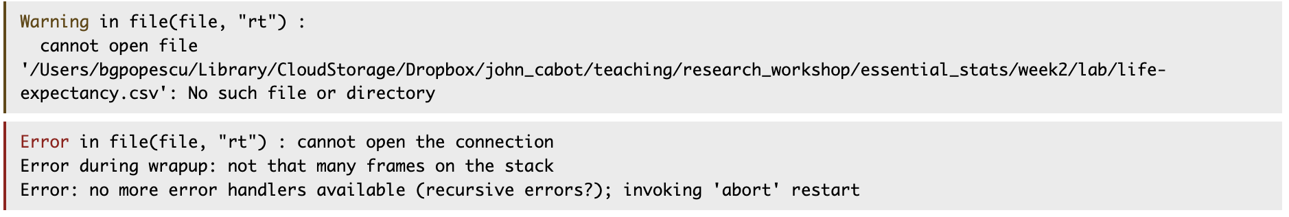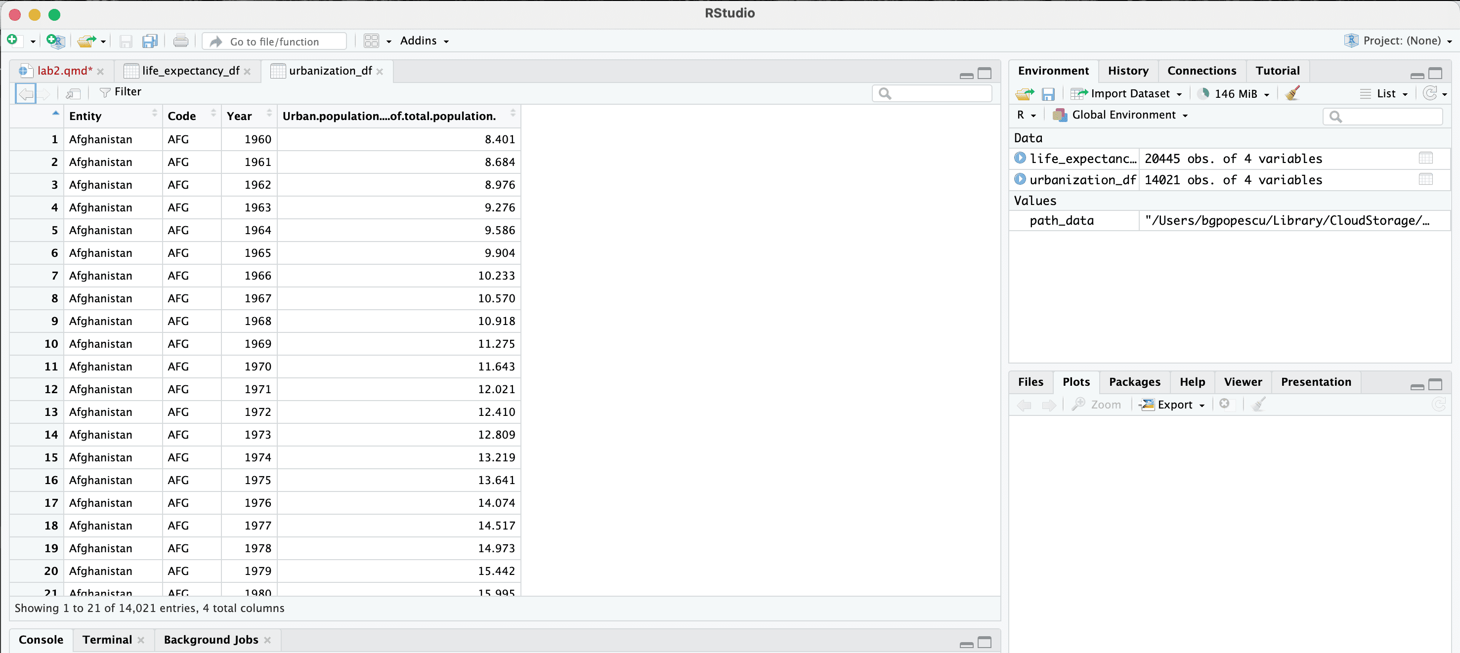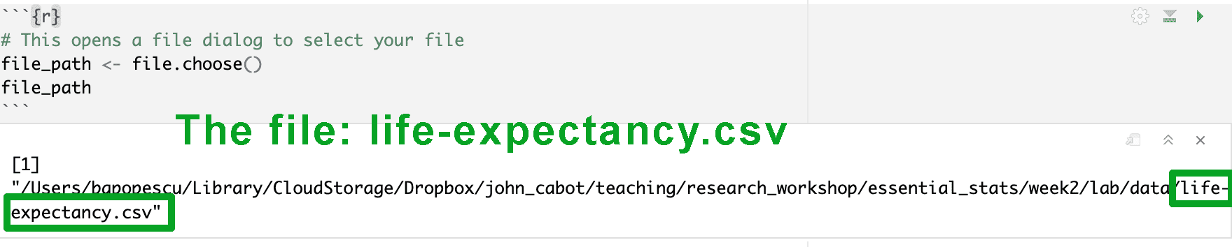 Entity: the country: “Afghanistan”, “Albania”, “Algeria”, etc.Code: the country code: “AFG”, “ALB”, “DZA”, etcYear: year 1950, 1951, 1952, etc.Life.expectancy.at.birth..historical.: life expectancy corresponding to that year.csv and .xlsxPopescu (JCU) Statistical Analysis Lab 2: Working with Data in R