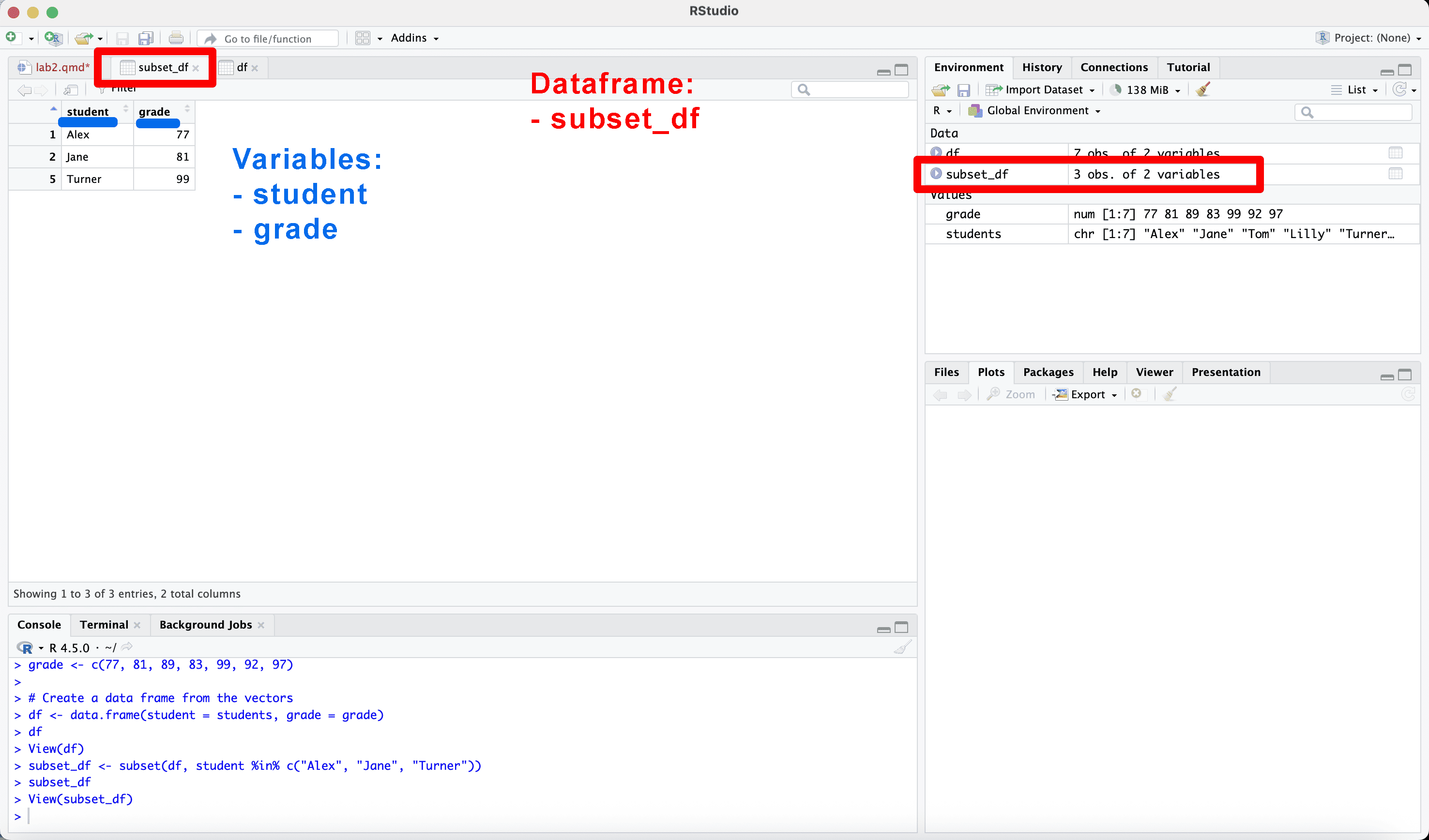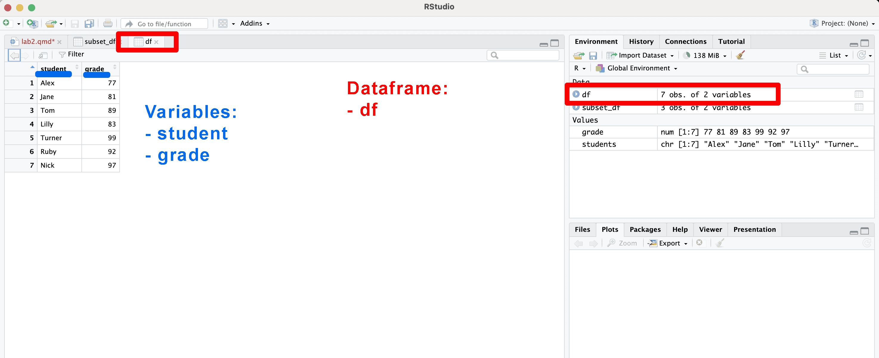 df has two variables: student and gradesubset_df has two variables: student and gradeThis is how we calculate the mean