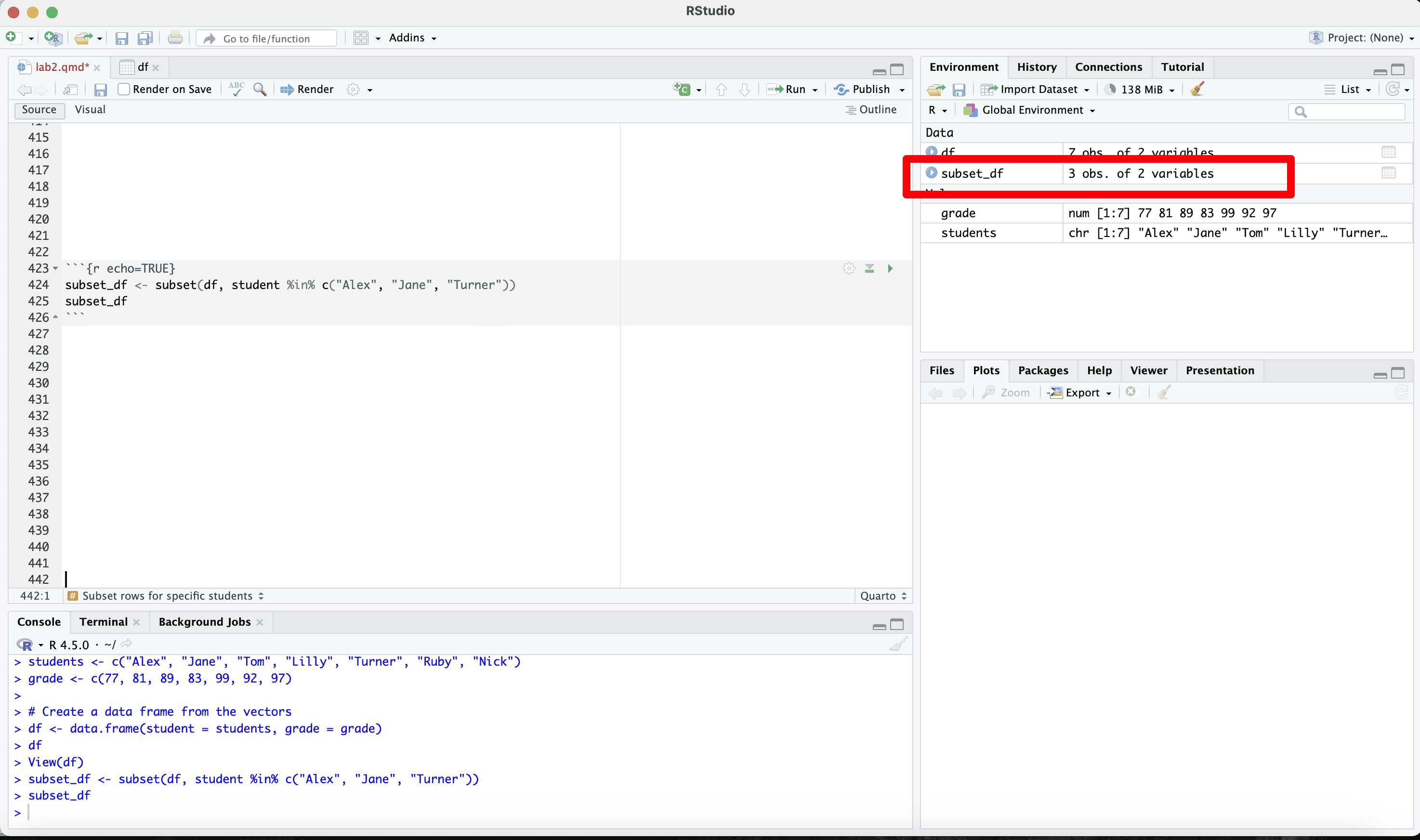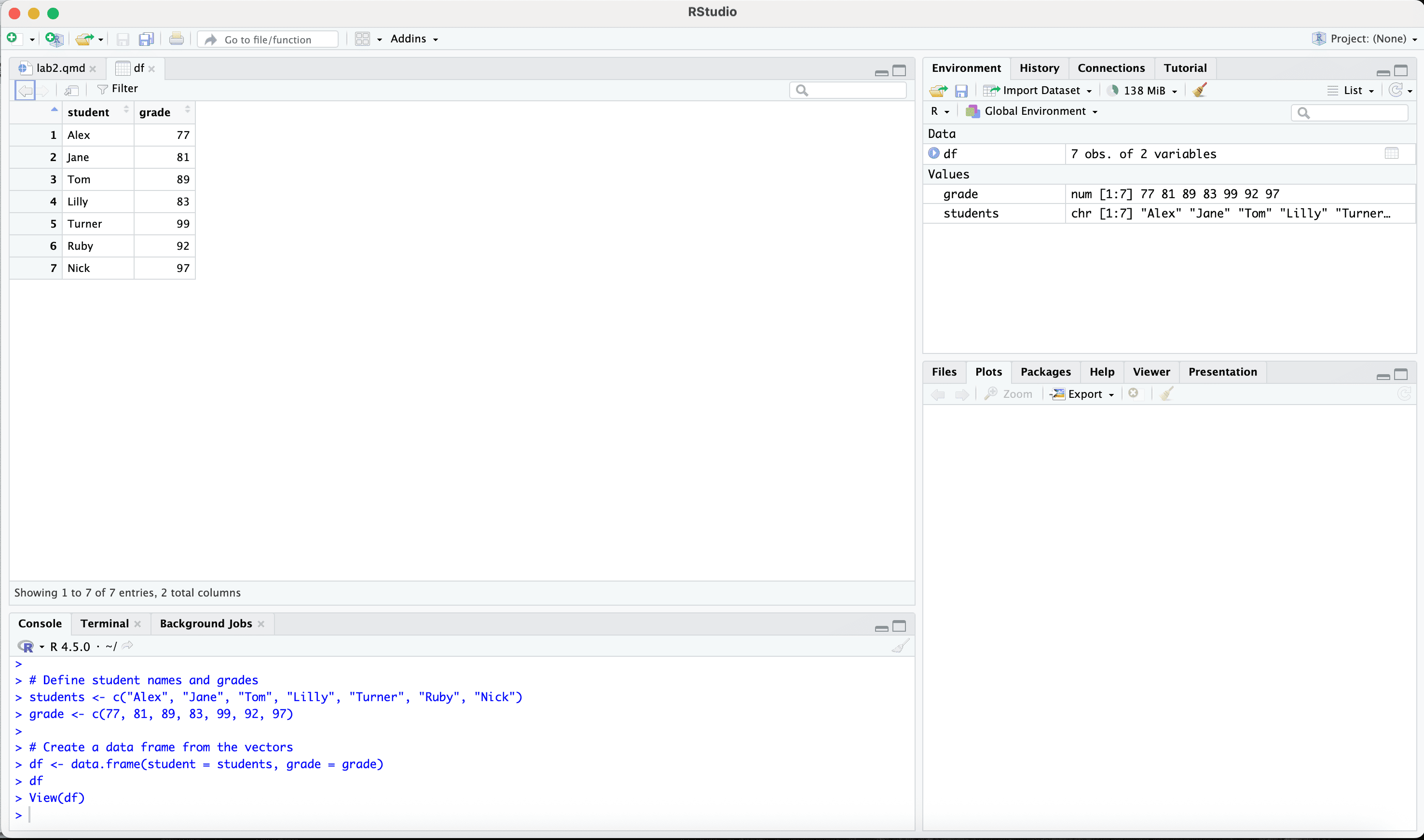 students <- c("Alex", "Jane", "Tom", "Lilly", "Turner", "Ruby", "Nick")