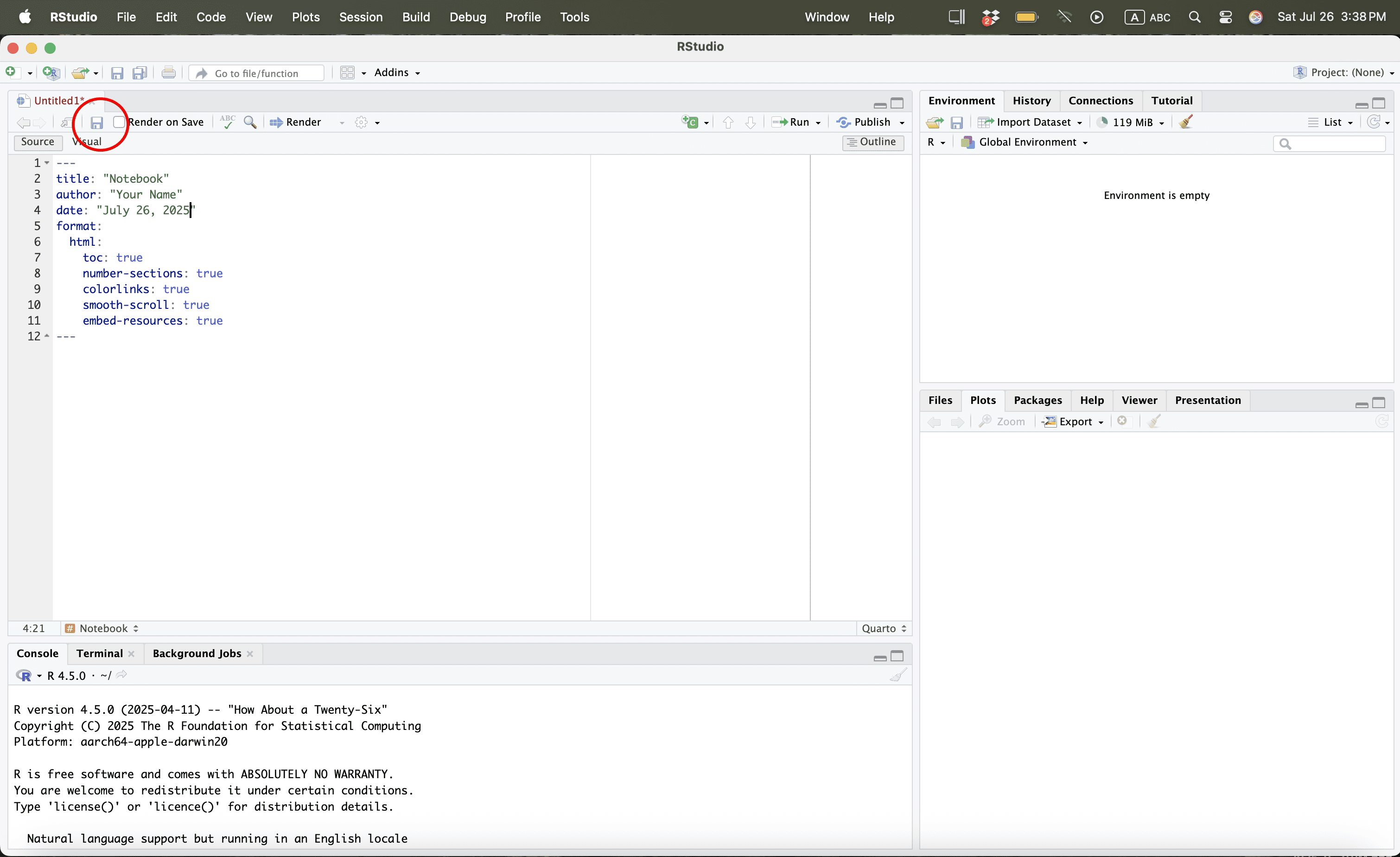install.packages("tidyverse")If you don’t delete it or comment it out, it will cause errors during rendering.