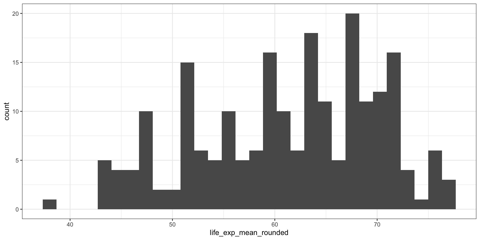 $ life_exp_mean_rounded: num 38 43 44 45 46 47 48 49 50 51 ...