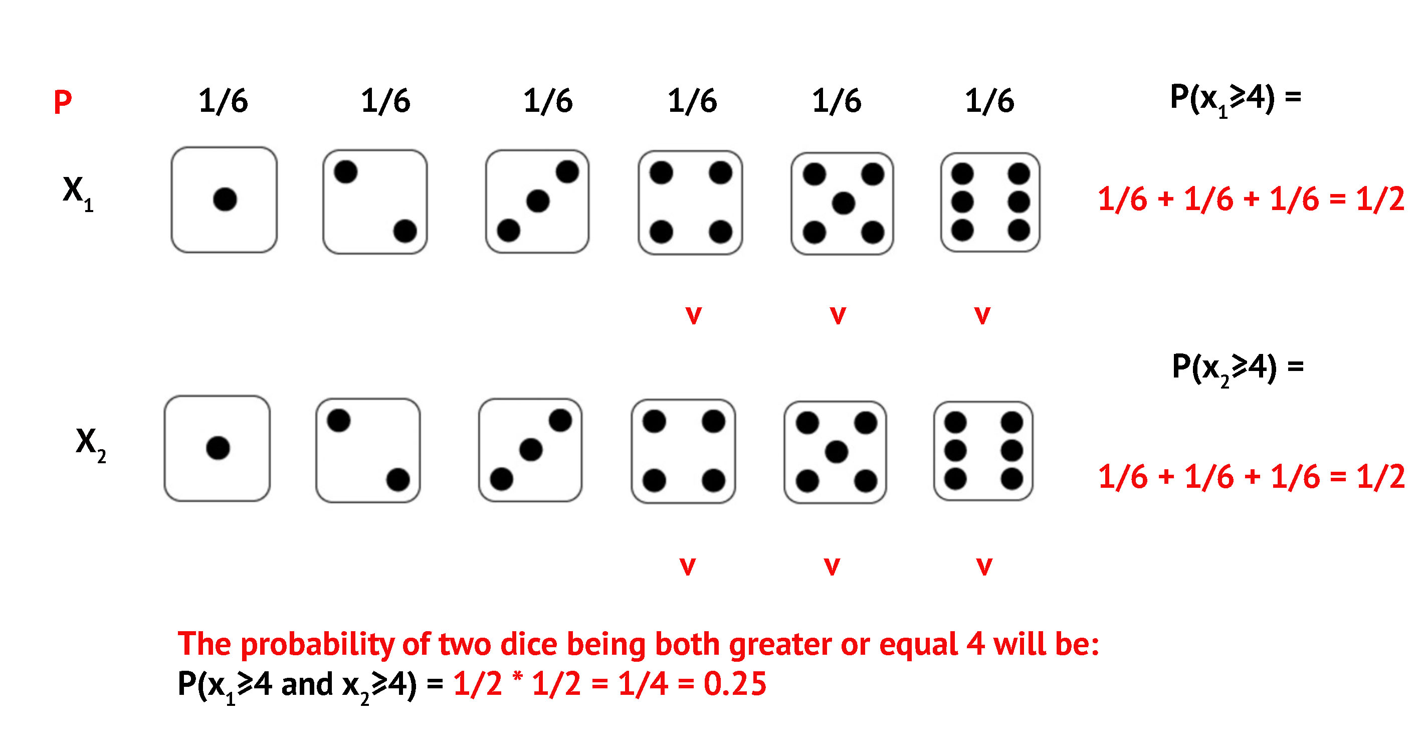 Odd and Even: \(P = 1/2 \times 1/2 = 1/4\)