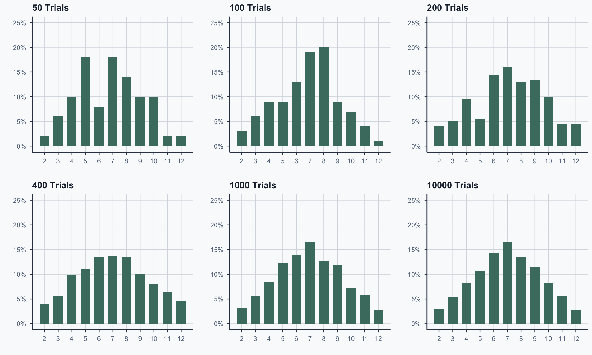 With more trials, it converges to the theoretical shape