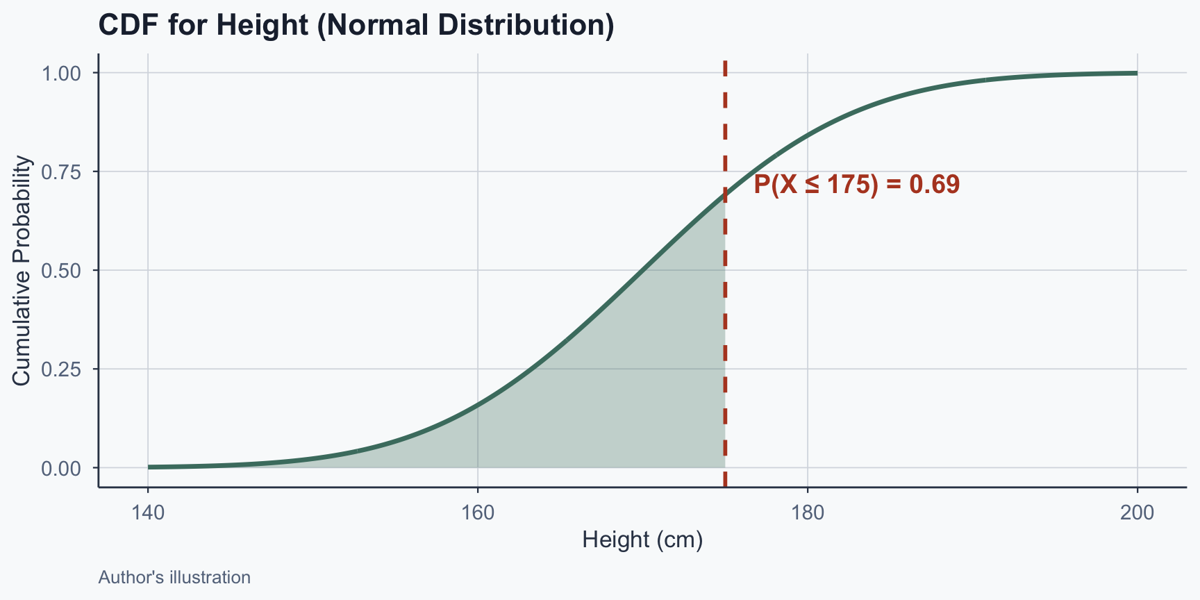 Figure 16: CDF for height: P(X <= 175) = 0.69