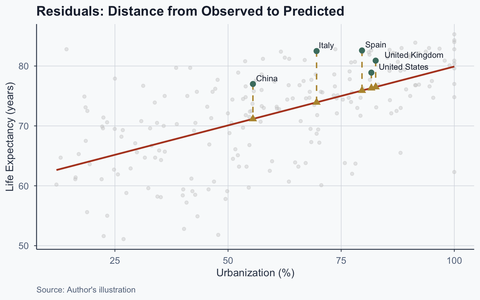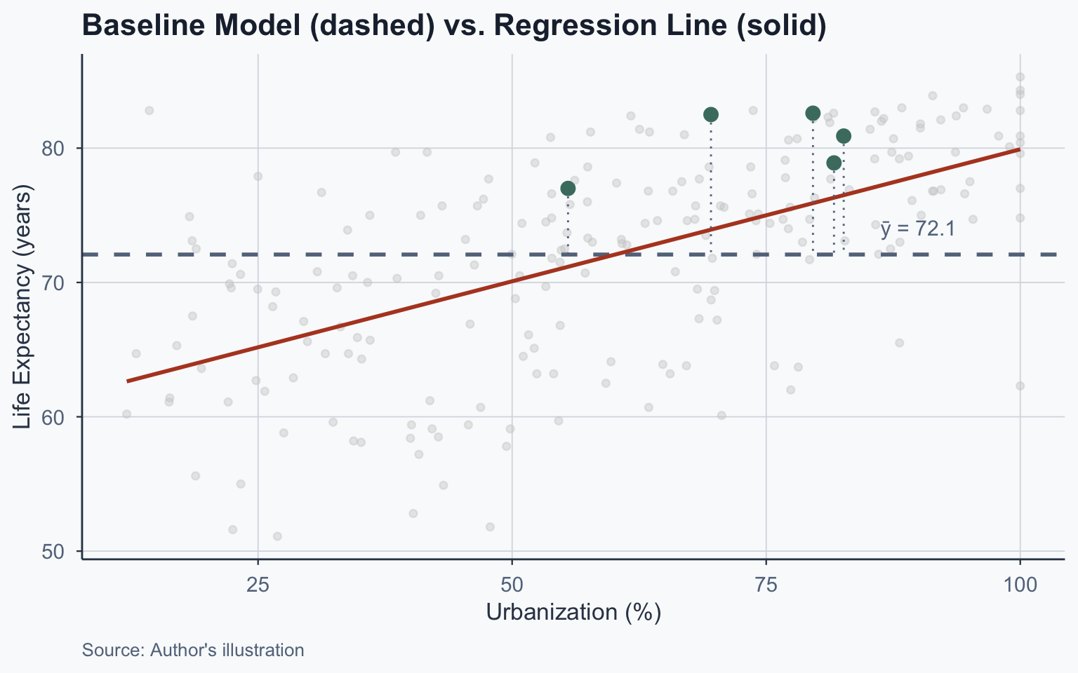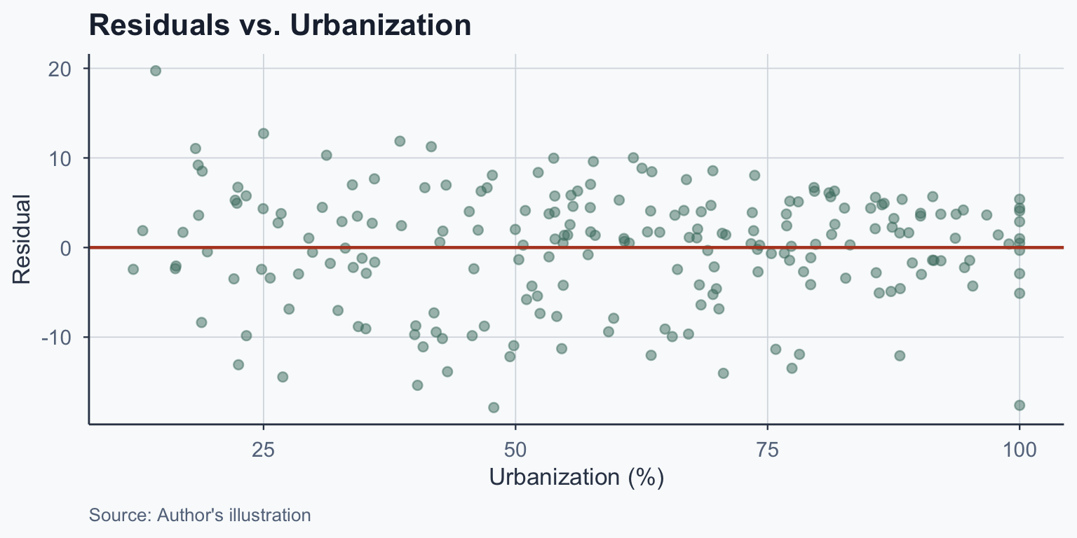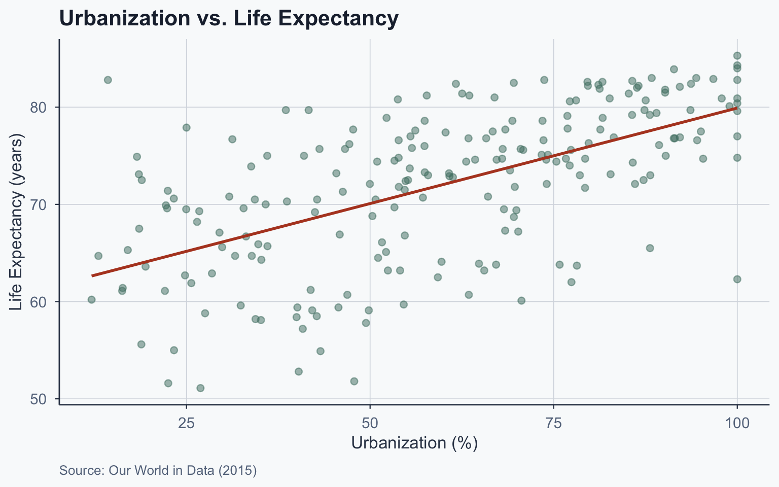 Example: Urbanization \(\rightarrow\) Life Expectancy